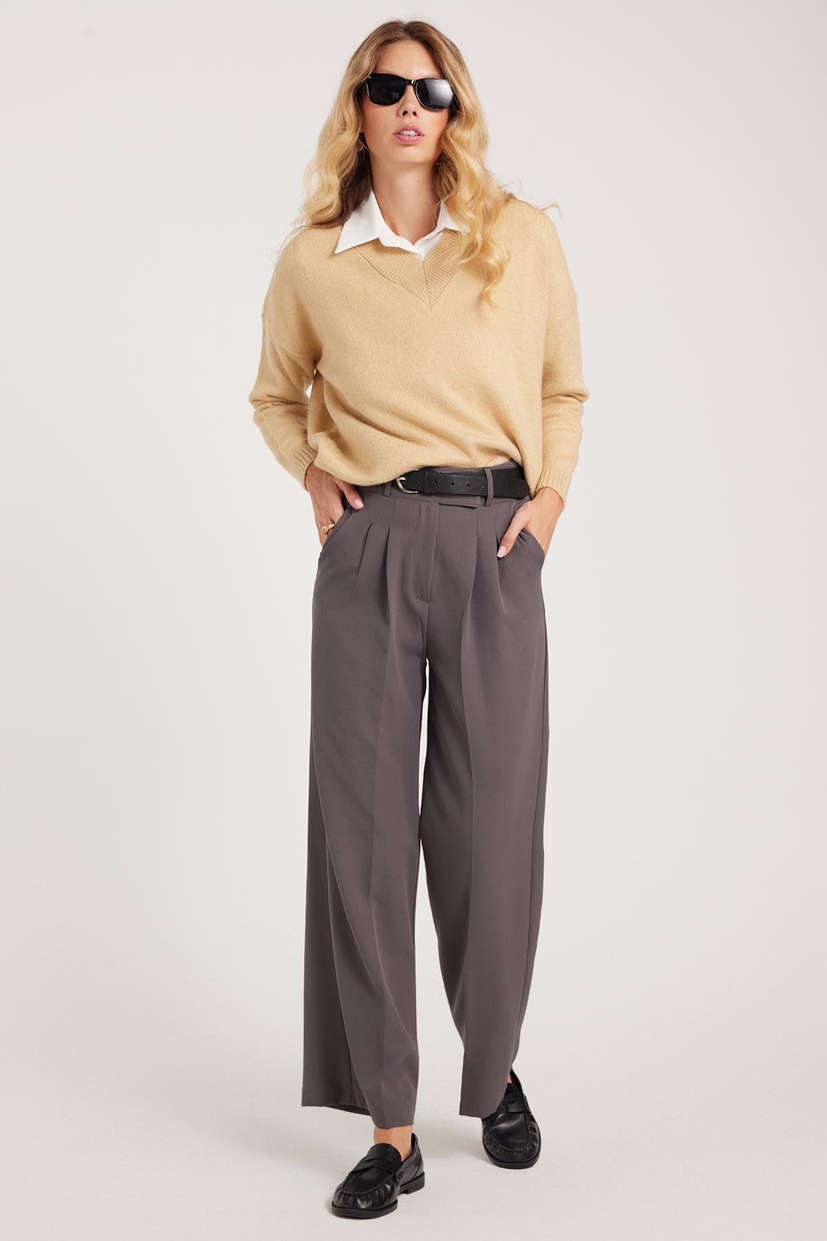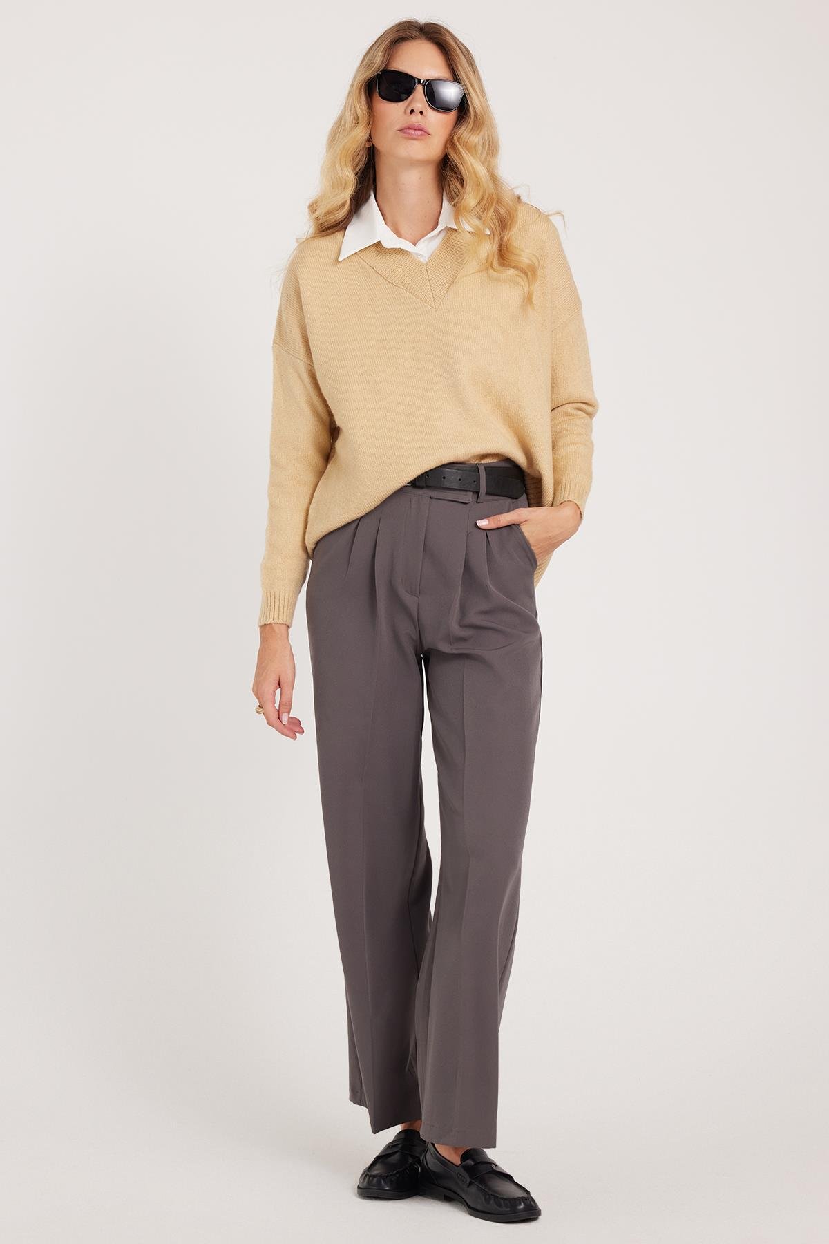 Kadın Regular Fit Klasik Kesim Cırt Kapamalı Palazzo Antrasit Pantolon (PN250044-ANHCT)