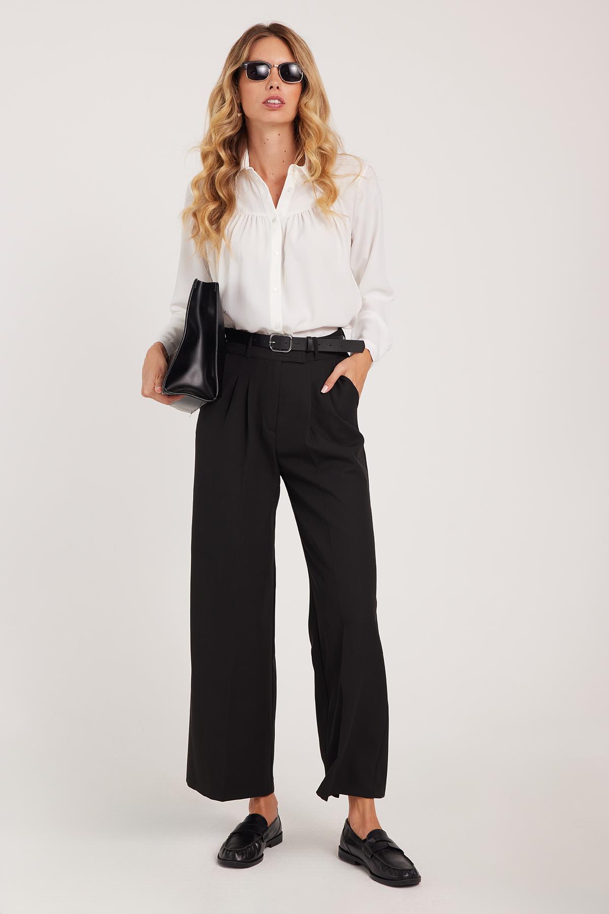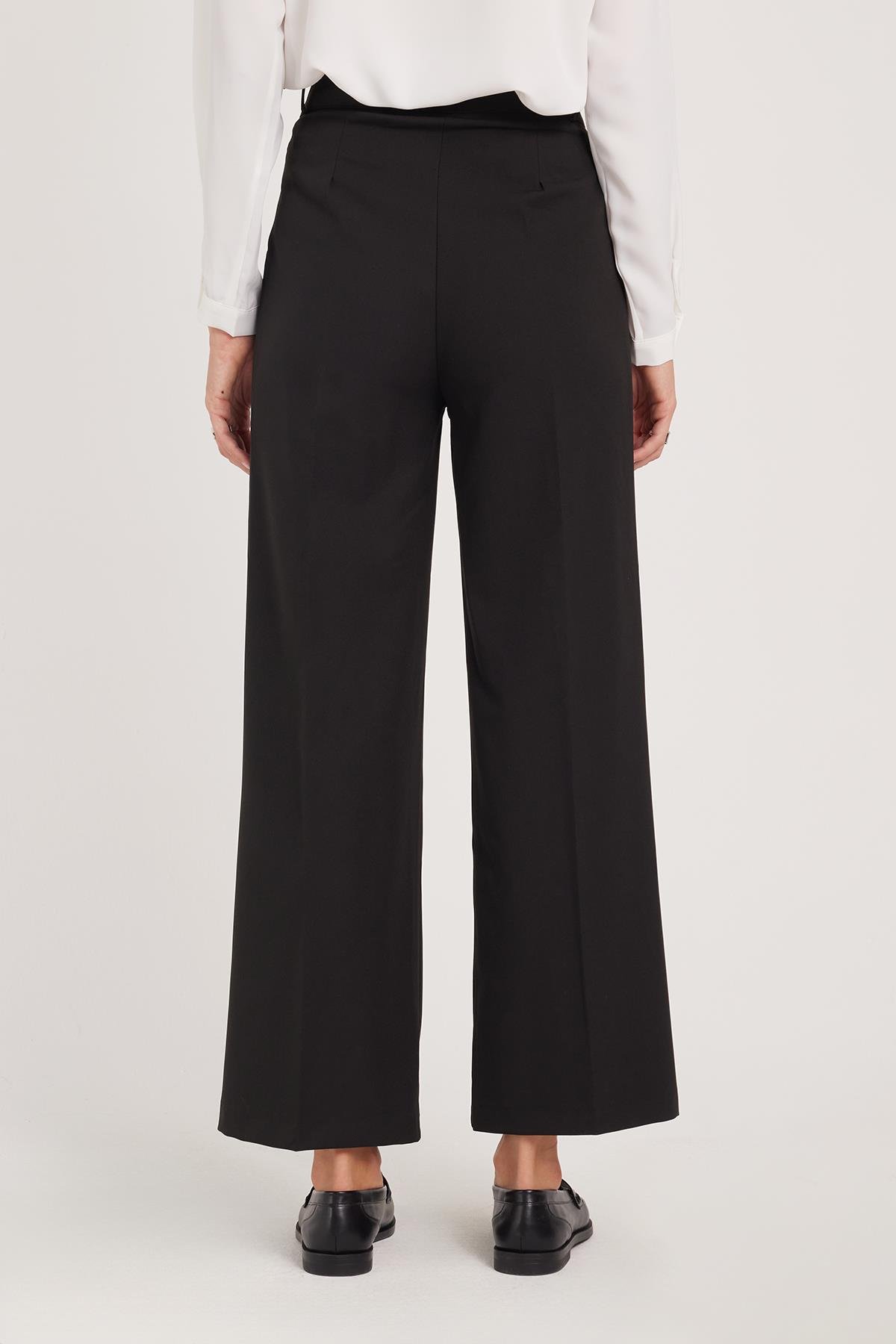 Kadın Regular Fit Klasik Kesim Cırt Kapamalı Palazzo Siyah Pantolon