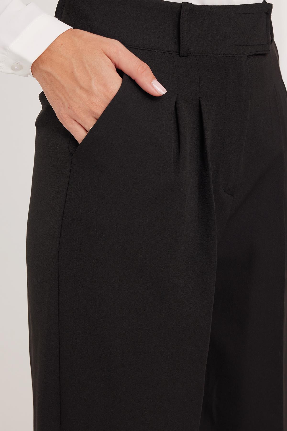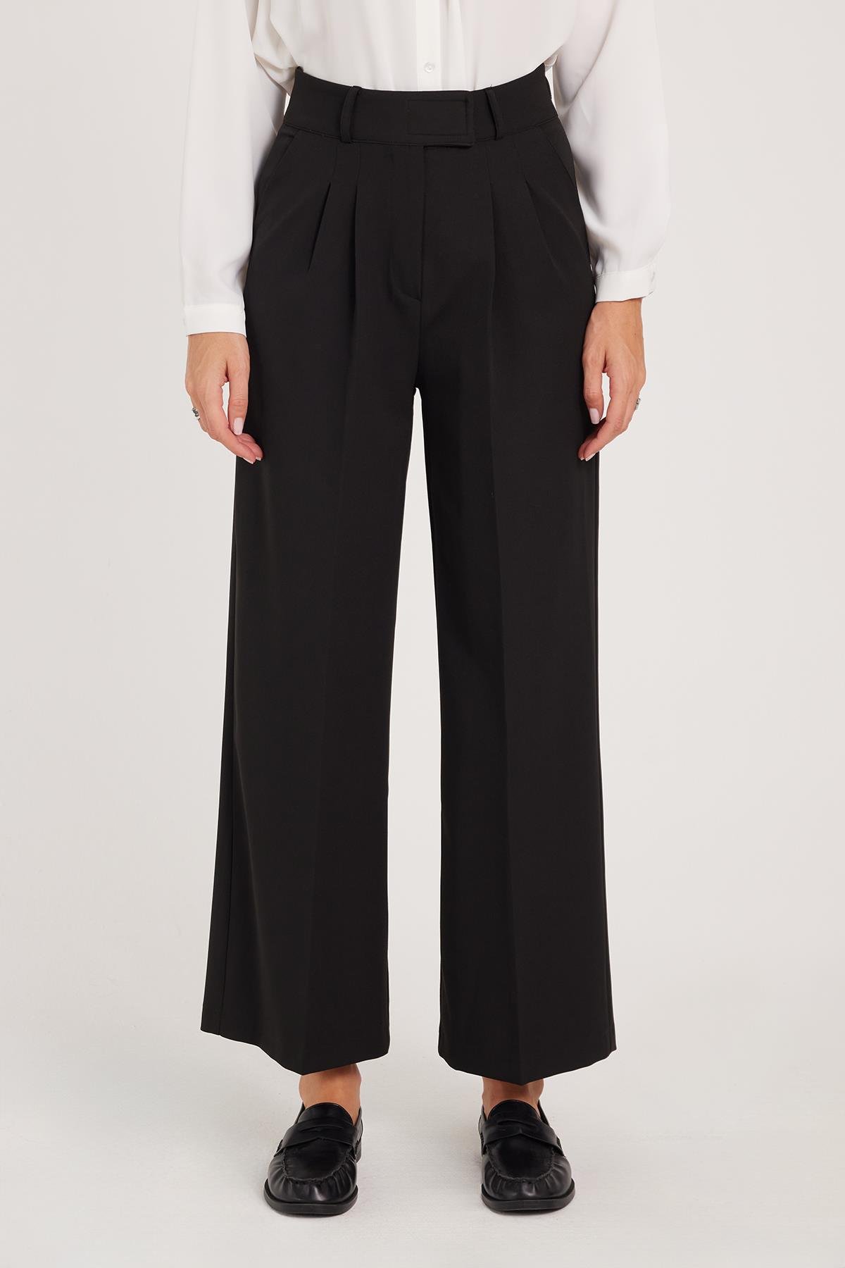 Kadın Regular Fit Klasik Kesim Cırt Kapamalı Palazzo Siyah Pantolon (PN250044-02)