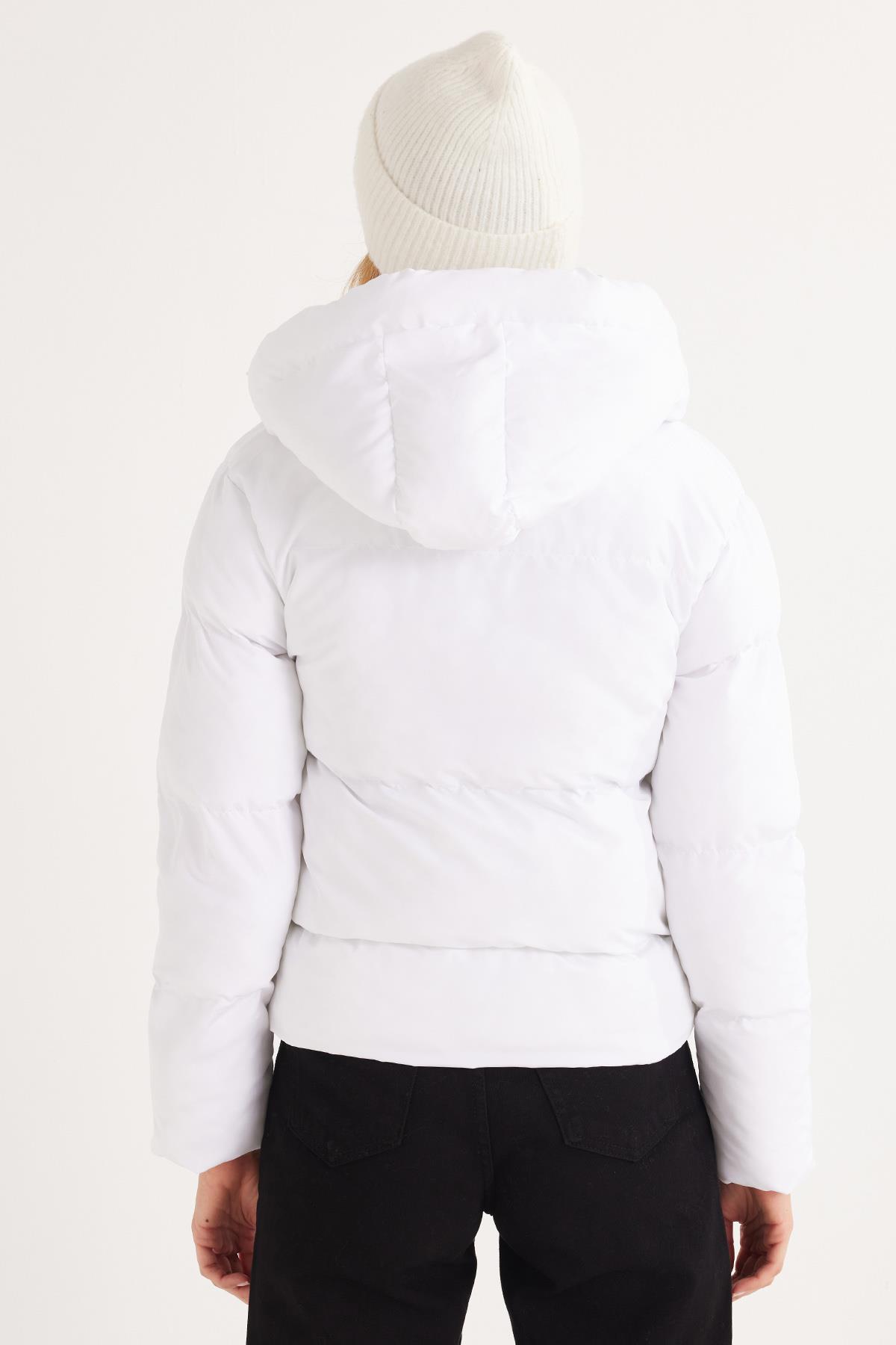 Kadın Regular Fit Klasik Kesim Kapüşonlu Şişme Beyaz Mont