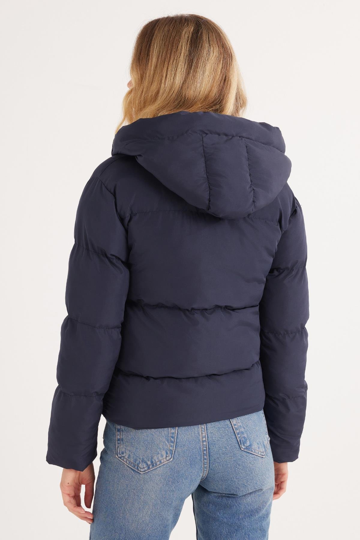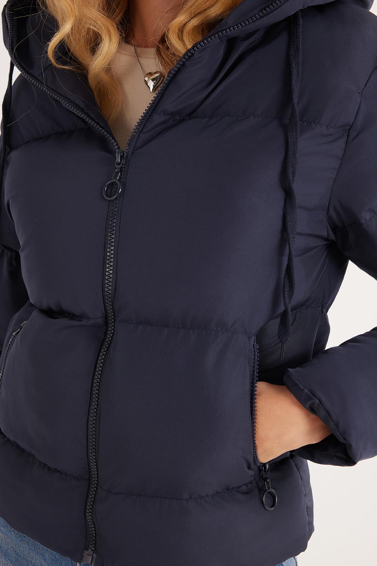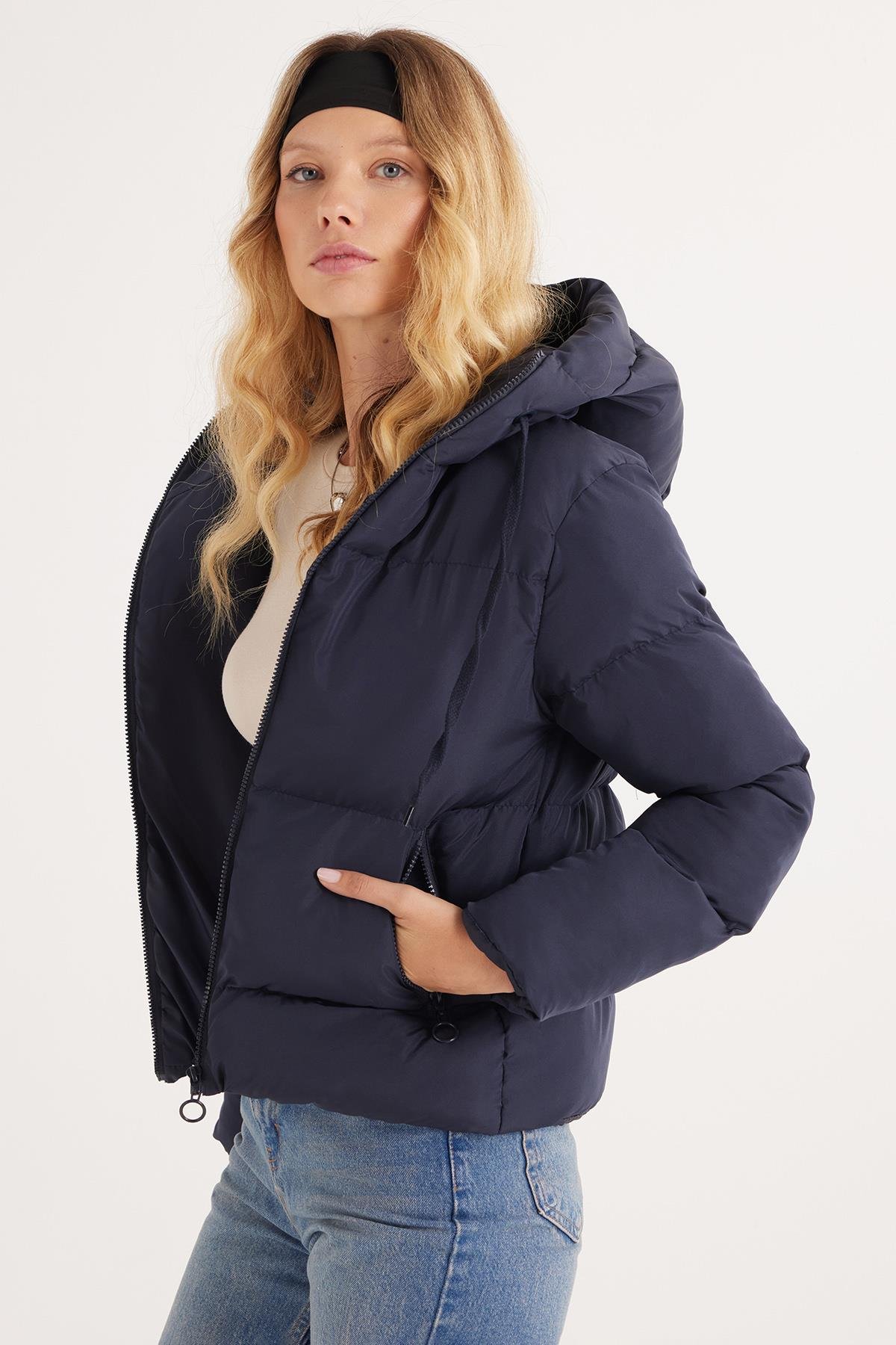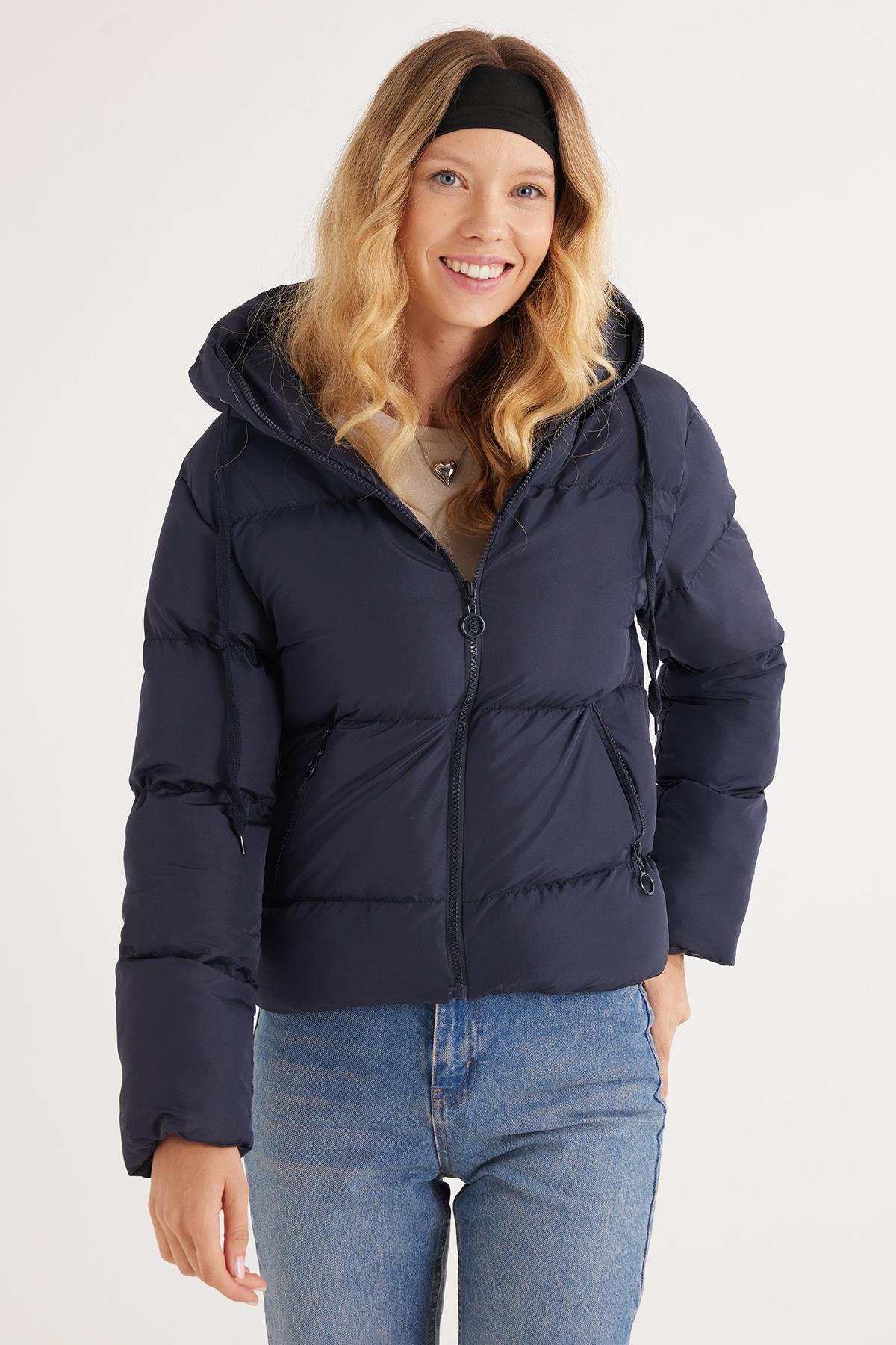 Kadın Regular Fit Klasik Kesim Kapüşonlu Şişme Lacivert Mont (KBN25001-47)