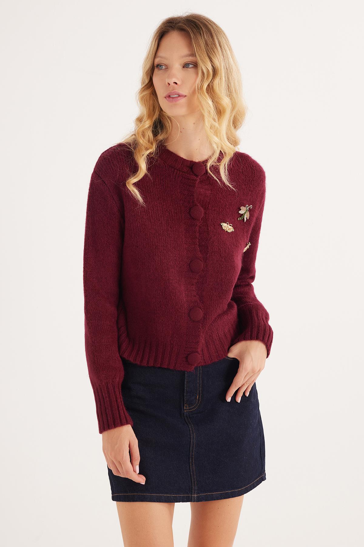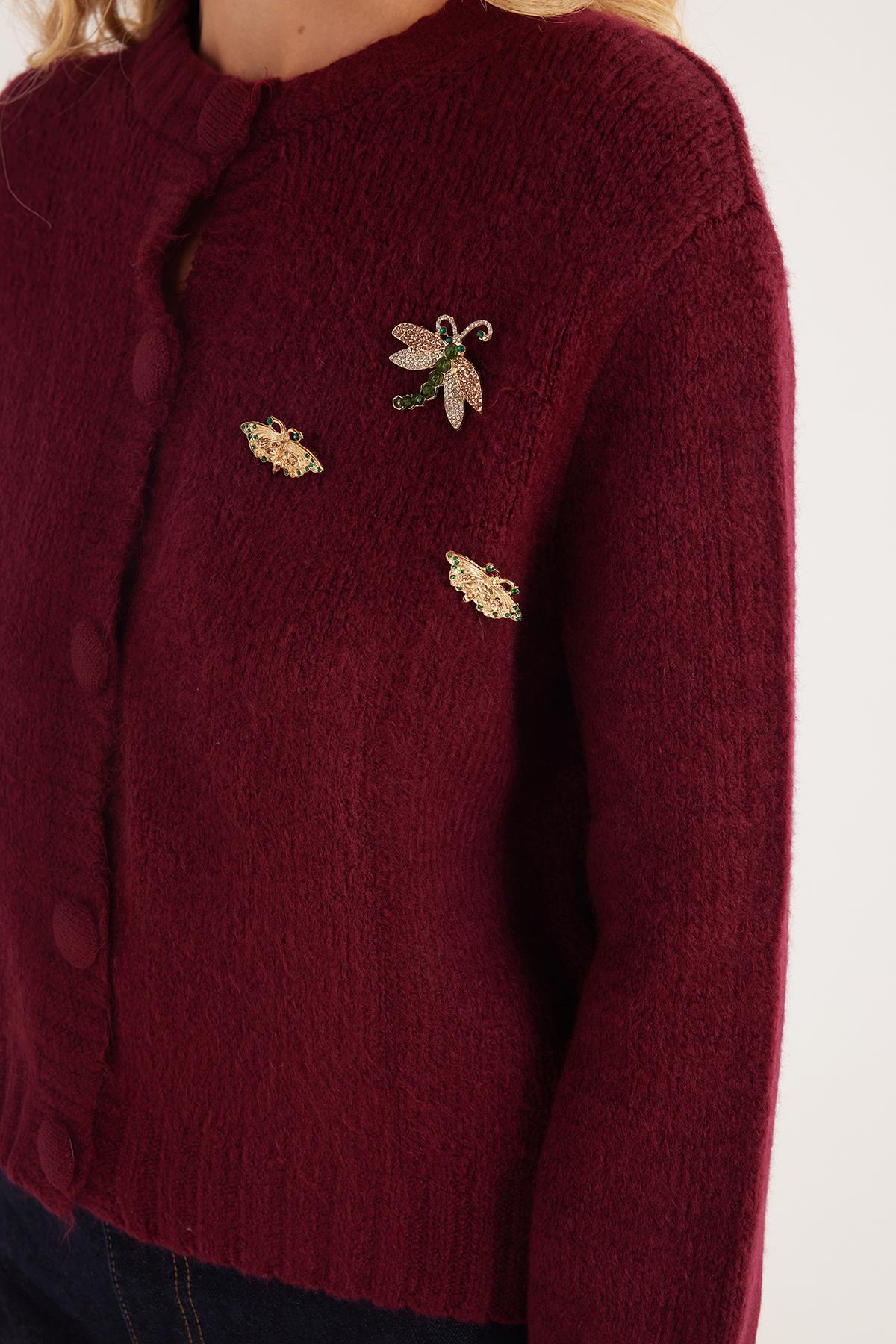 Kadın Regular Fit Klasik Kesim Kelebek İşlemeli Bordo Hırka (BYKZ2520-08)