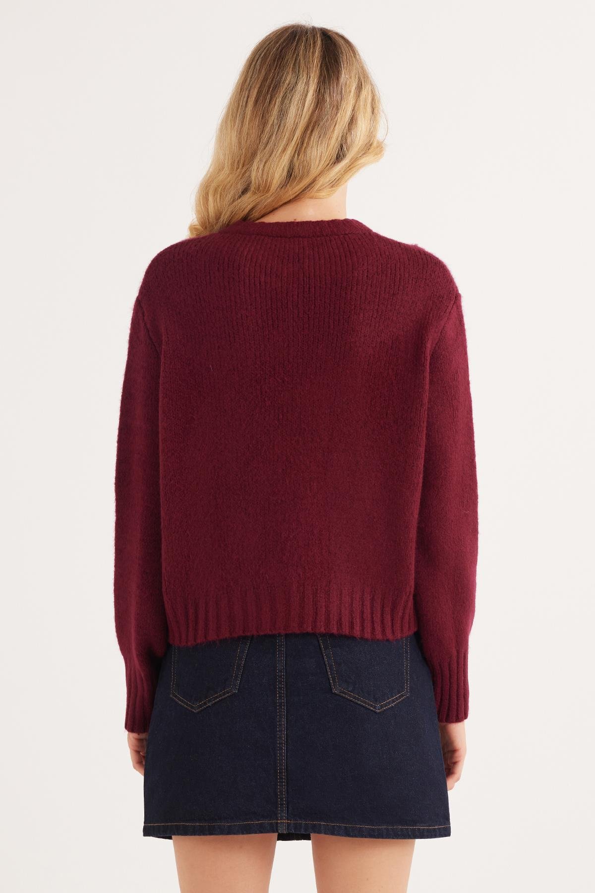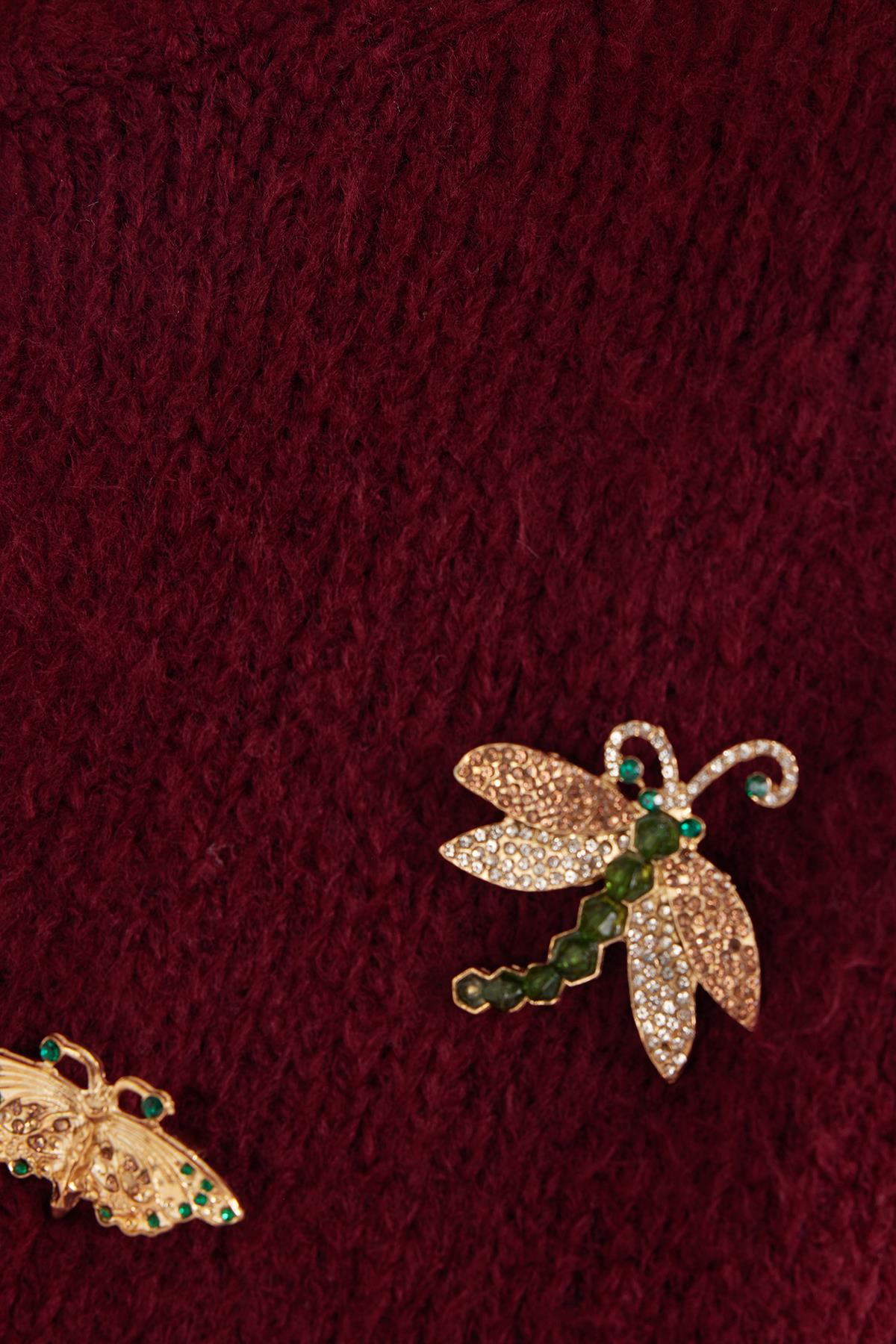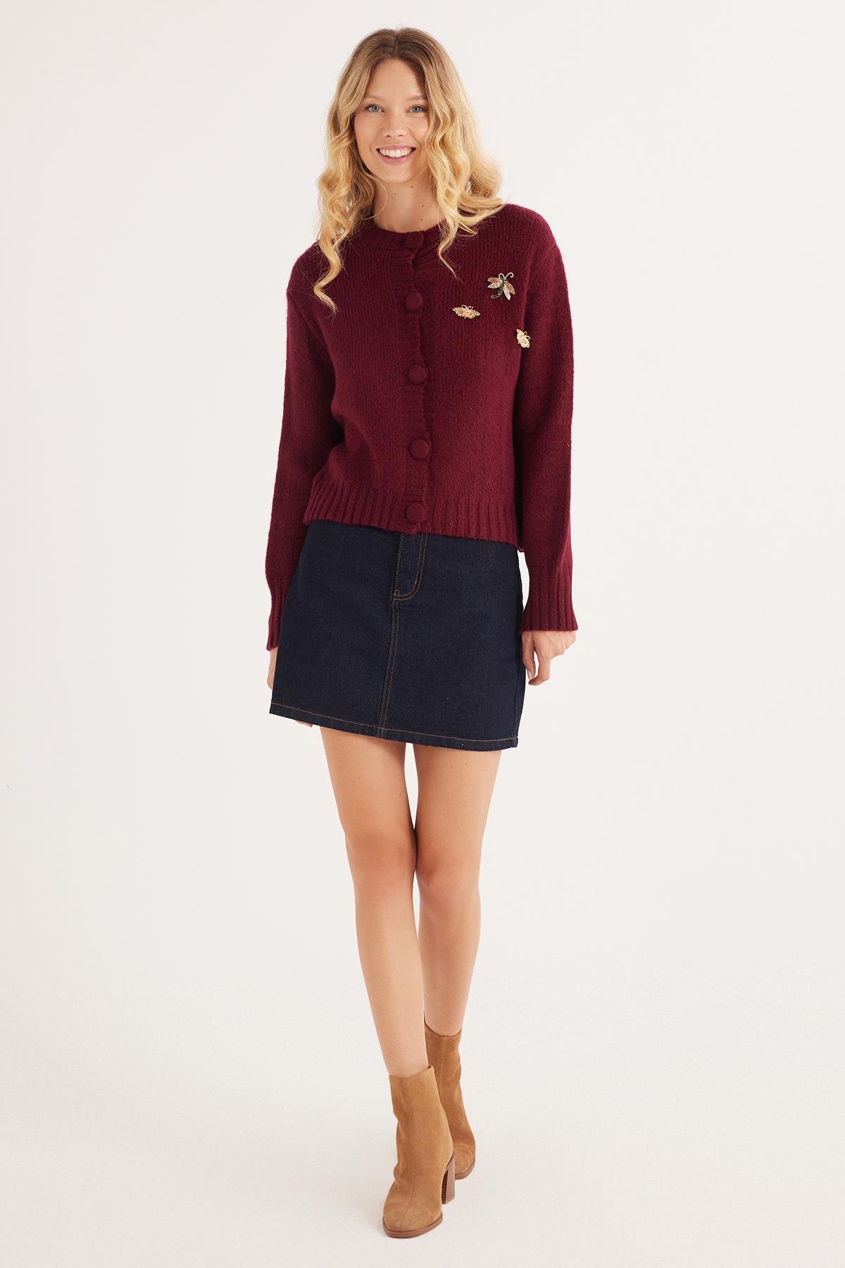 Kadın Regular Fit Klasik Kesim Kelebek İşlemeli Bordo Hırka