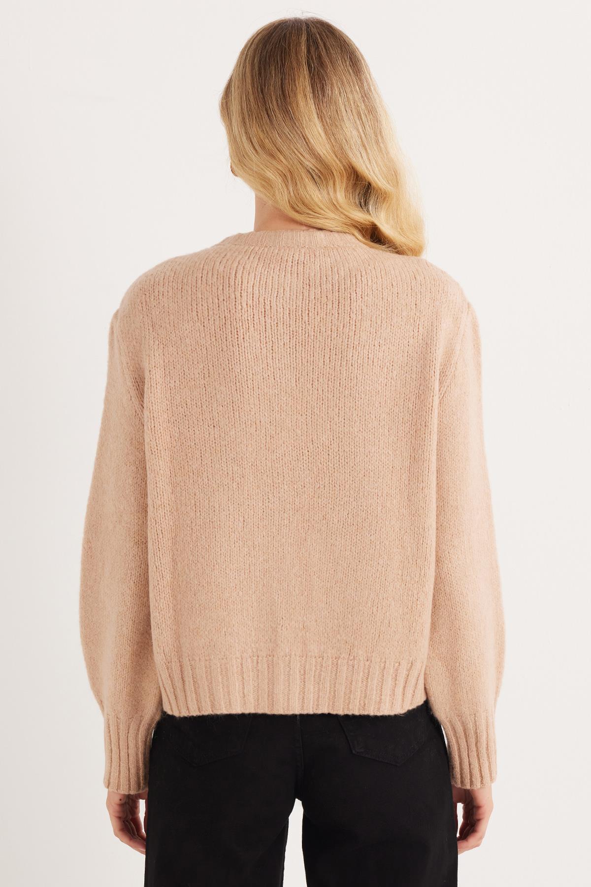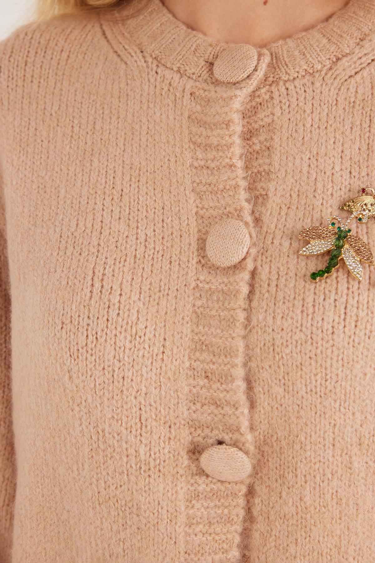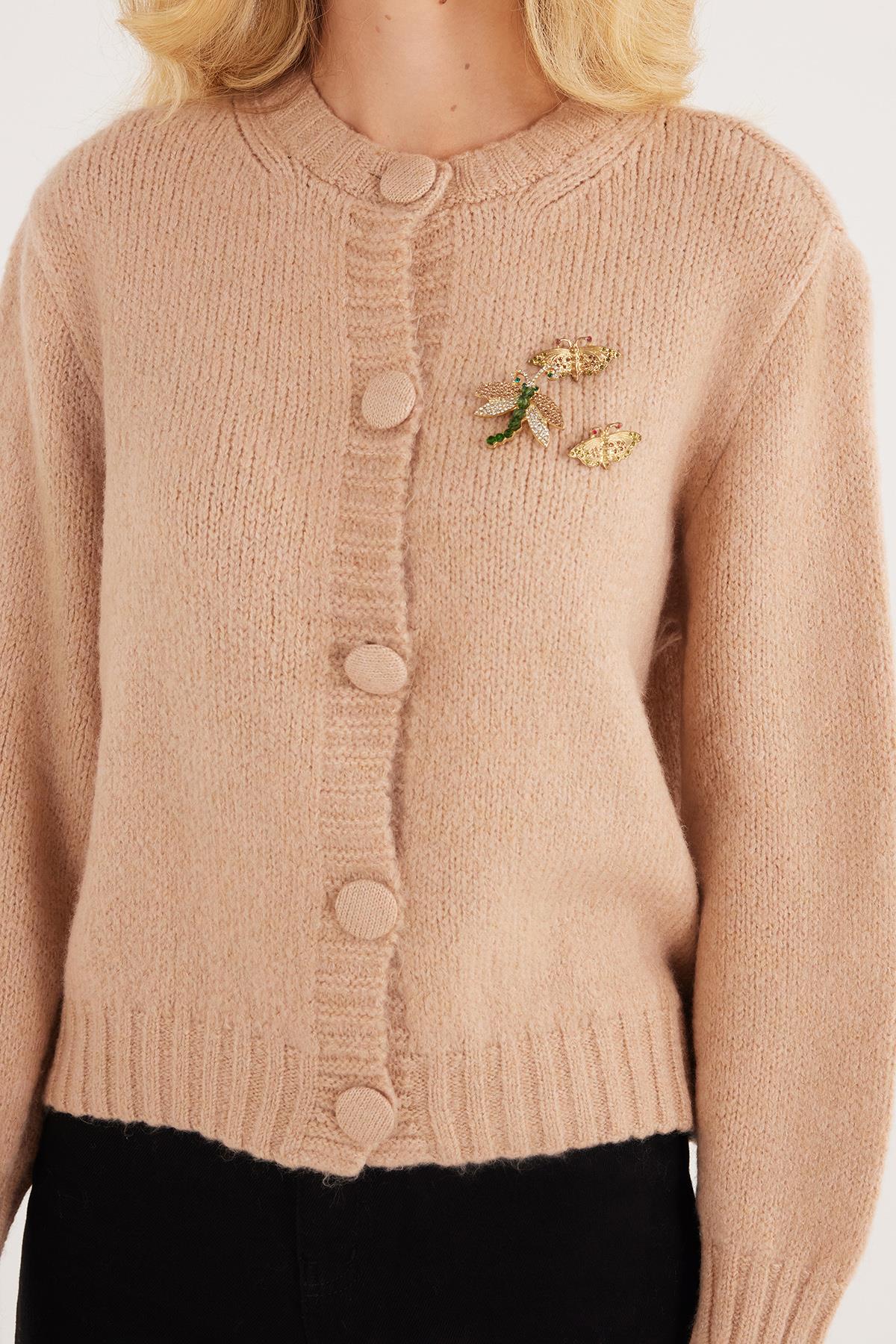 Kadın Regular Fit Klasik Kesim Kelebek İşlemeli Pudra Hırka (BYKZ2520-PUDRA)