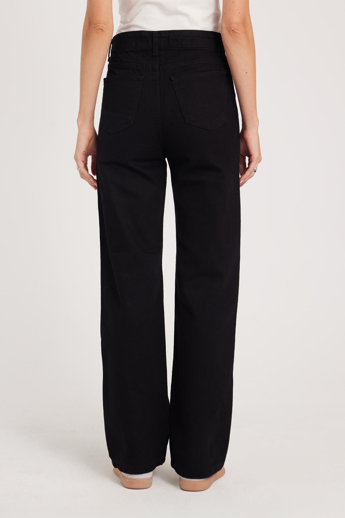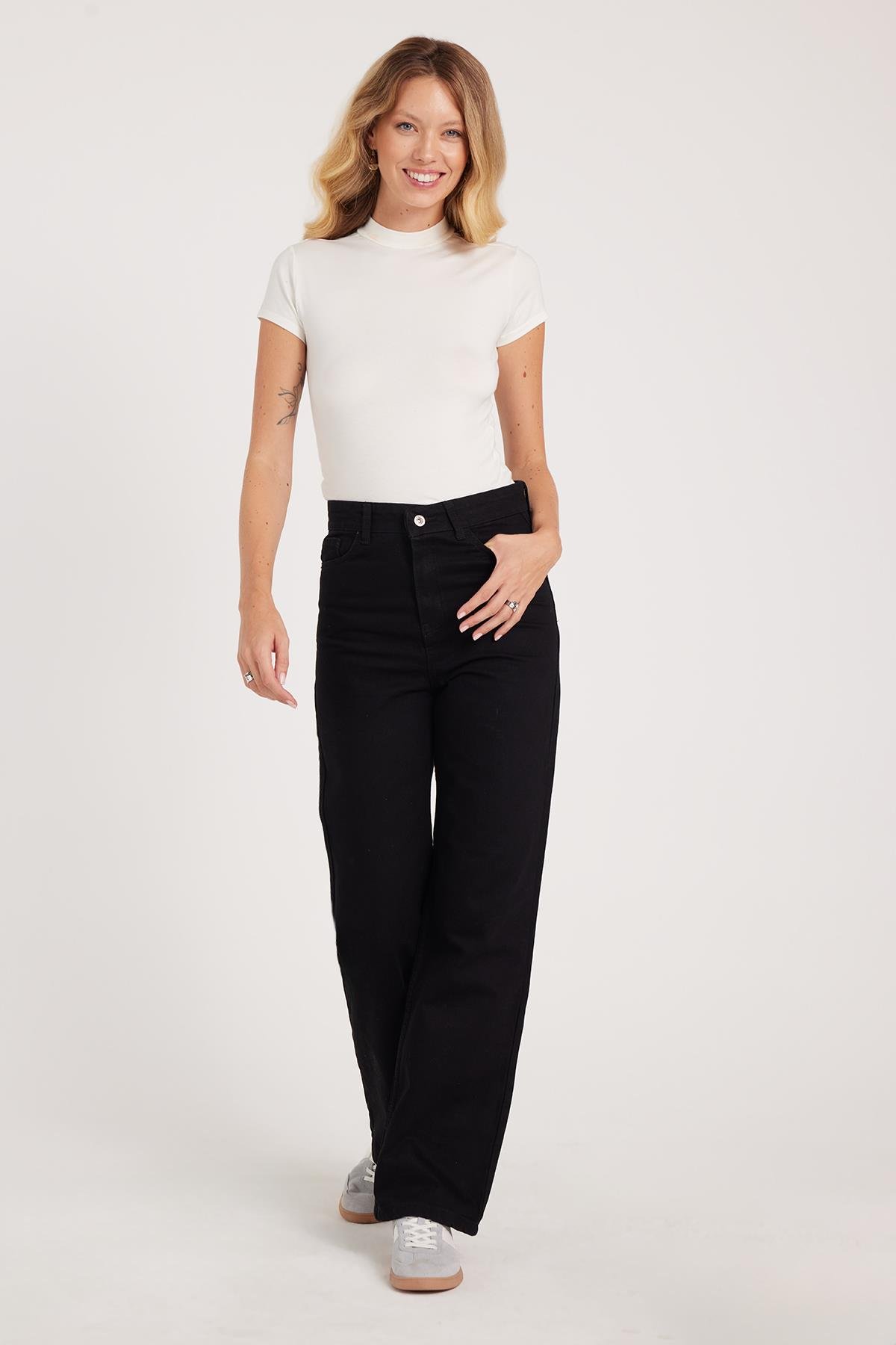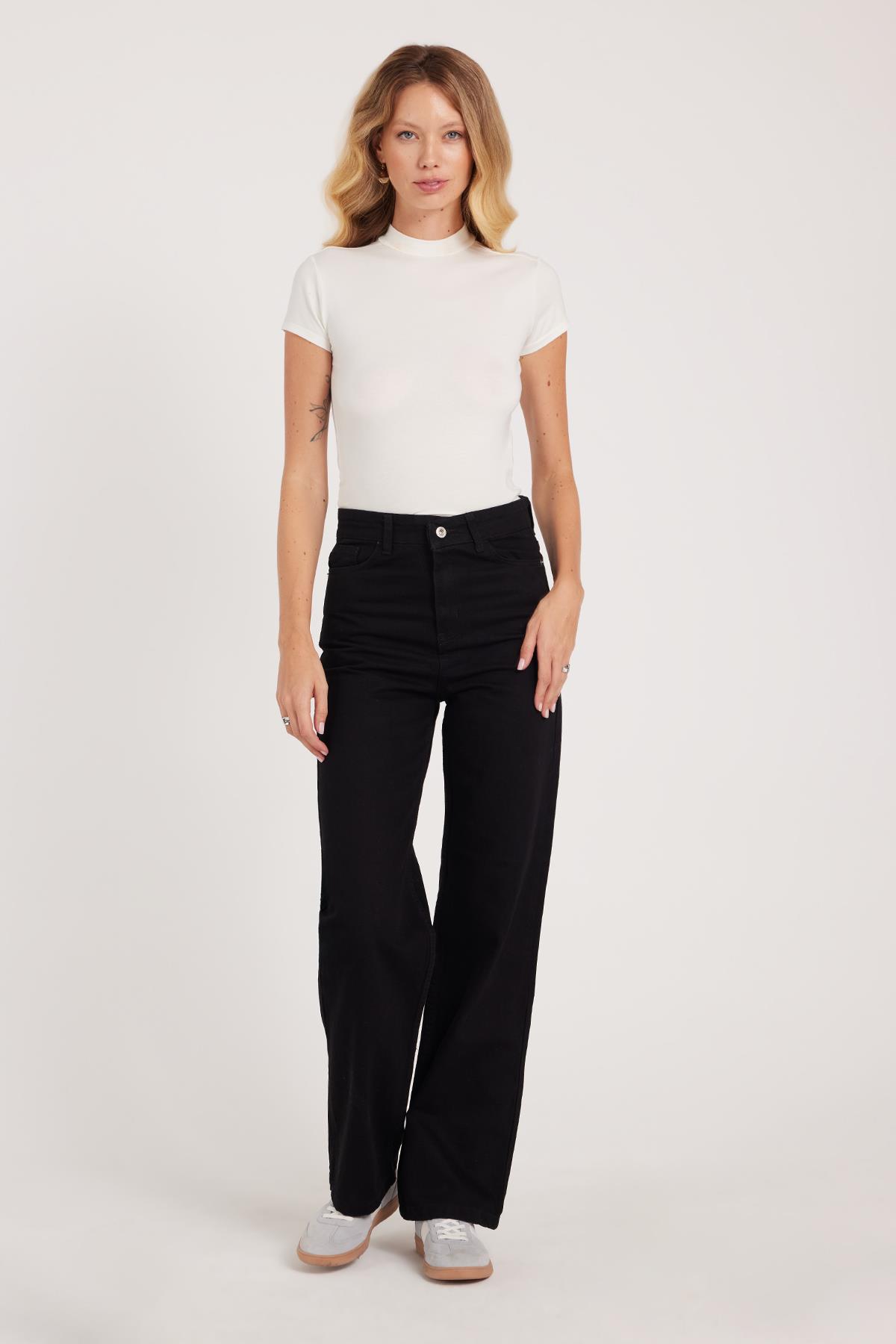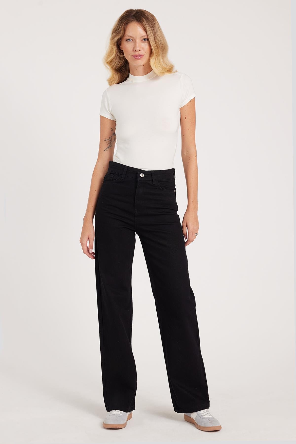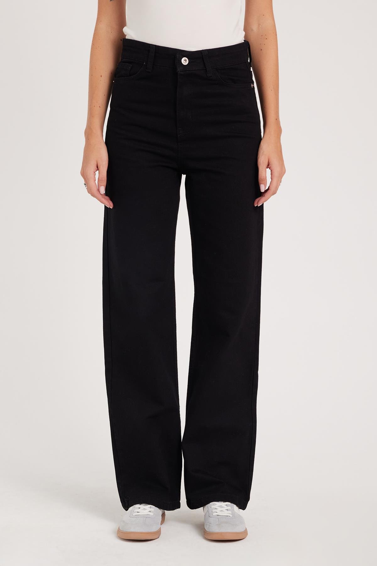 Kadın Regular Fit Klasik Kesim Pamuklu Bol Paça Siyah Jean Pantolon (PN250039-7000)