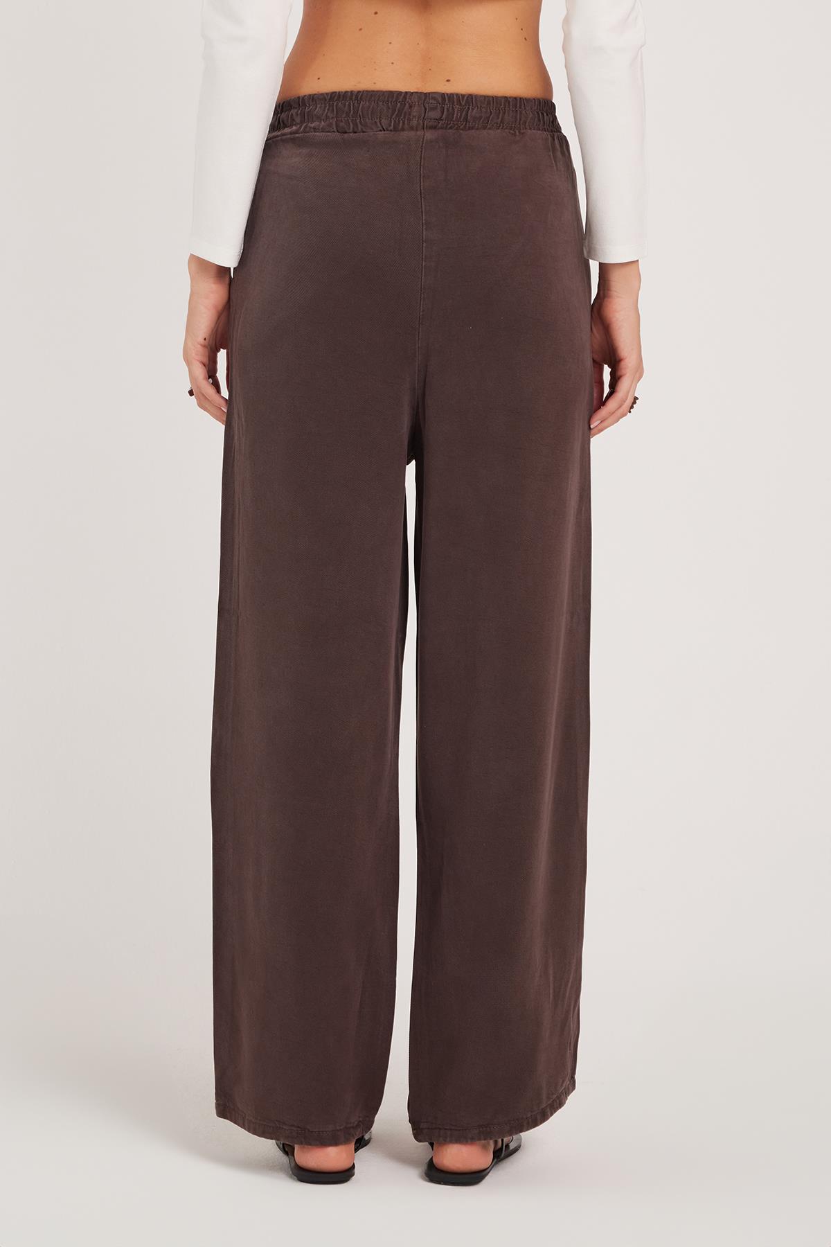 Kadın Regular Fit Klasik Kesim Pamuklu Geniş Paça Kahverengi Pantolon (PN250040-07)