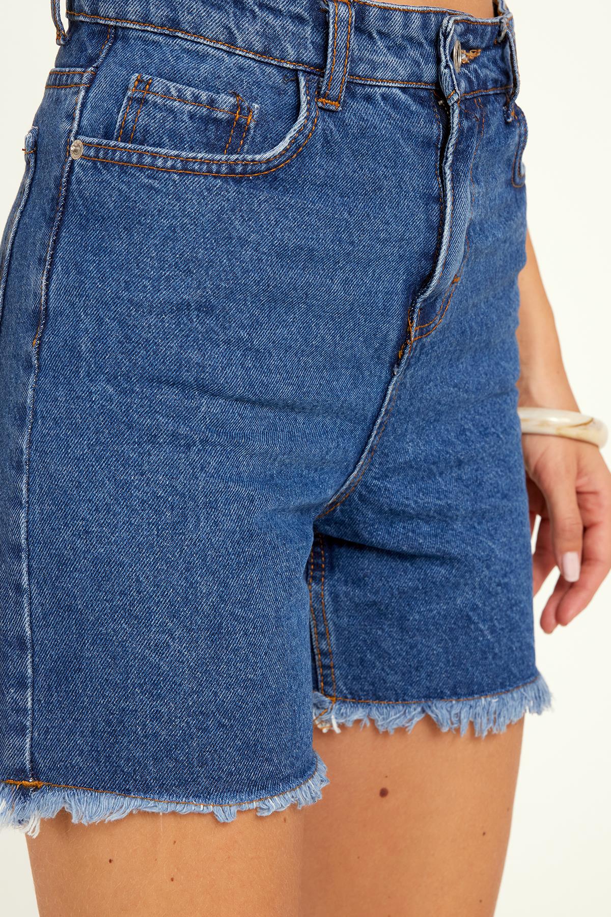 Kadın Regular Fit Klasik Kesim Pamuklu Mavi Jean Kot Şort (SRT25014-22)