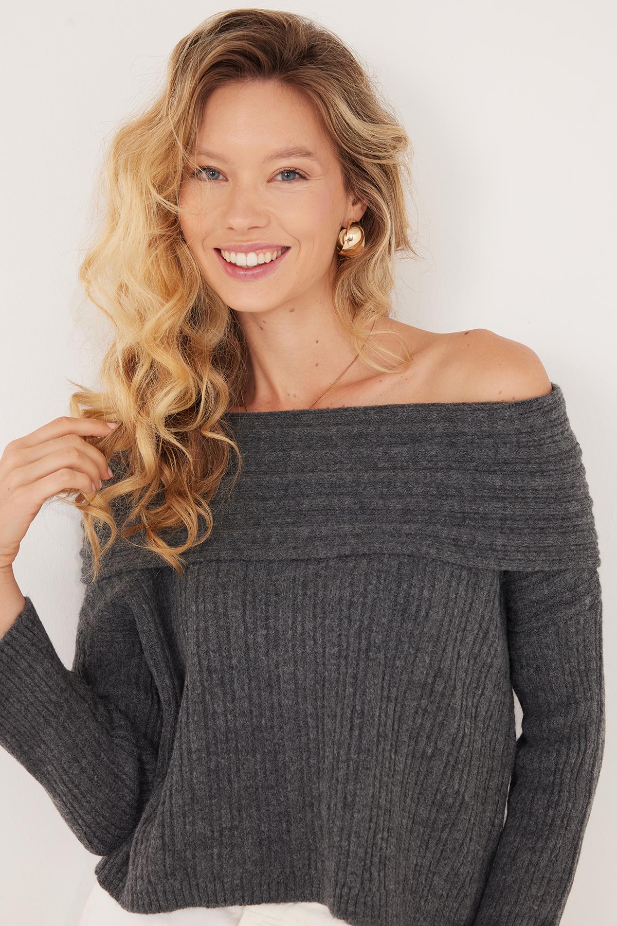 Kadın Regular Fit Klasik Kesim Uzun Kollu Omzu Açık Antrasit Kazak (BYKZ2522-ANHCT)