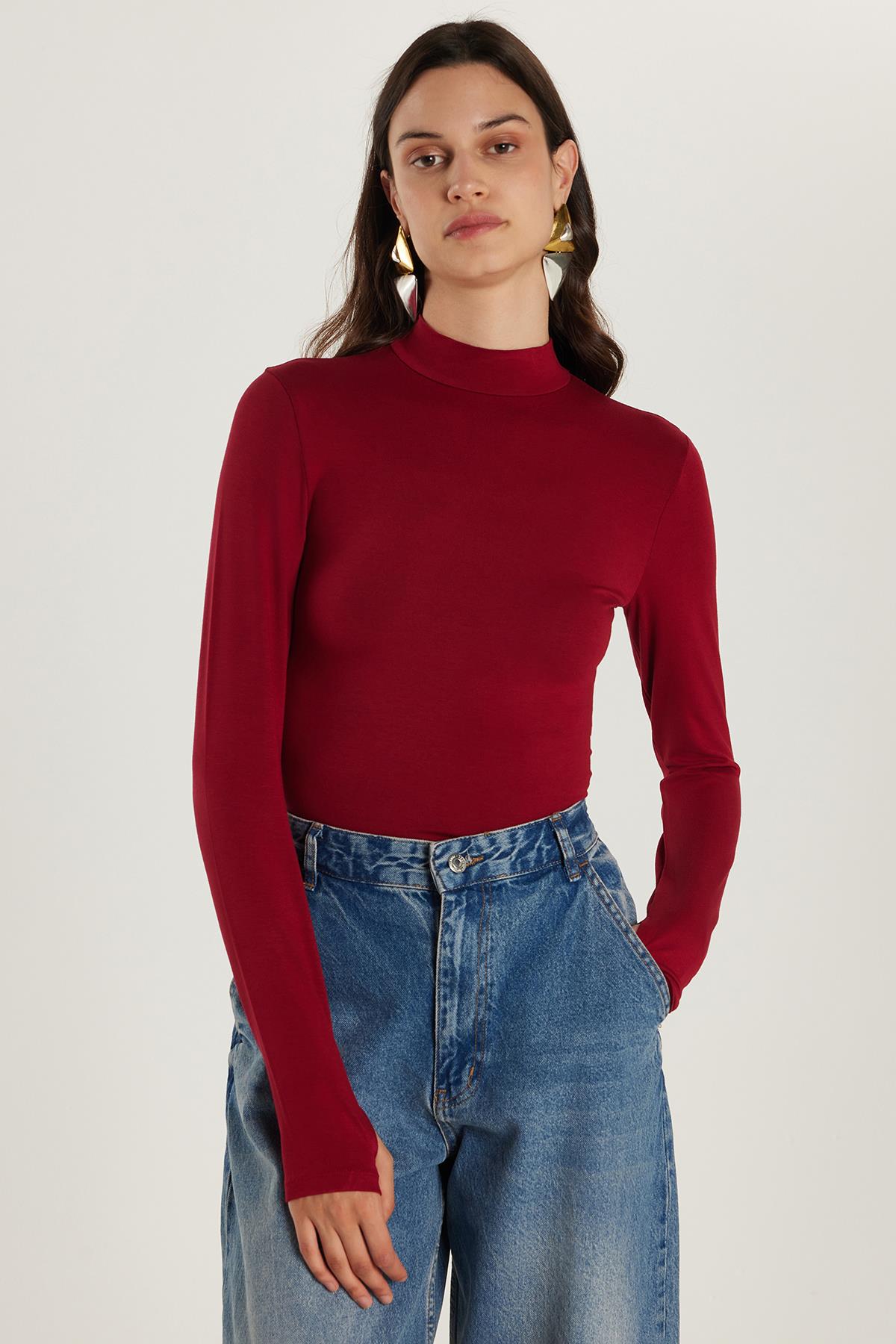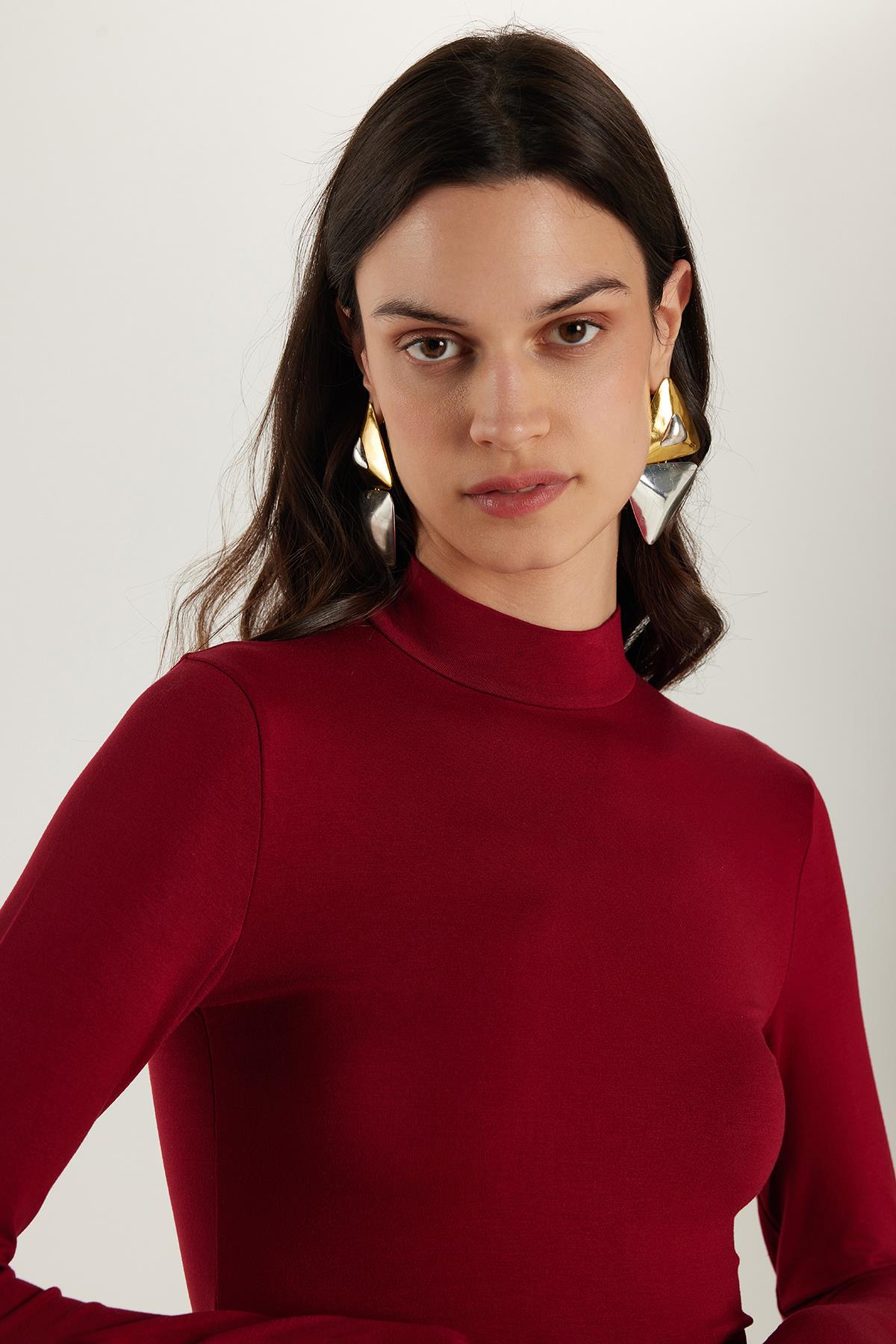 Kadın Regular Fit Klasik Kesim Viskon Kumaş Balıkçı Yaka Bordo Bluz  (BDY25022-08)