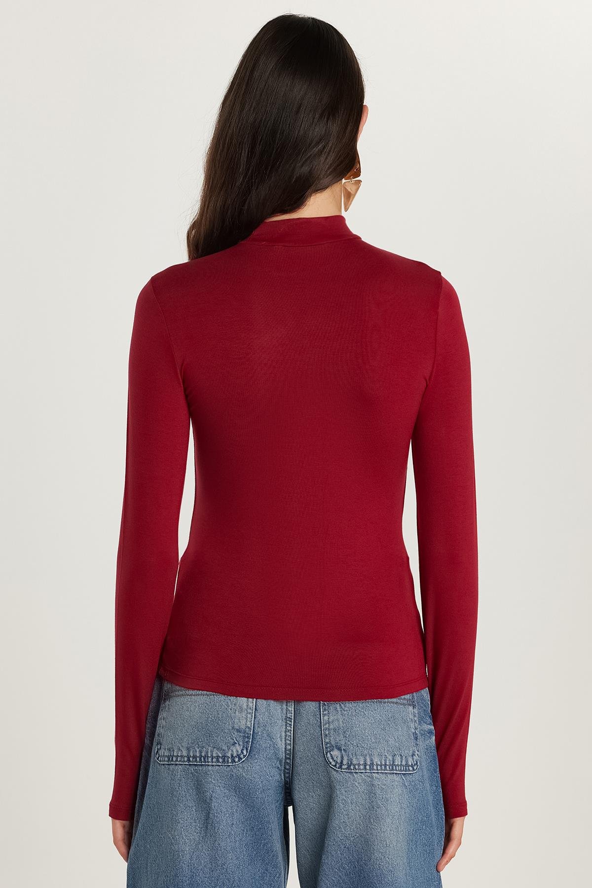 Kadın Regular Fit Klasik Kesim Viskon Kumaş Balıkçı Yaka Bordo Bluz