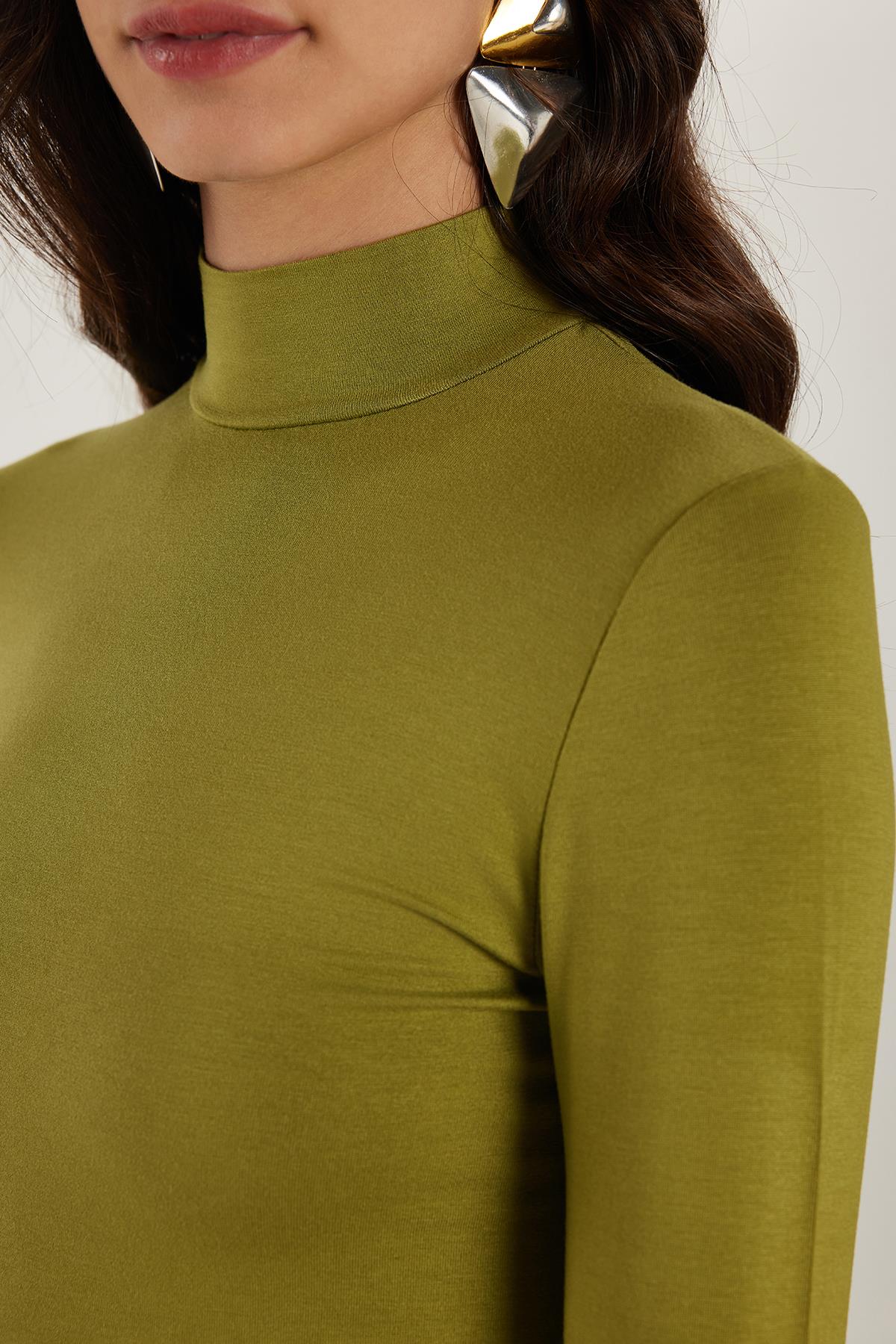 Kadın Regular Fit Klasik Kesim Viskon Kumaş Balıkçı Yaka Yeşil Bluz