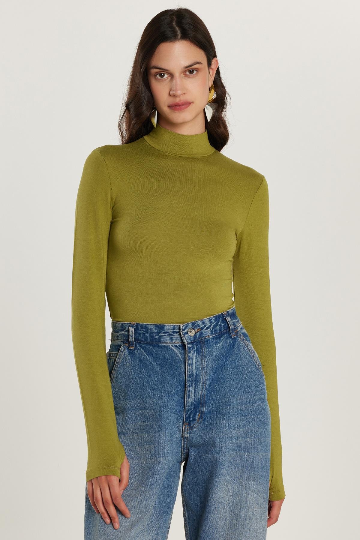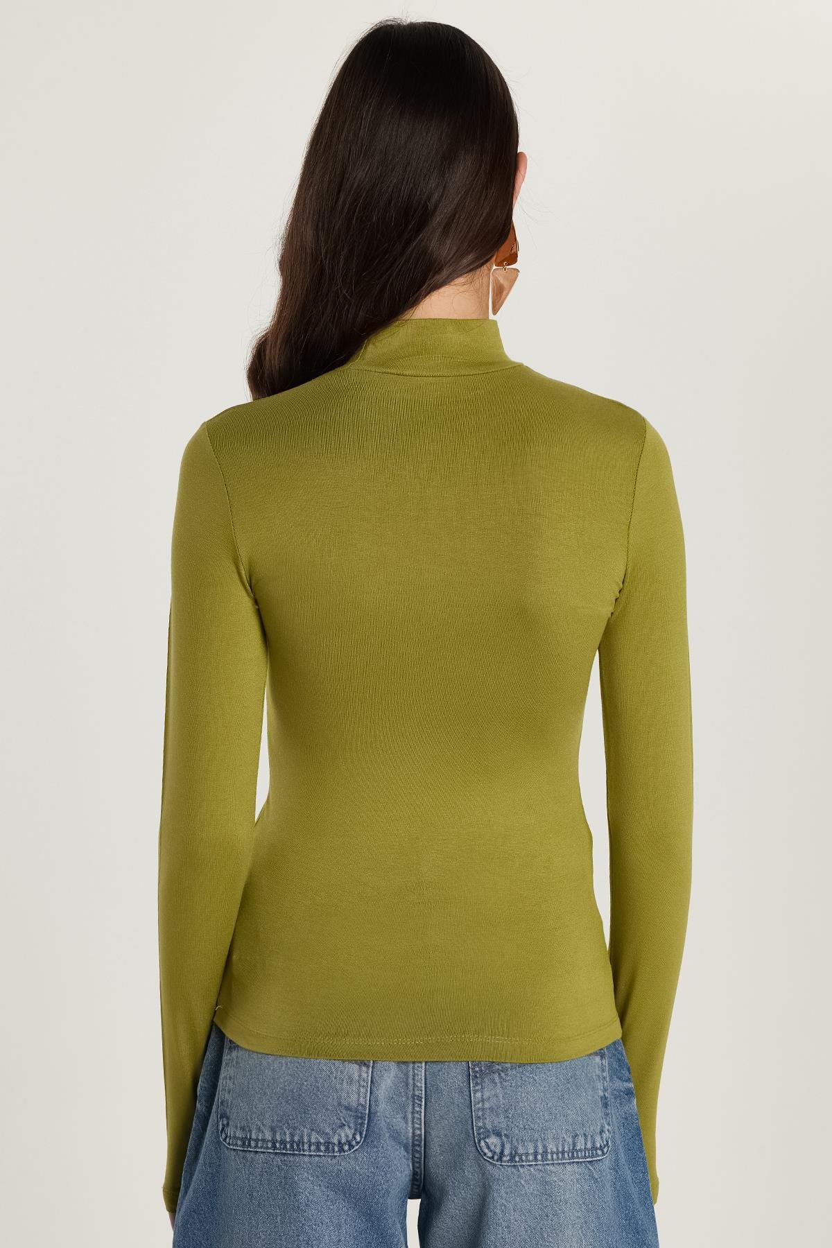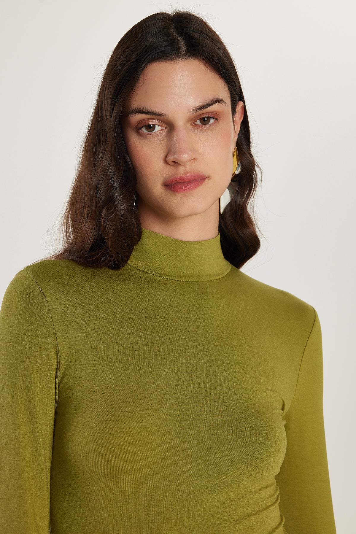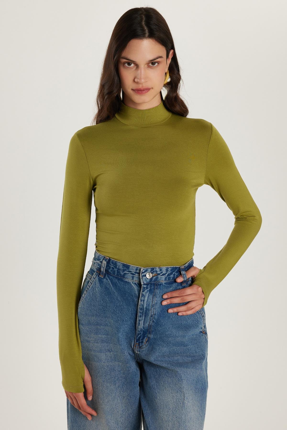 Kadın Regular Fit Klasik Kesim Viskon Kumaş Balıkçı Yaka Yeşil Bluz  (BDY25022-OIG)