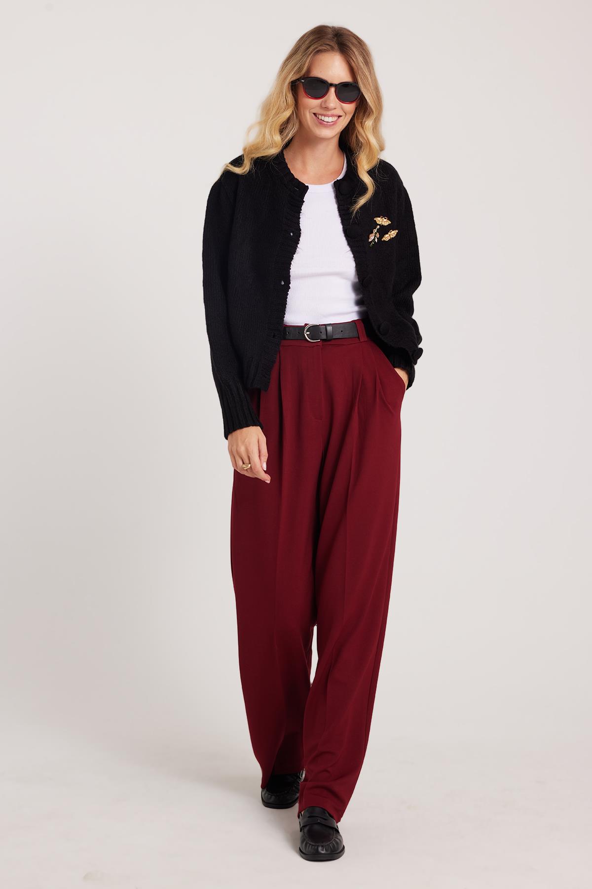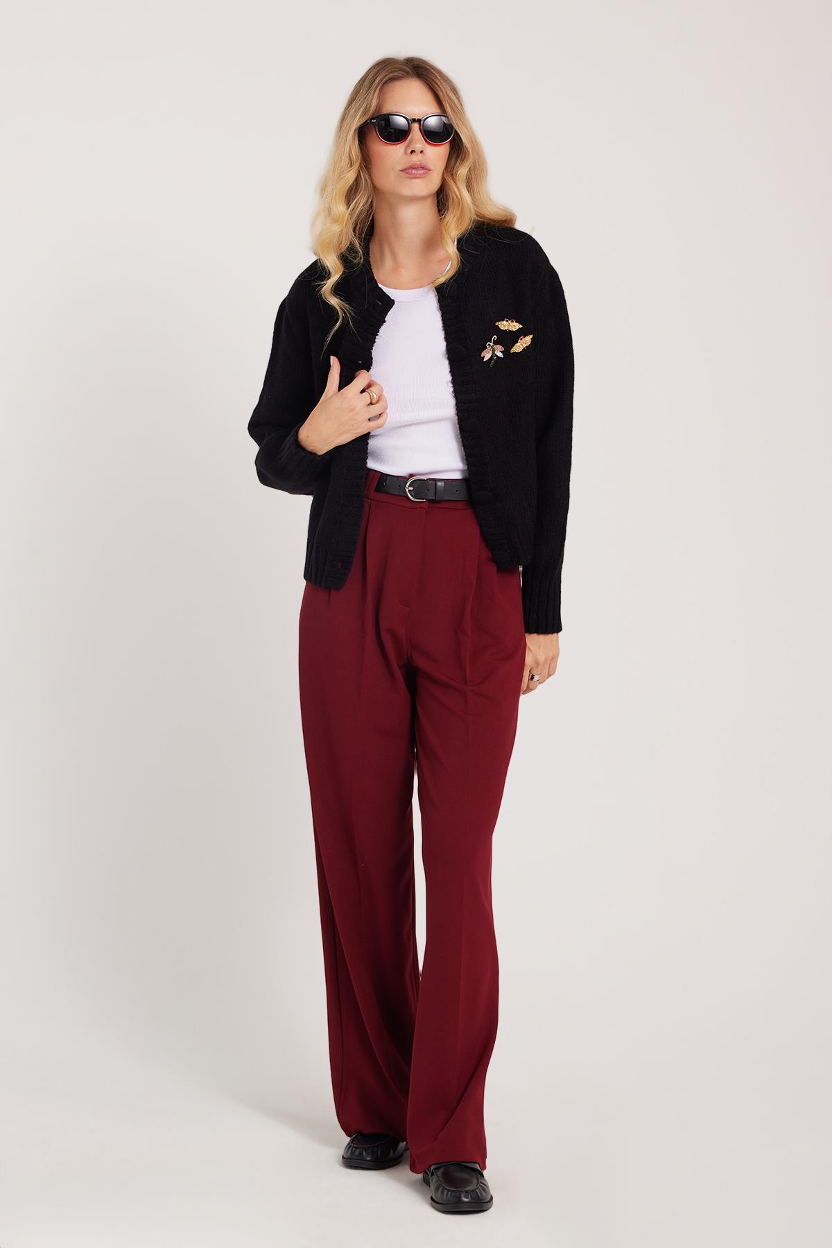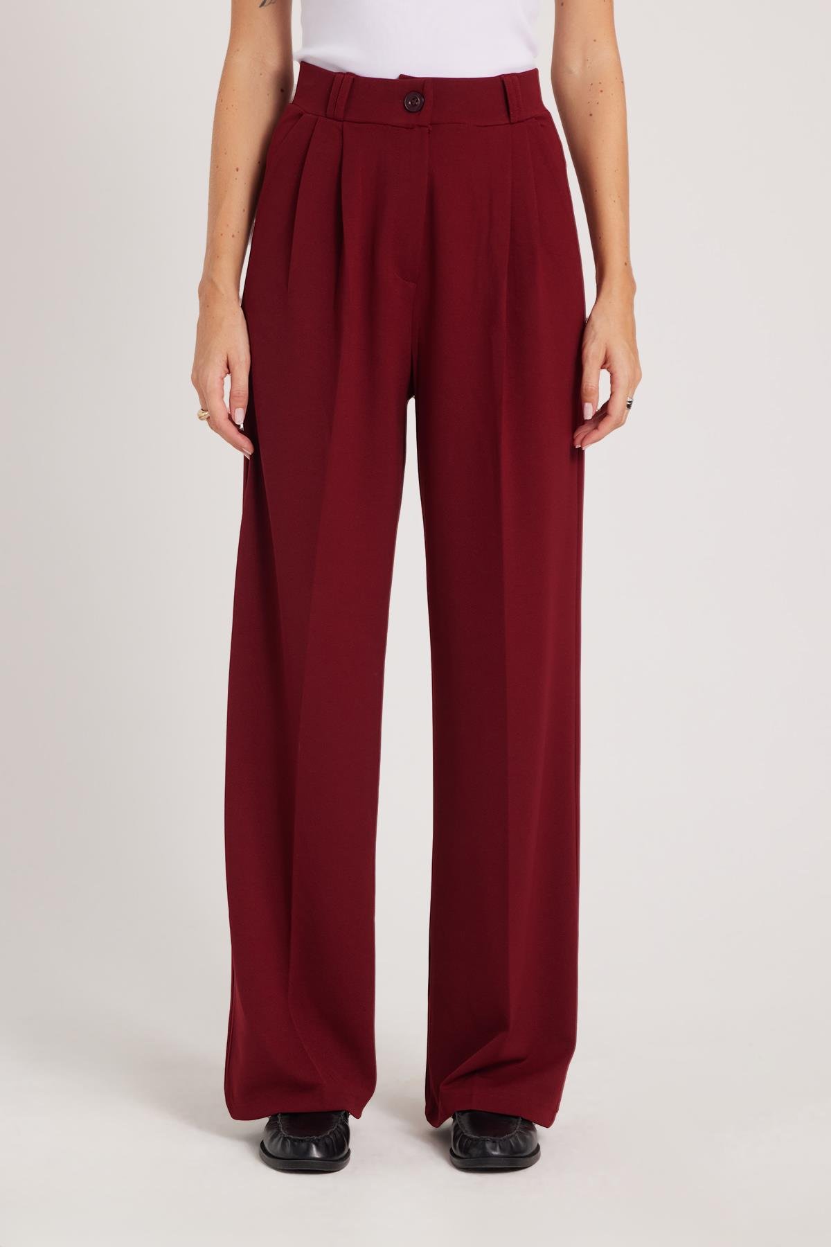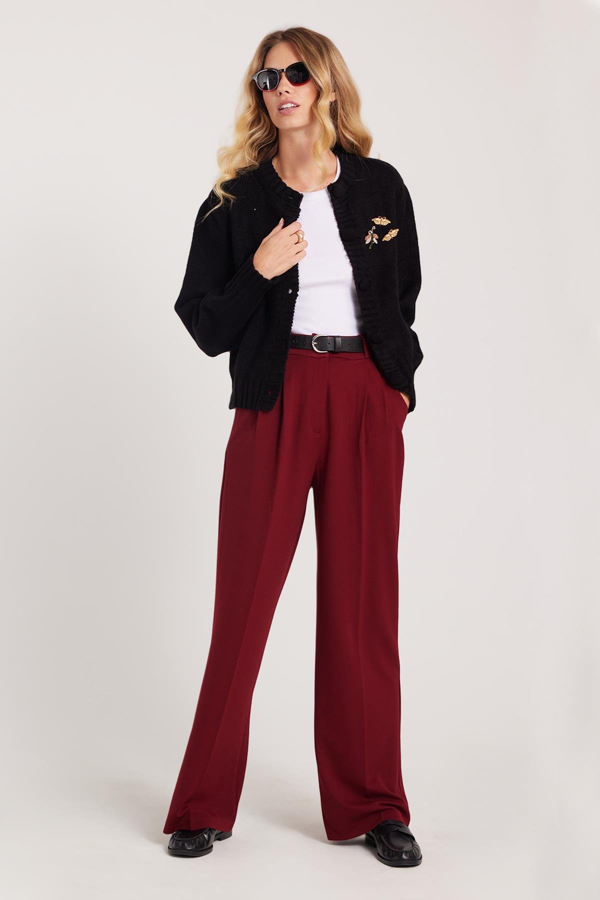 Kadın Regular Fit Klasik Kesim Yüksel Bel Geniş Paça Bordo Pantolon