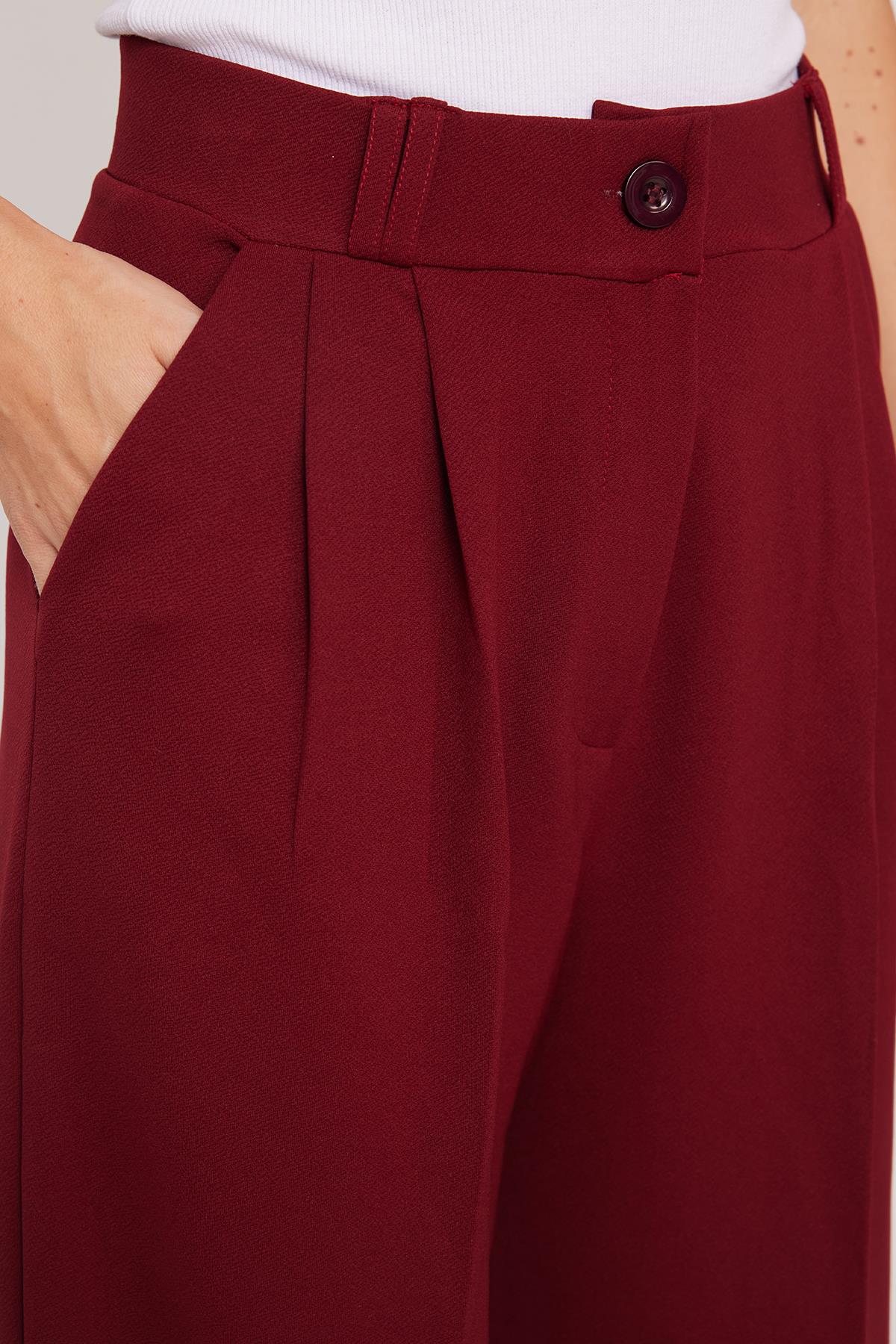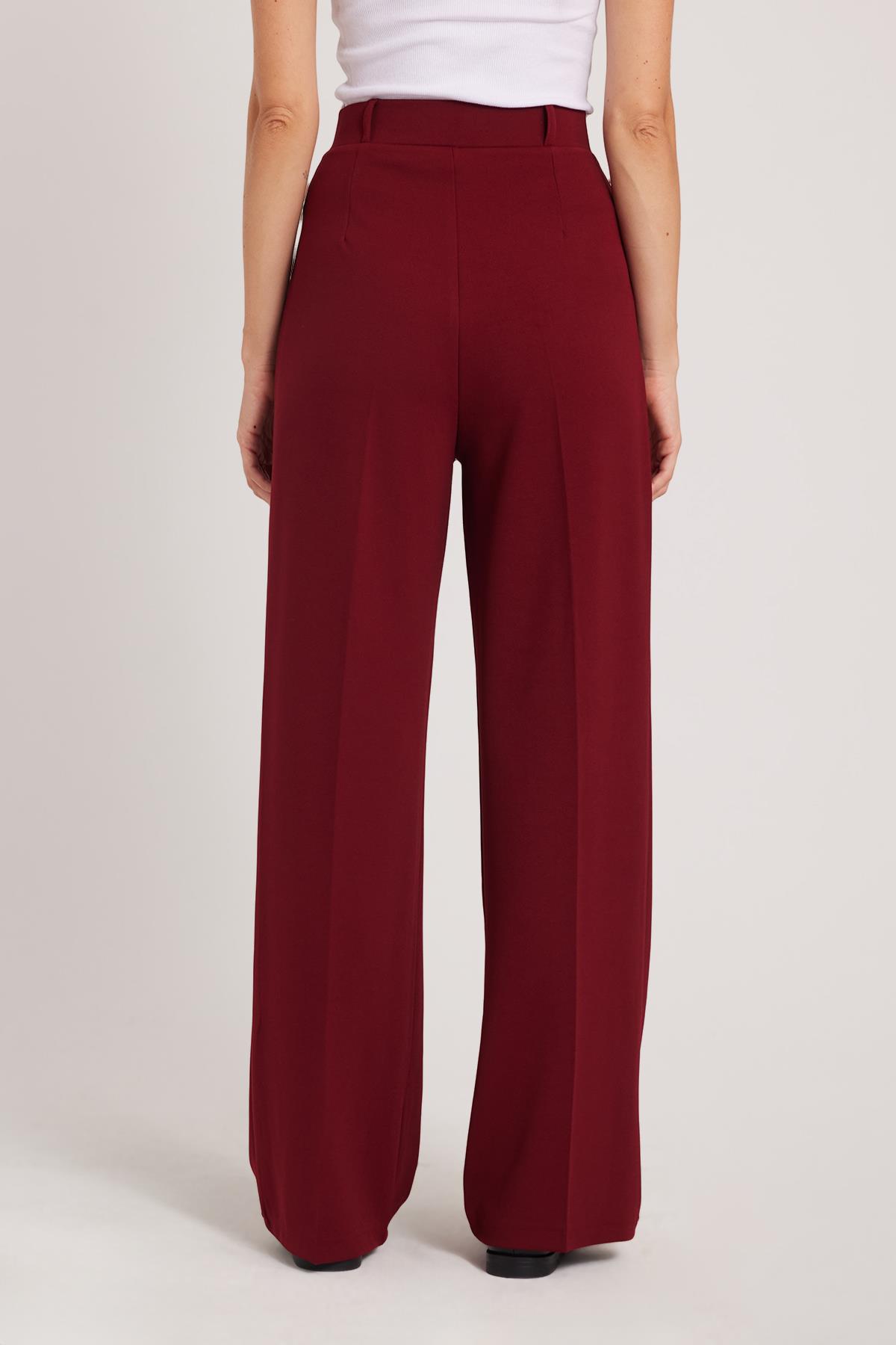 Kadın Regular Fit Klasik Kesim Yüksel Bel Geniş Paça Bordo Pantolon (PN250050-08)