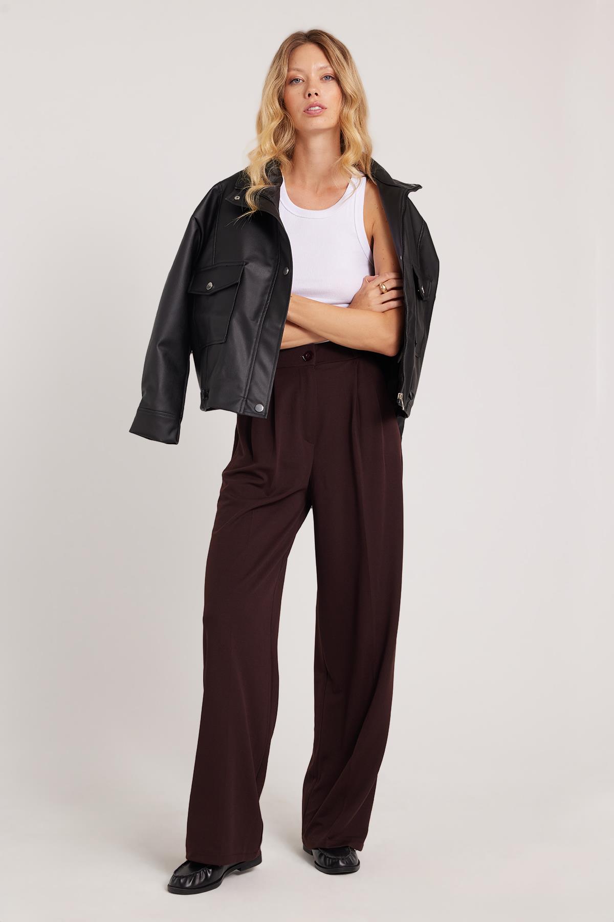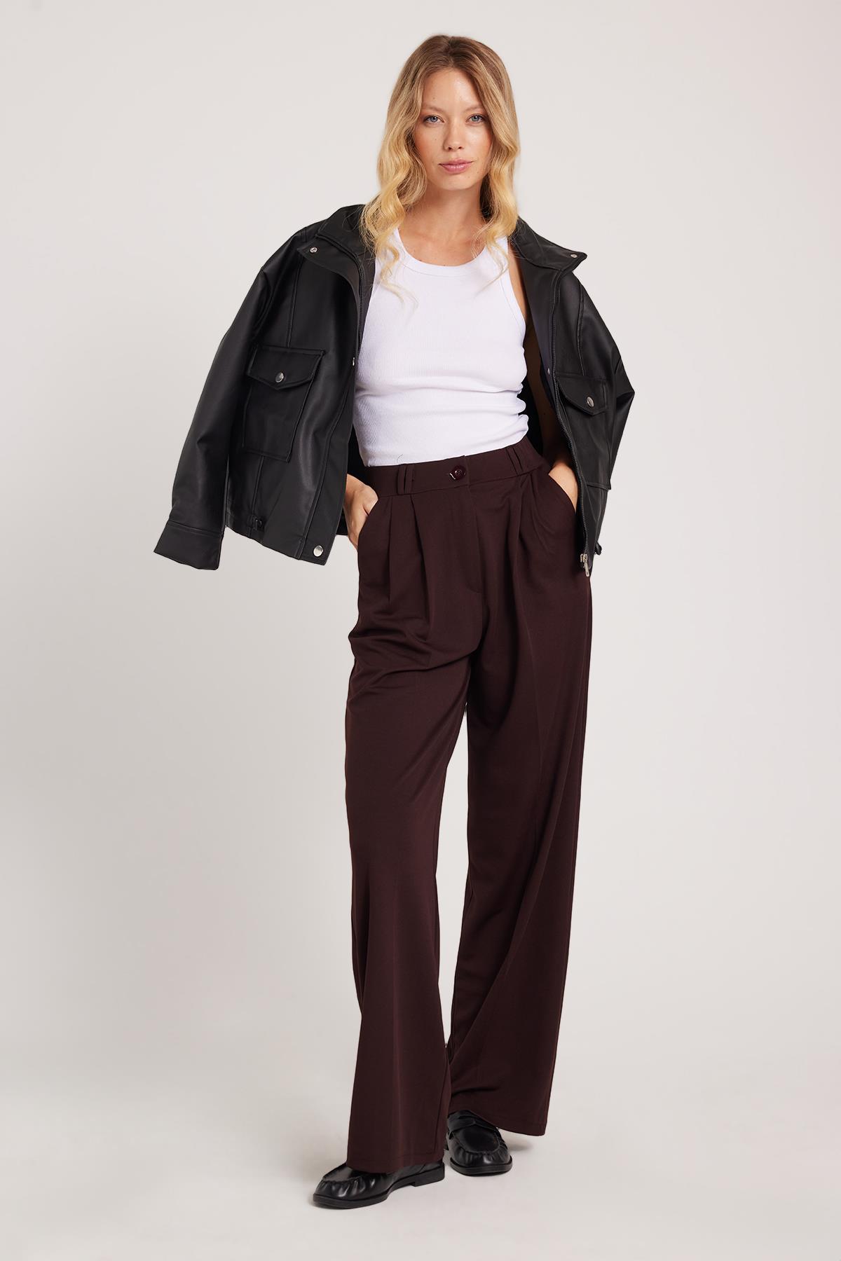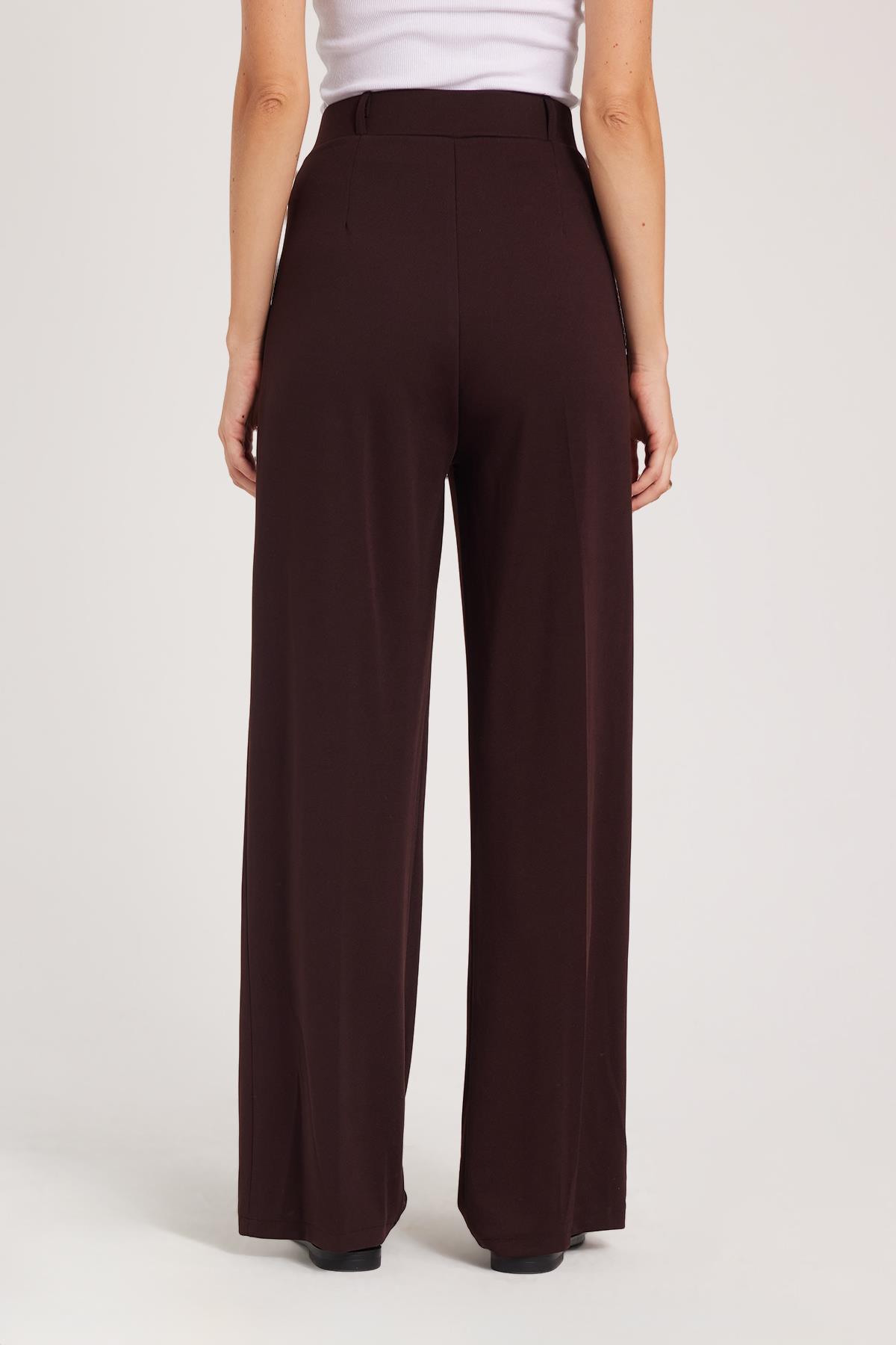 Kadın Regular Fit Klasik Kesim Yüksel Bel Geniş Paça Kahverengi Pantolon (PN250050-07)