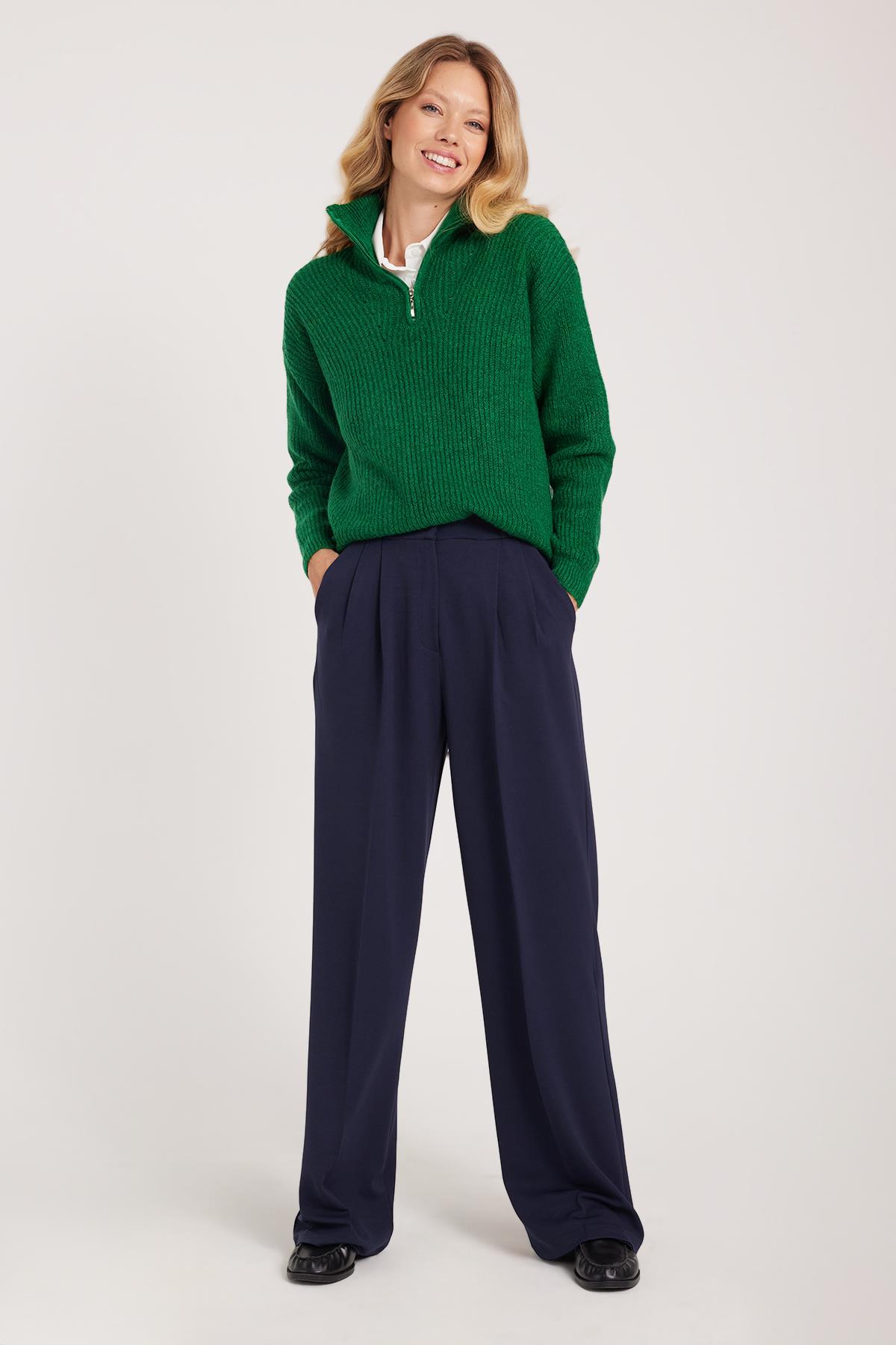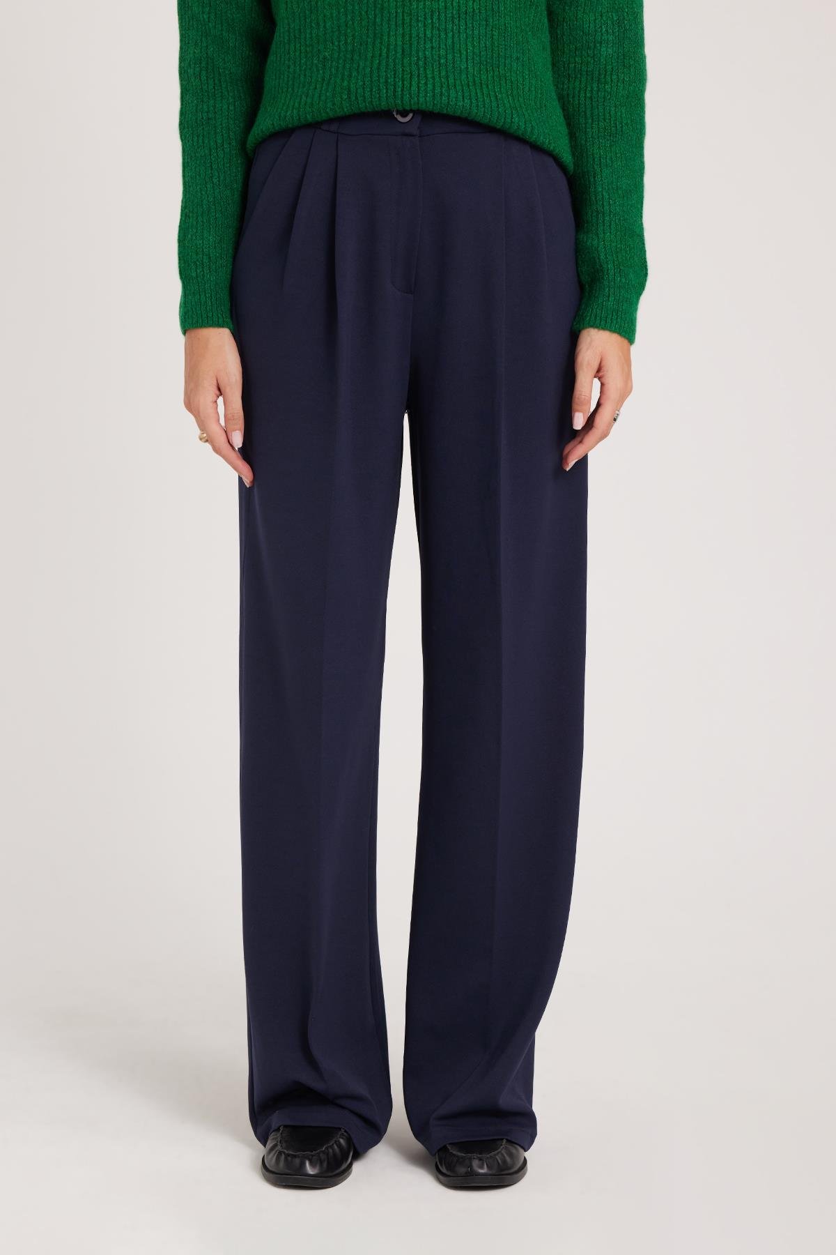 Kadın Regular Fit Klasik Kesim Yüksel Bel Geniş Paça Lacivert Pantolon