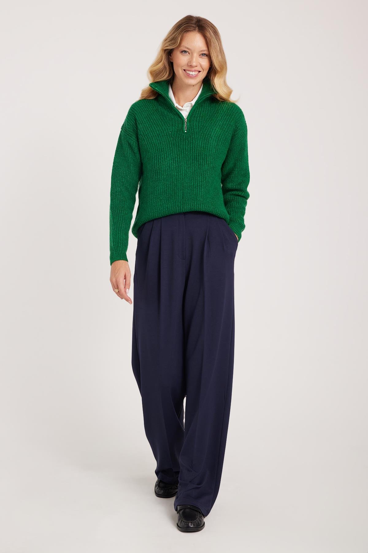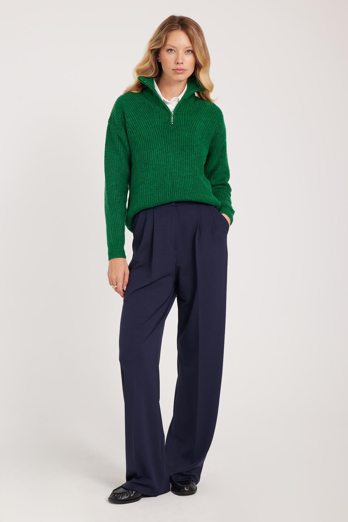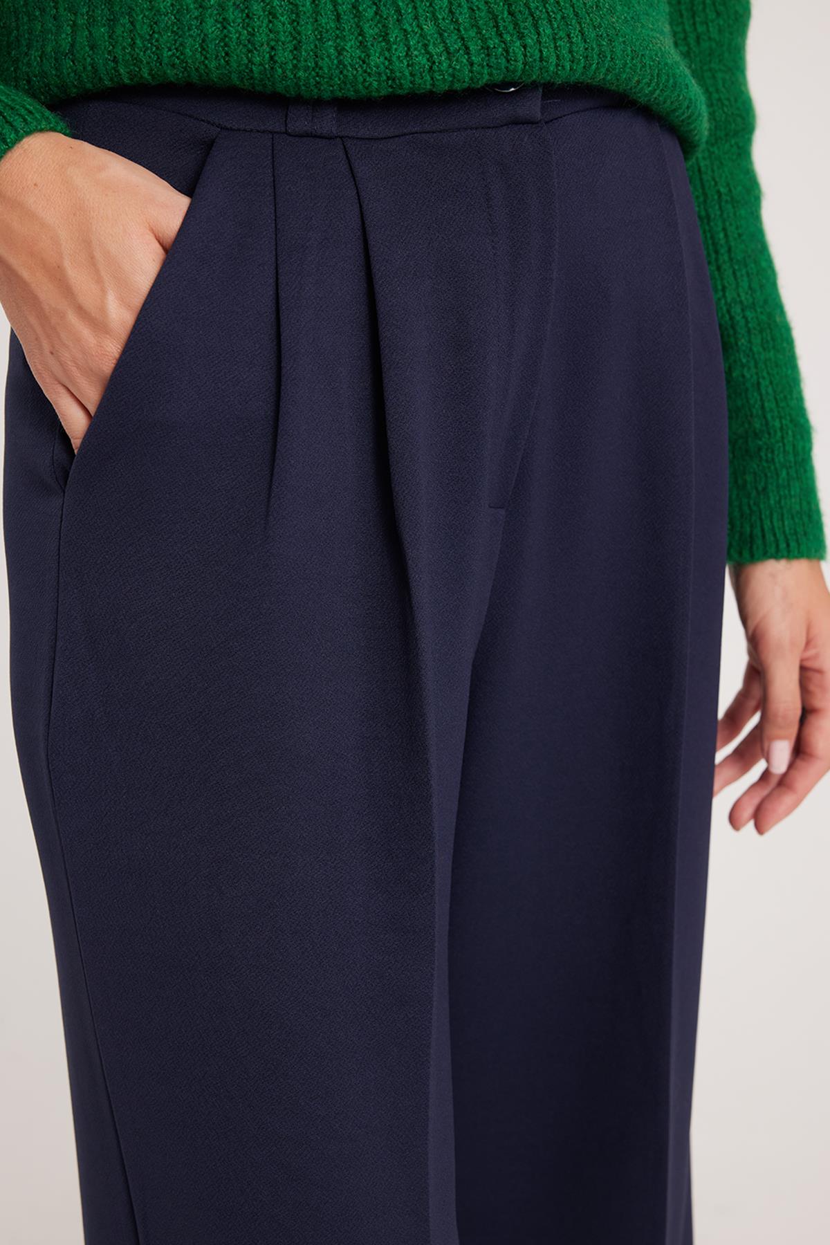 Kadın Regular Fit Klasik Kesim Yüksel Bel Geniş Paça Lacivert Pantolon (PN250050-47)