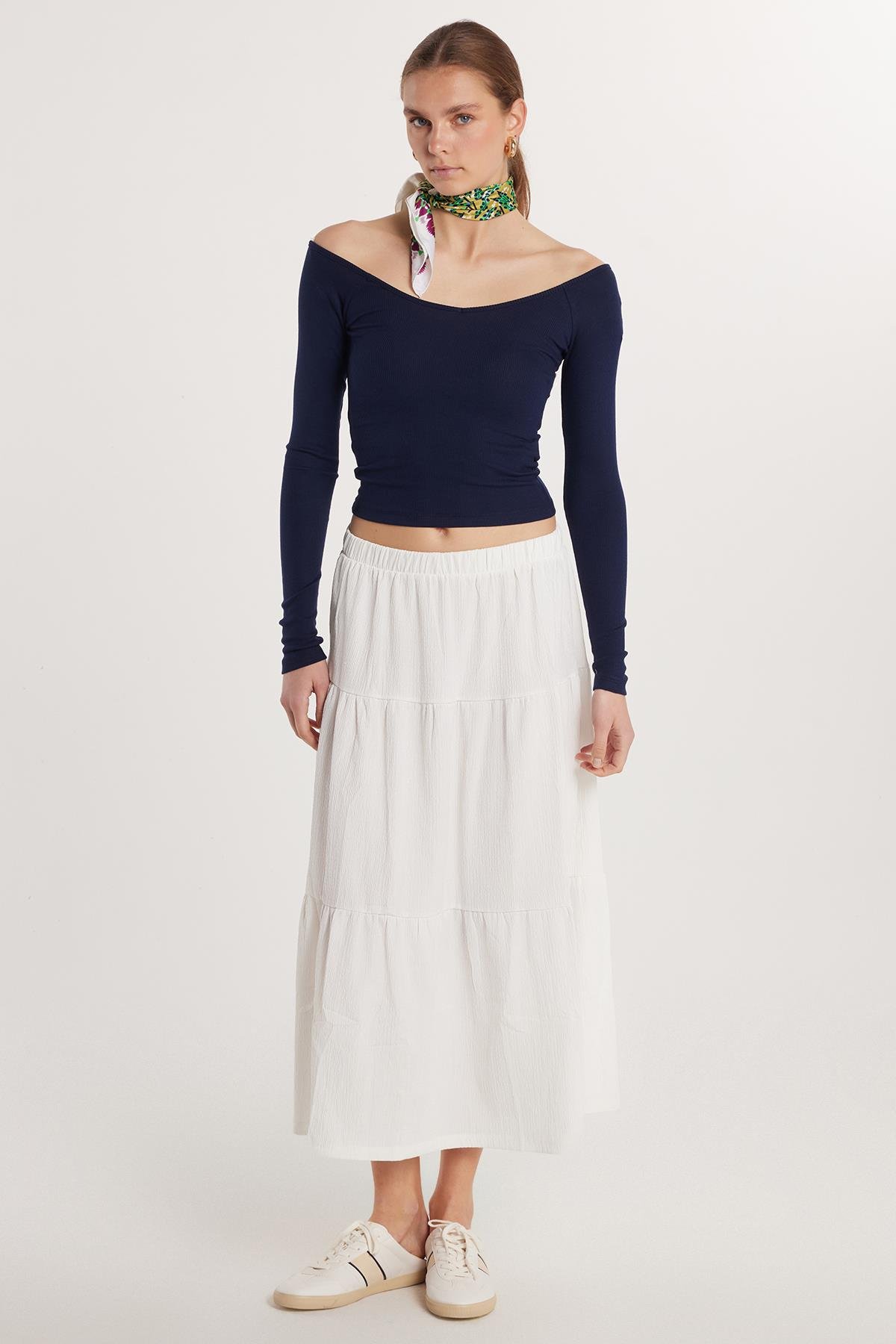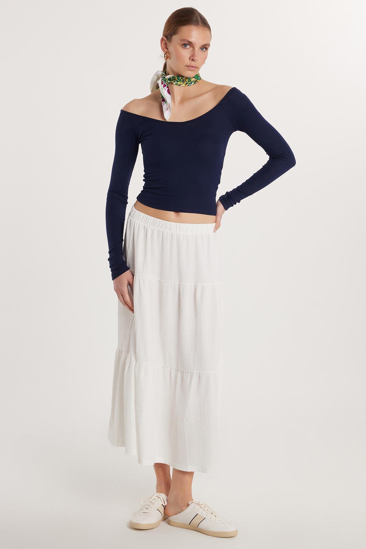 Kadın Regular Fit Pamuklu Düz Ekru Etek