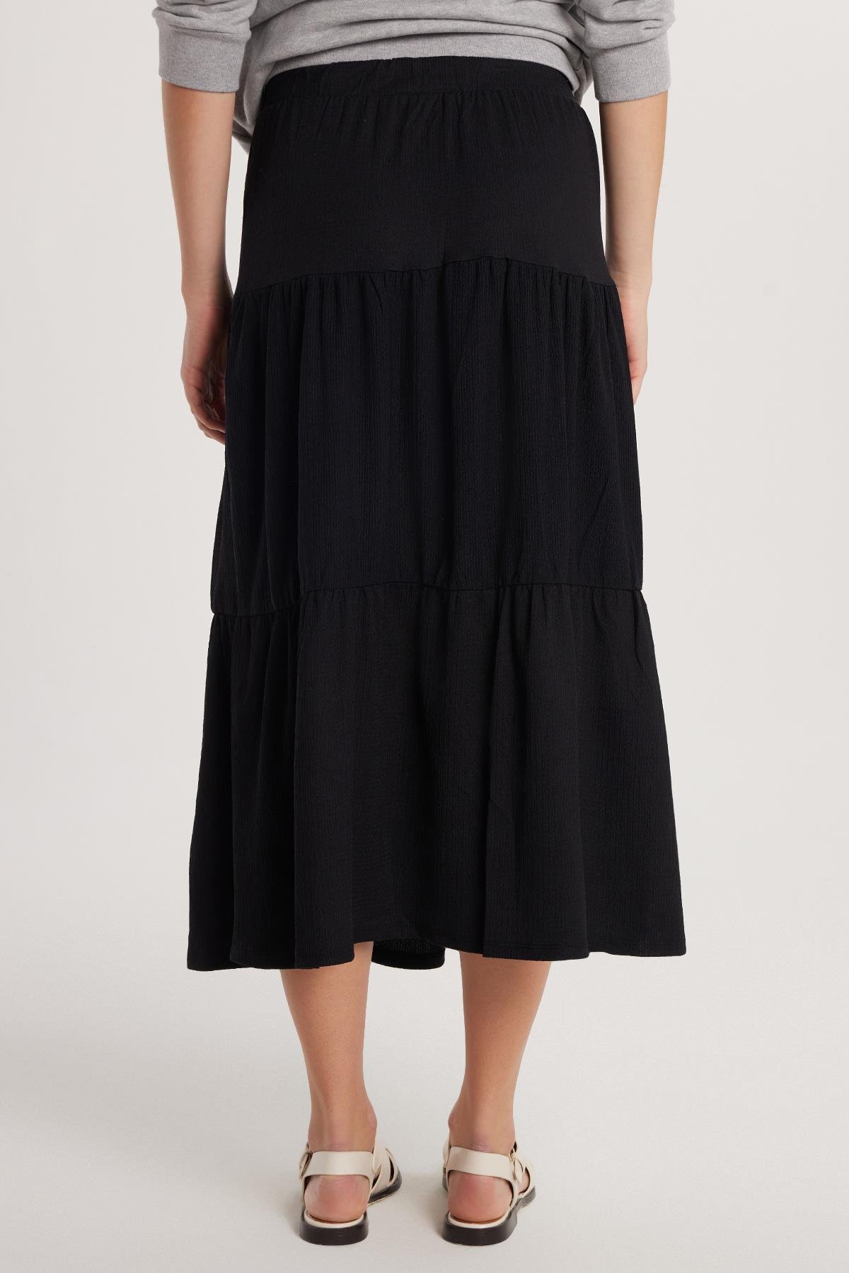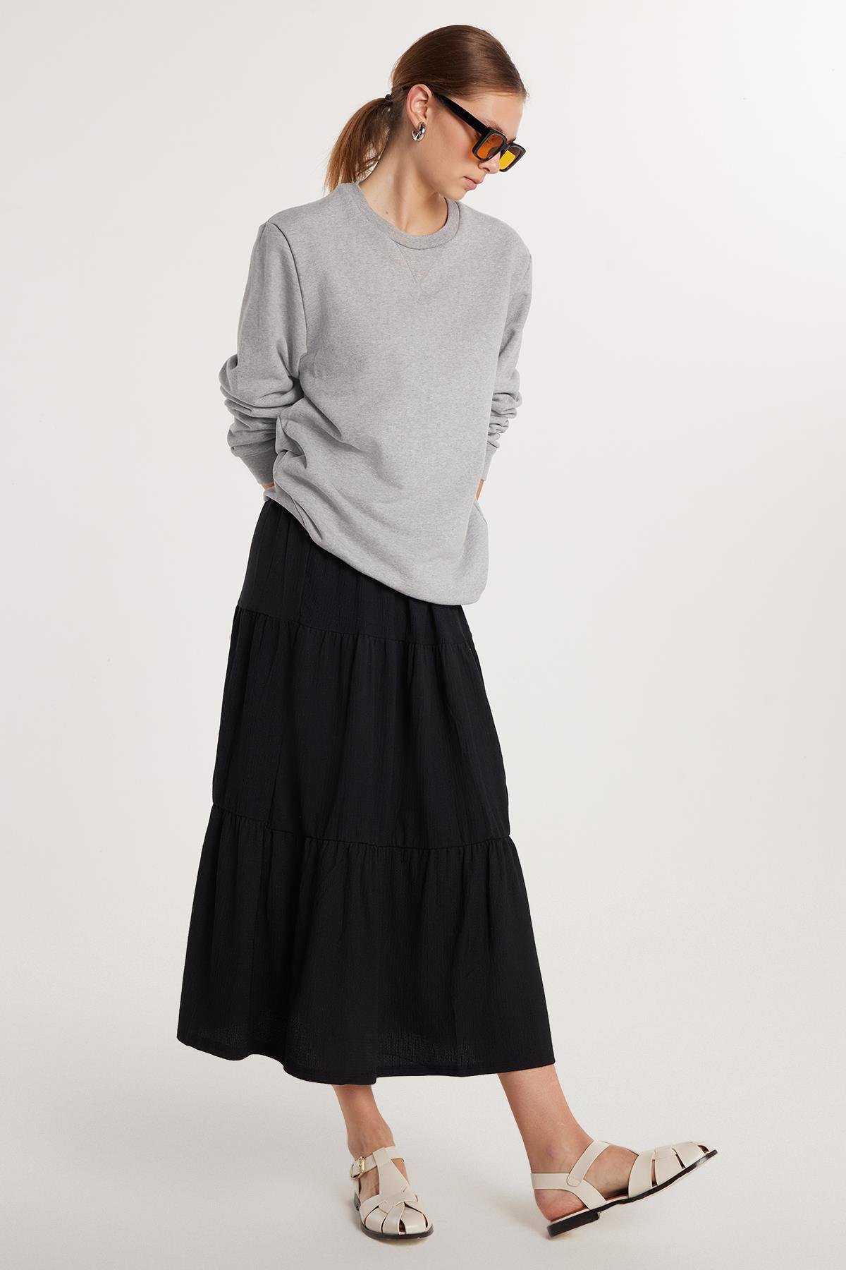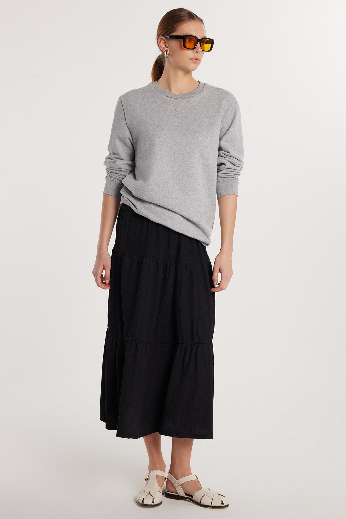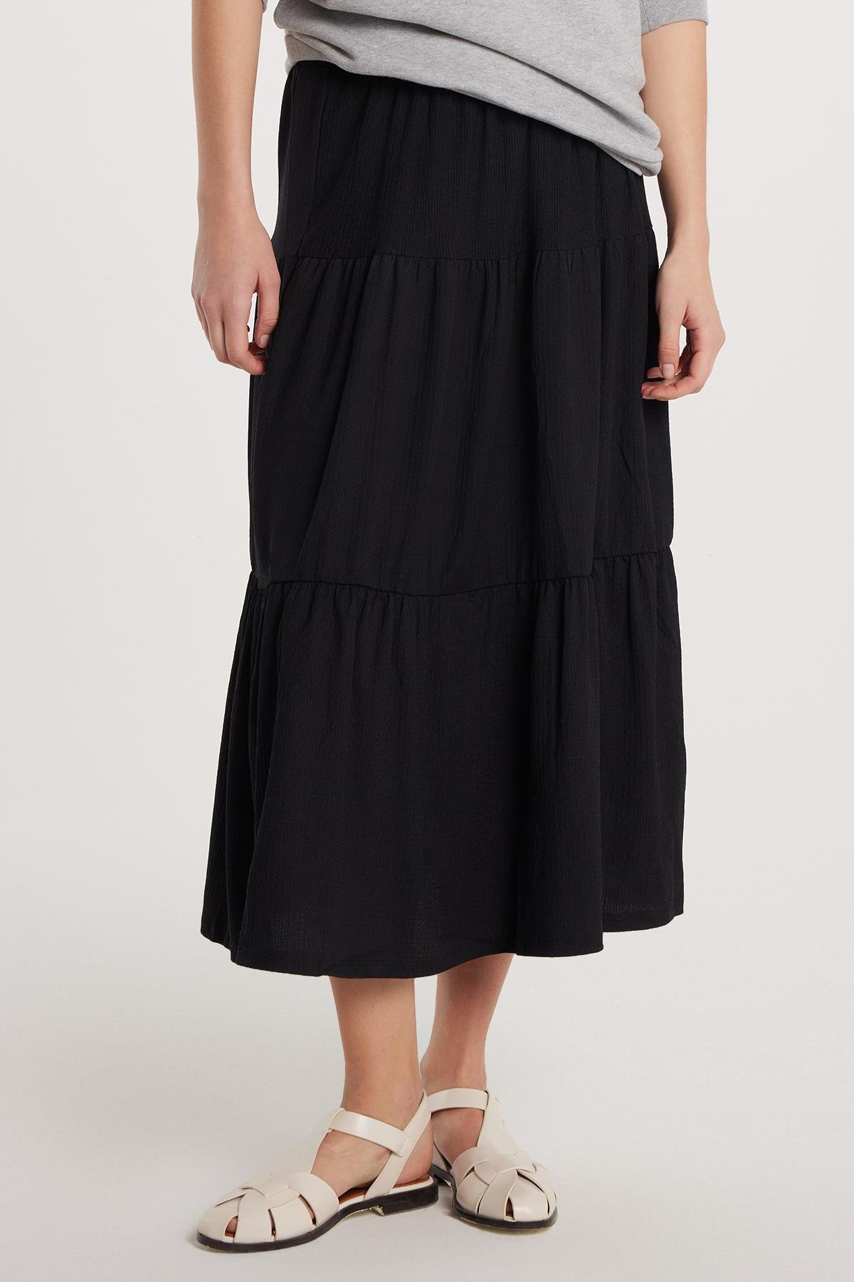 Kadın Regular Fit Pamuklu Düz Siyah Etek (KDN25149-02)