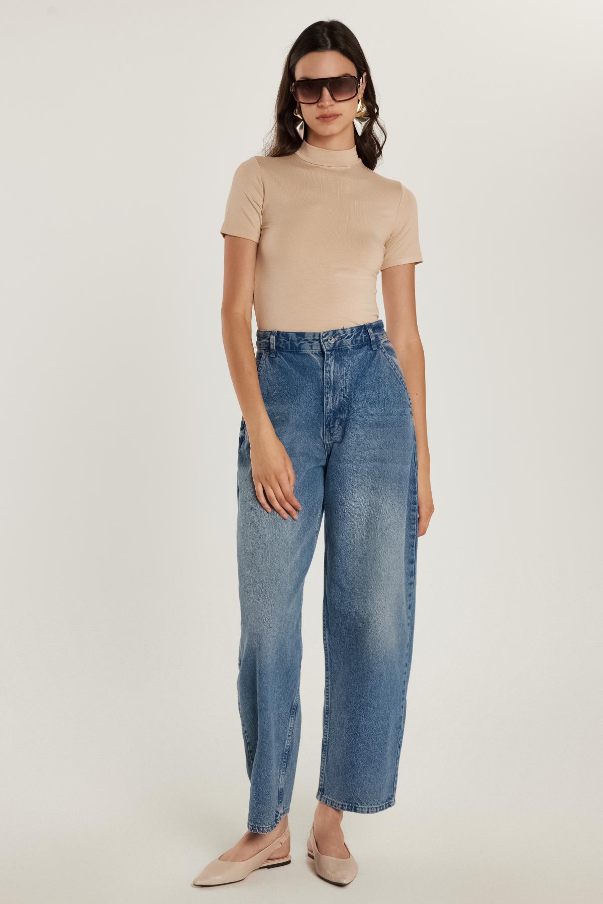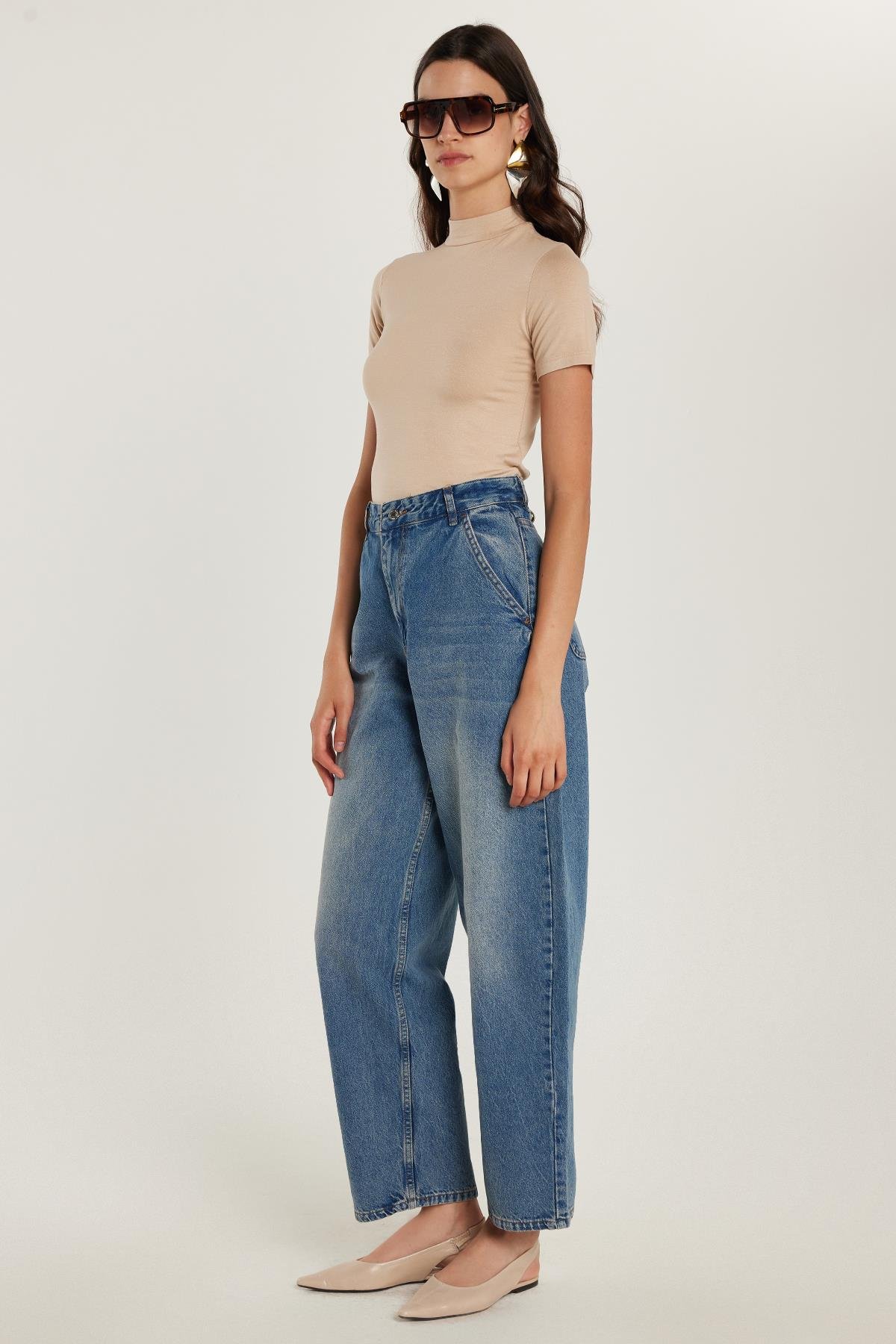 Kadın Regular Fit Yan Cepli Baggy Balon Mavi Jean Kot Pantolon (KDN25240-1013)