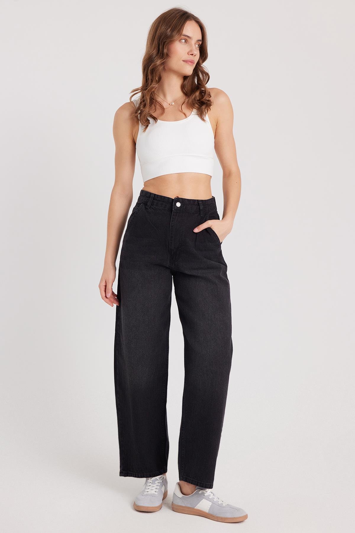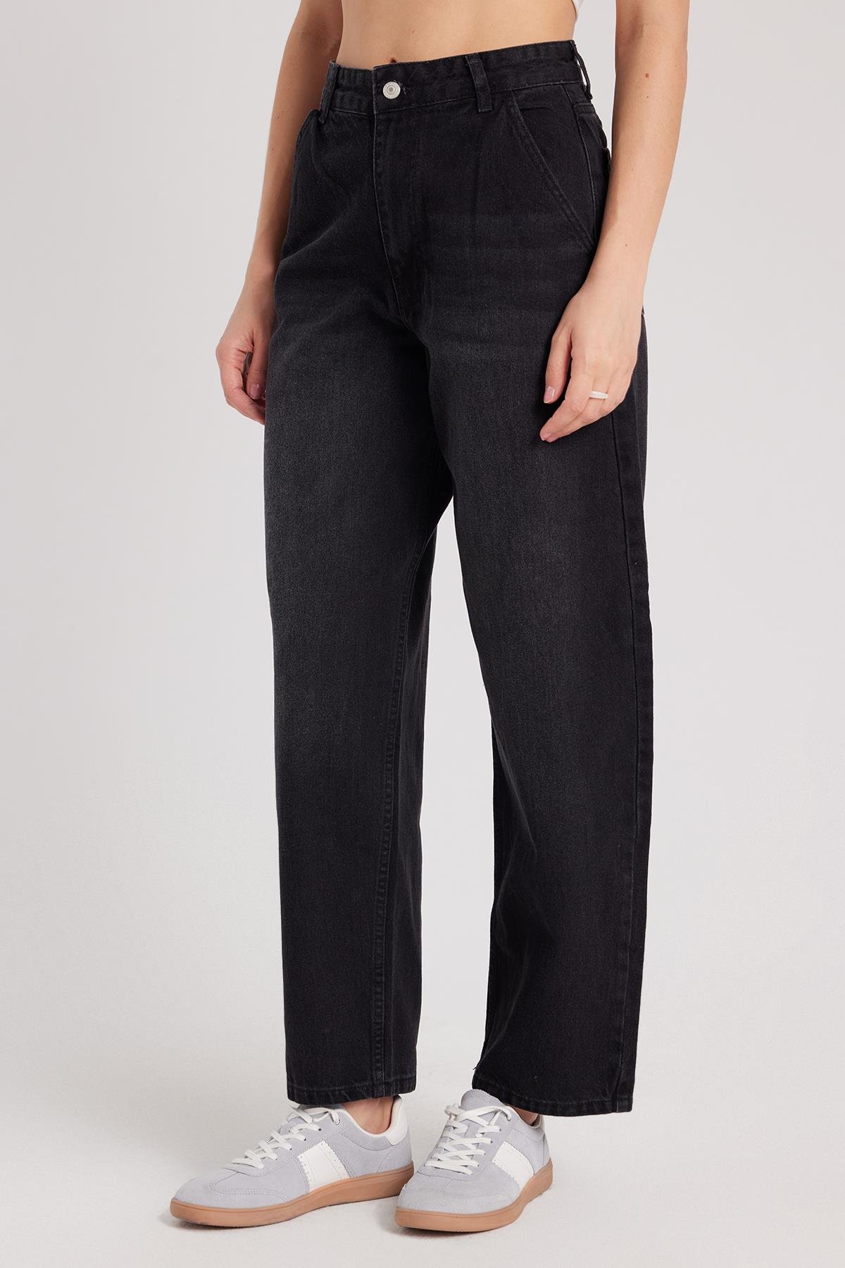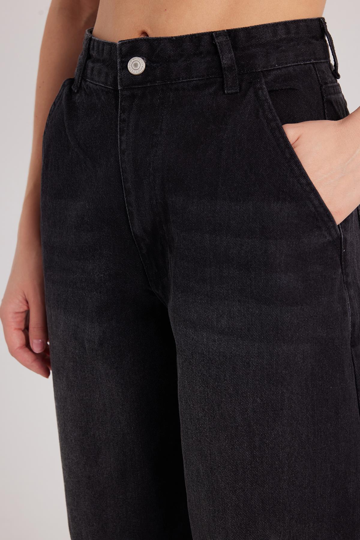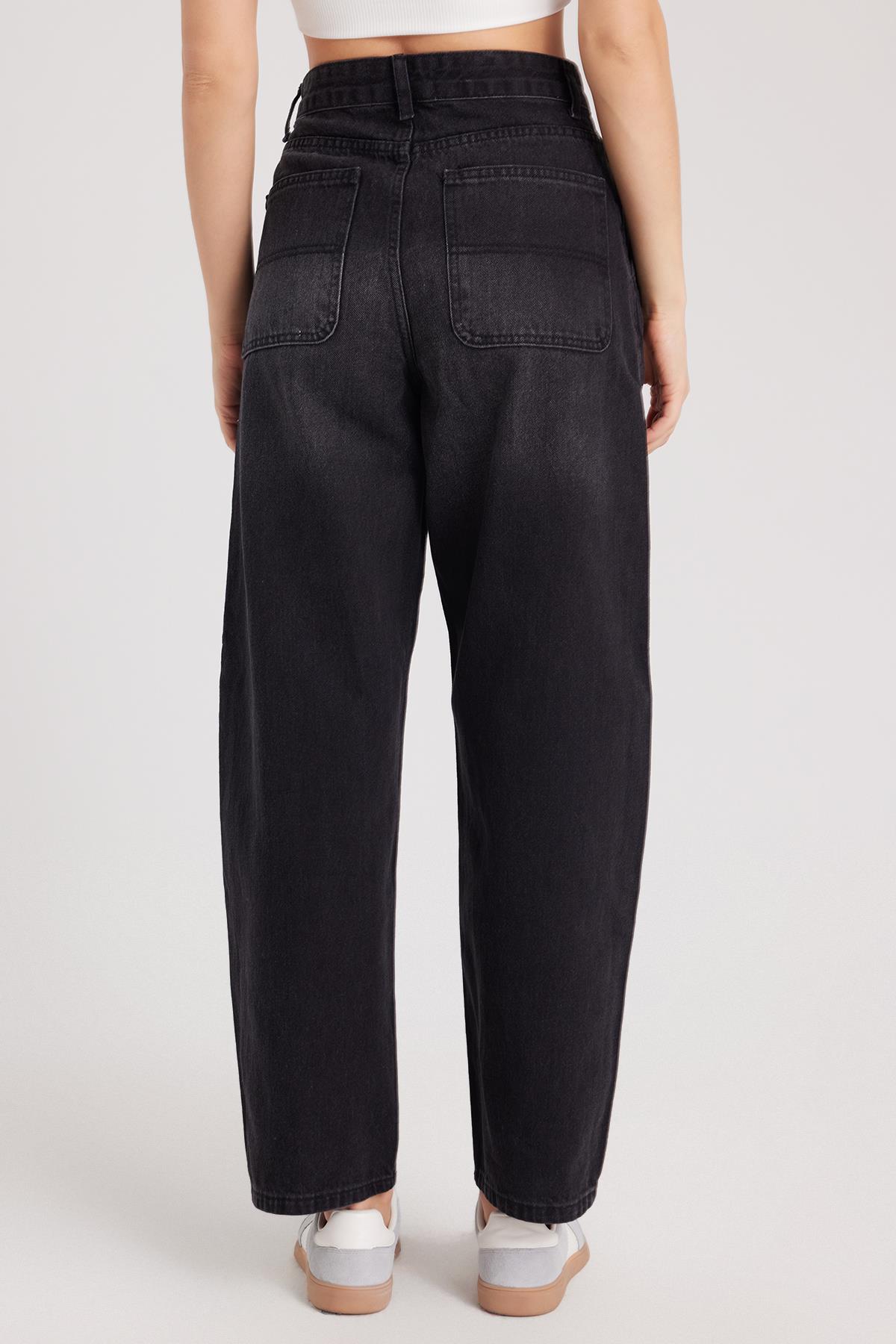 Kadın Regular Fit Yan Cepli Baggy Balon Siyah Jean Kot Pantolon (KDN25240-1011)
