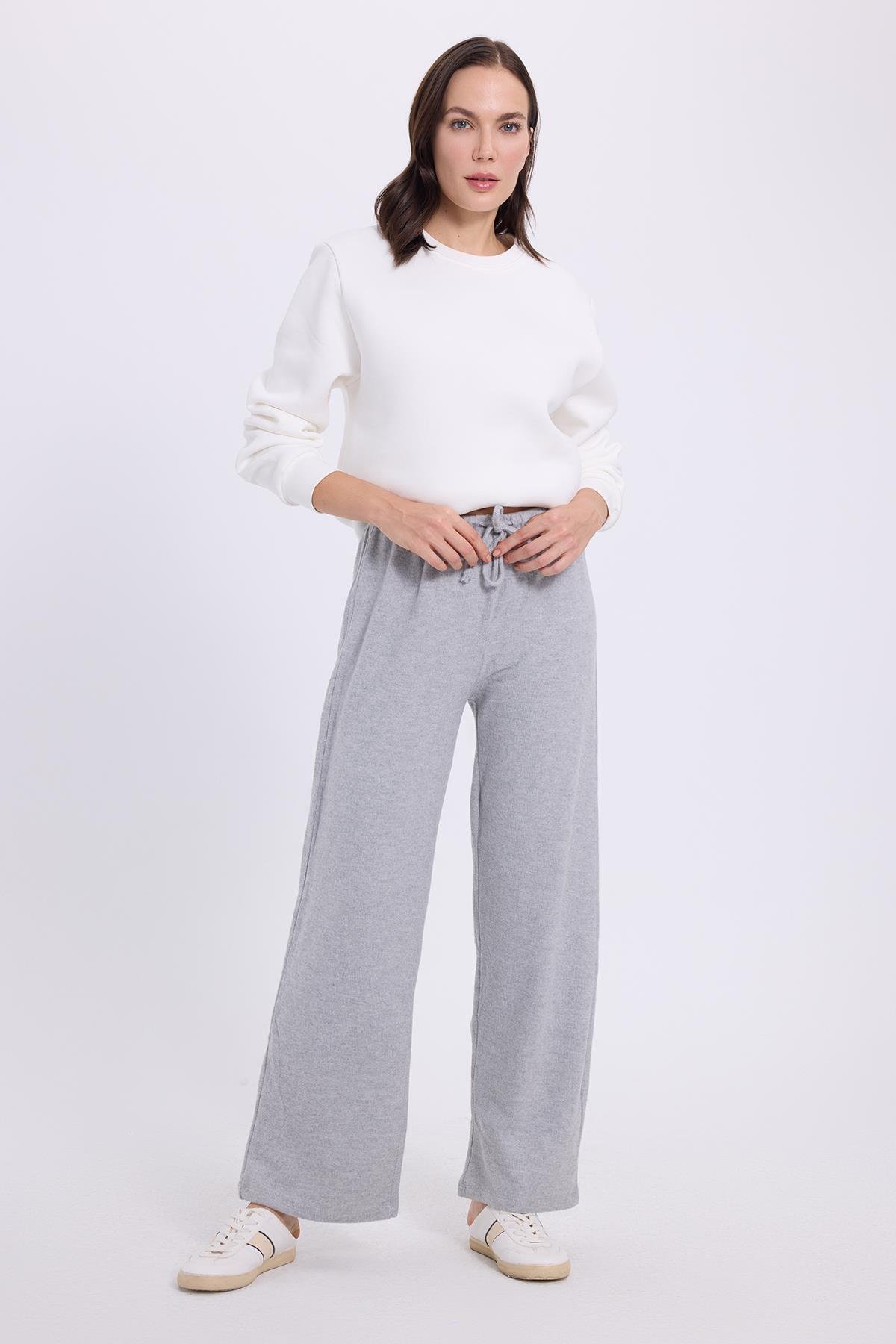 Kadın Relax Fit Rahat Kesim Beli Bağcıklı Geniş Paça Gri Pantolon (PN250058-076)
