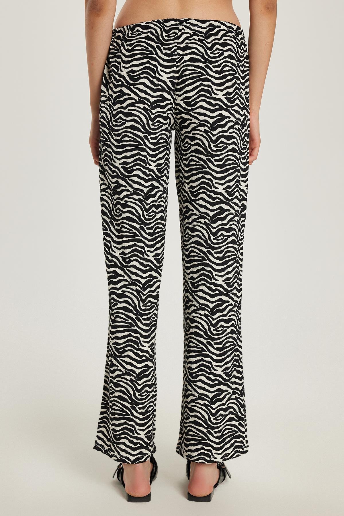 Kadın Relax Fit Rahat Kesim Beli Lastikli Bağlamalı Desenli Pantolon