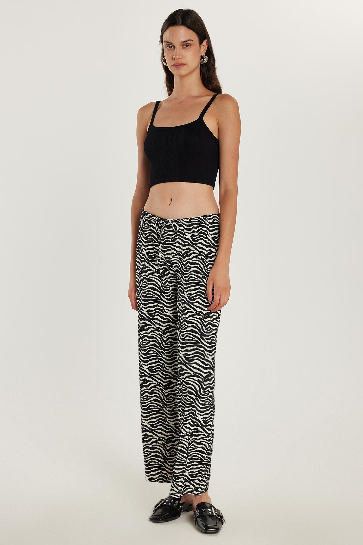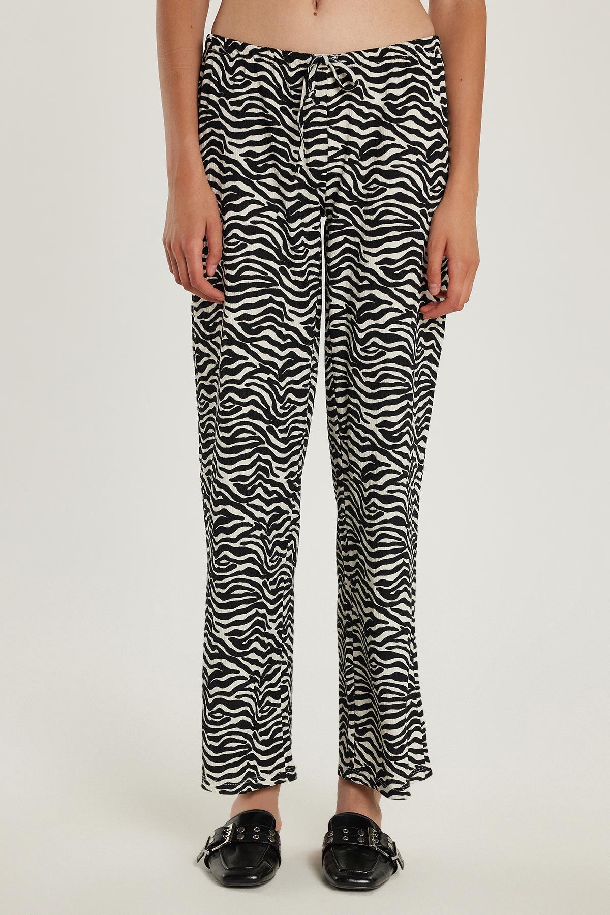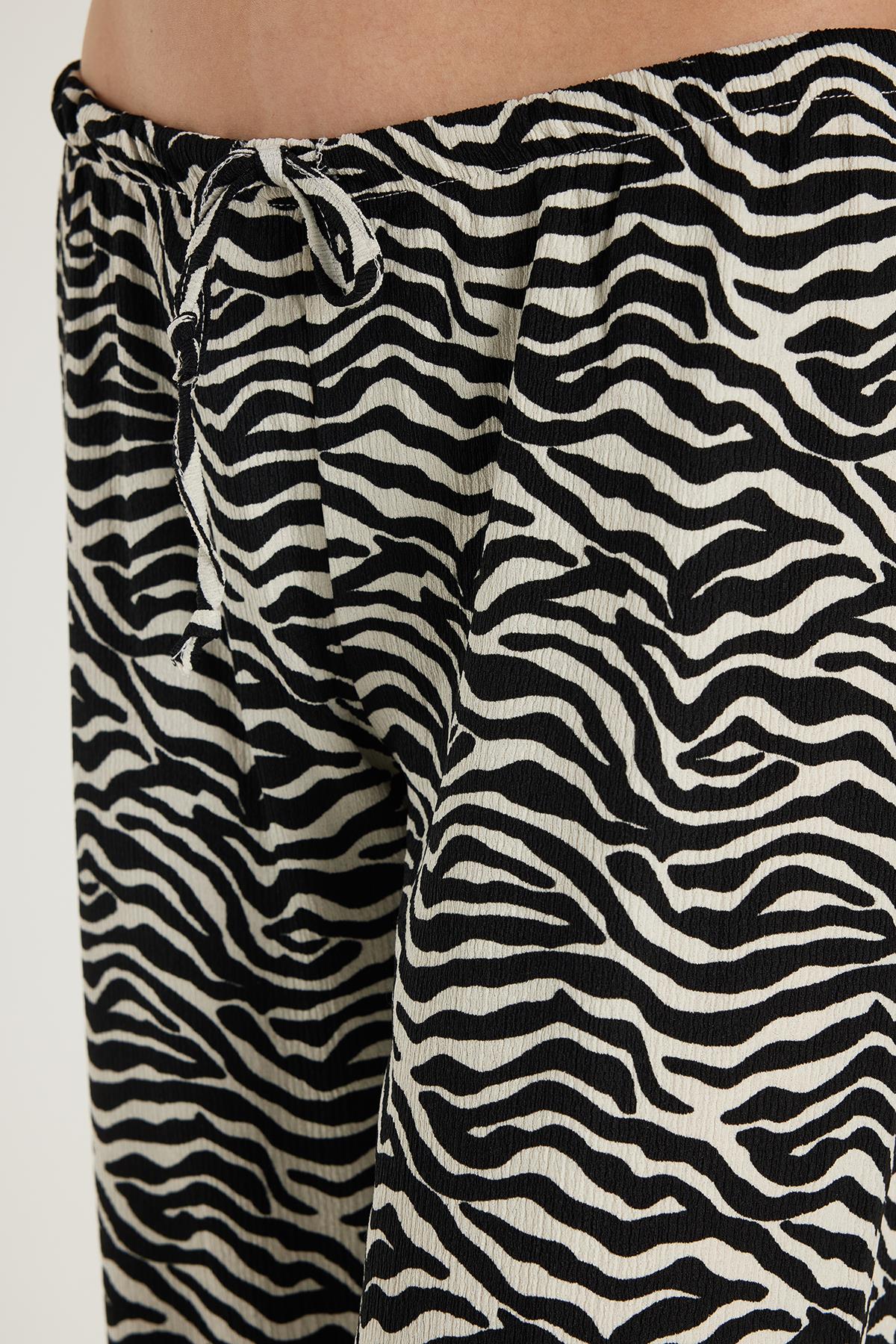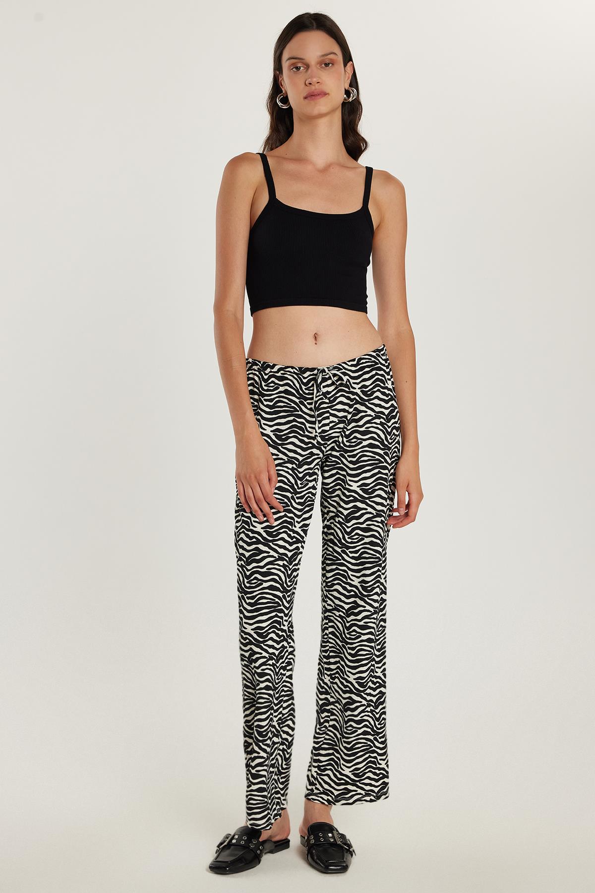 Kadın Relax Fit Rahat Kesim Beli Lastikli Bağlamalı Desenli Pantolon (KDN25169-151)