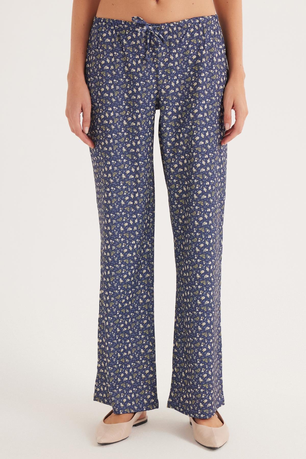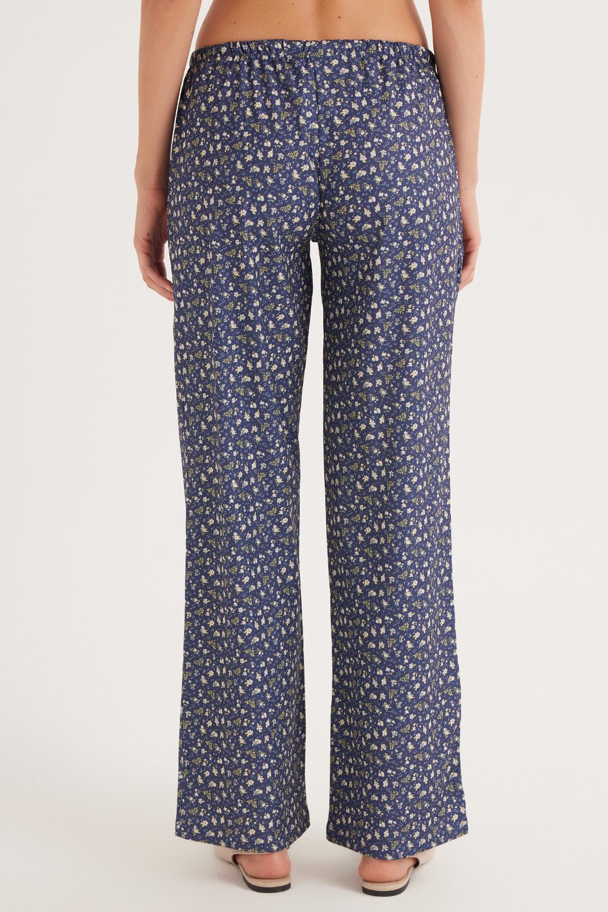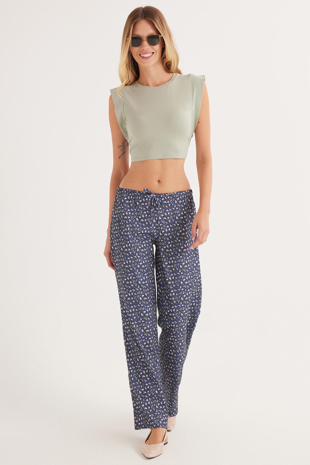 Kadın Relax Fit Rahat Kesim Beli Lastikli Bağlamalı Desenli Pantolon
