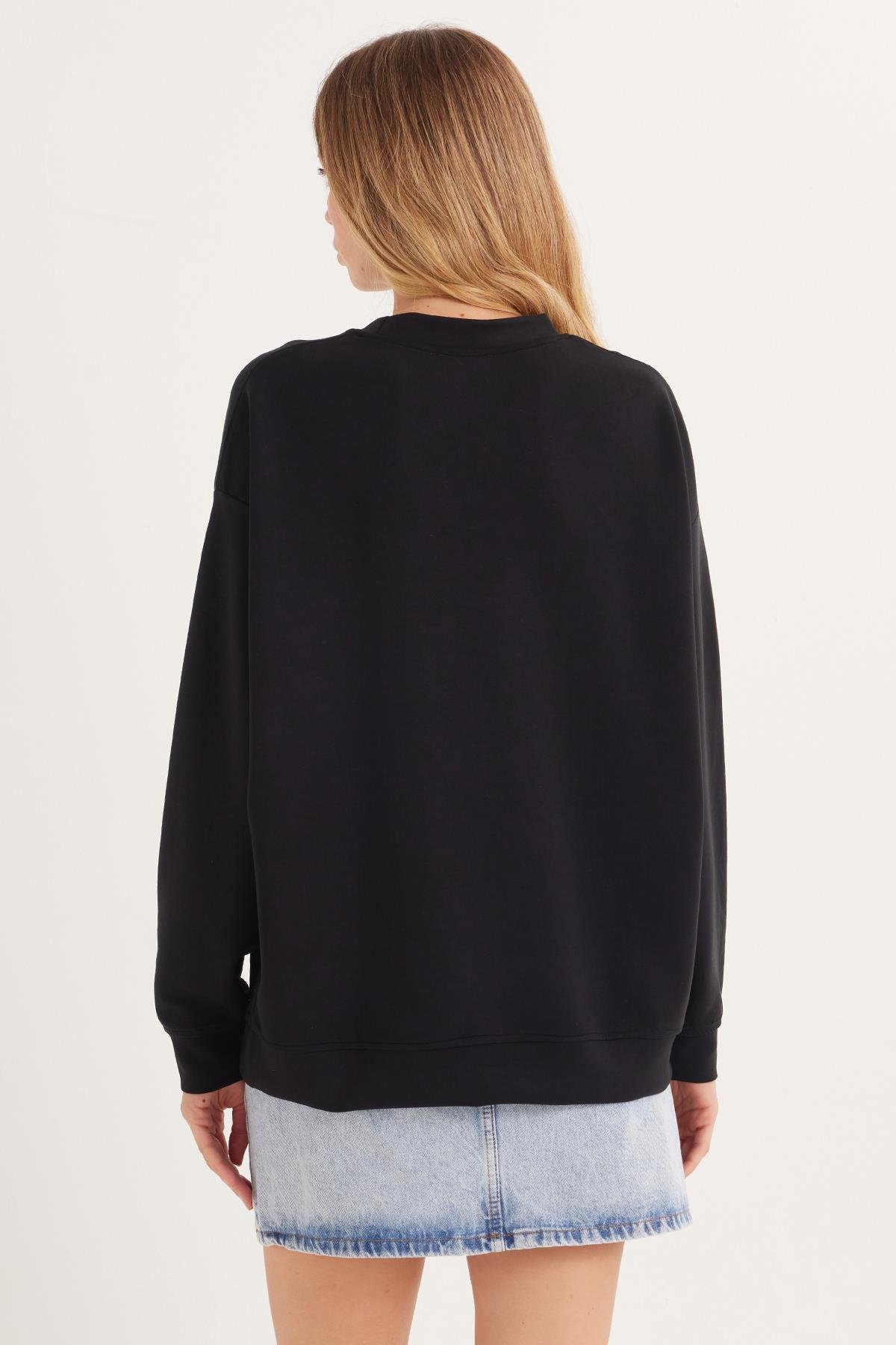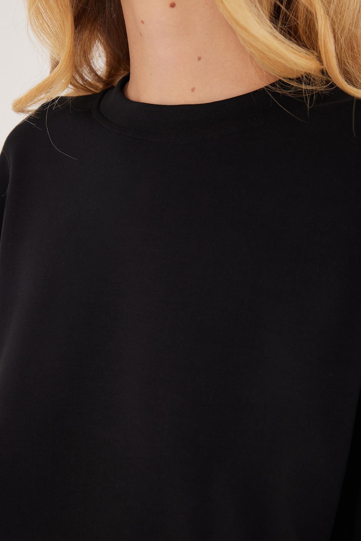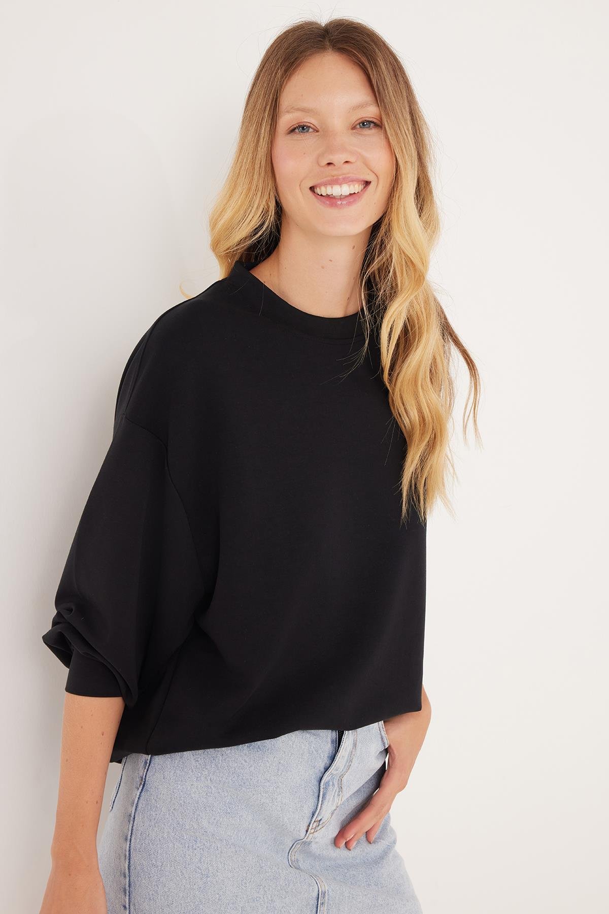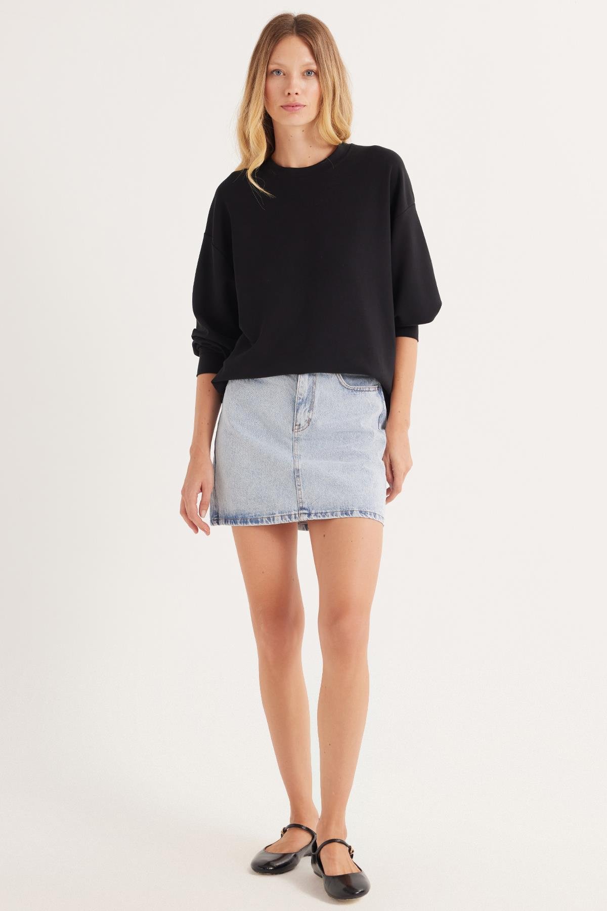 Kadın Relax Fit Rahat Kesim Bisiklet Yaka Siyah Sweatshirt
