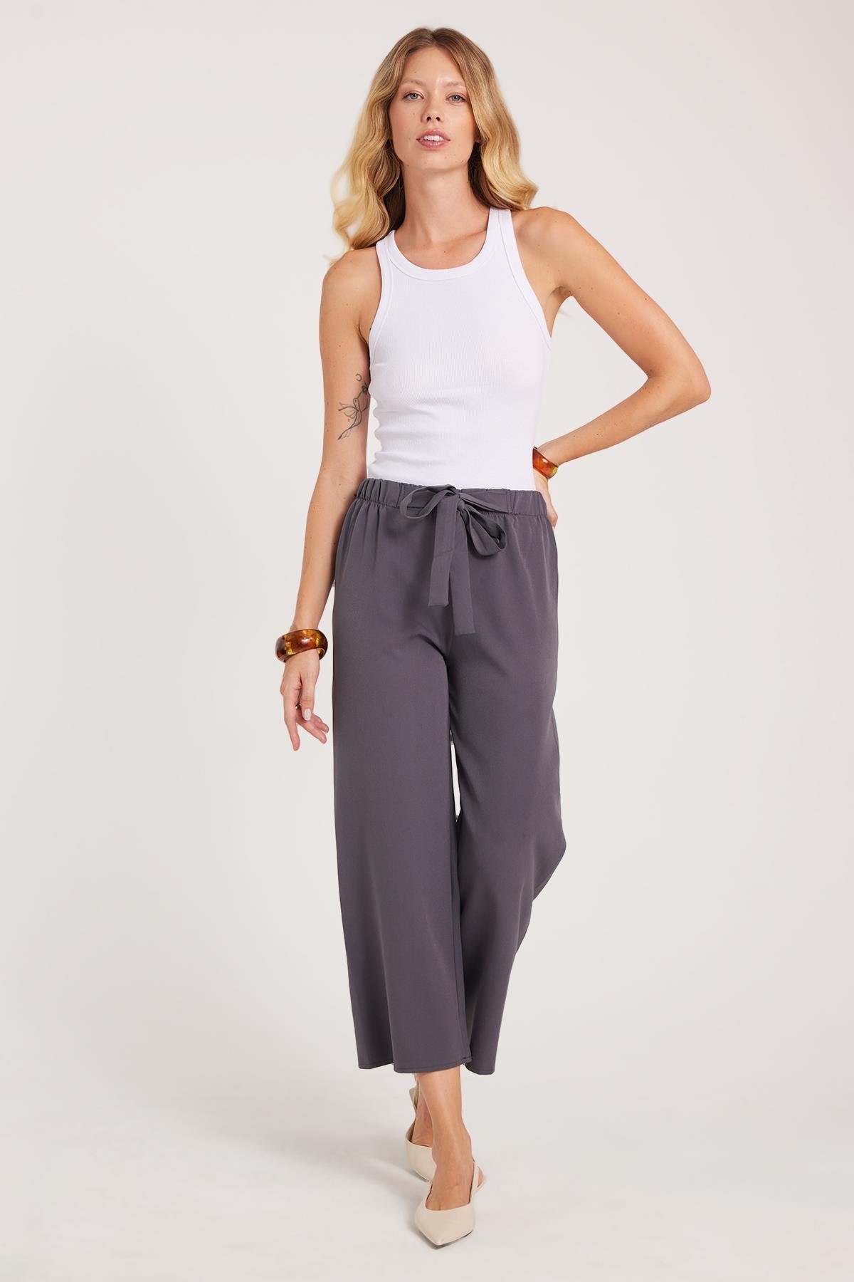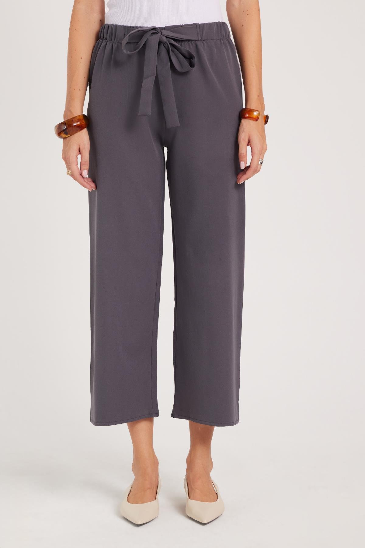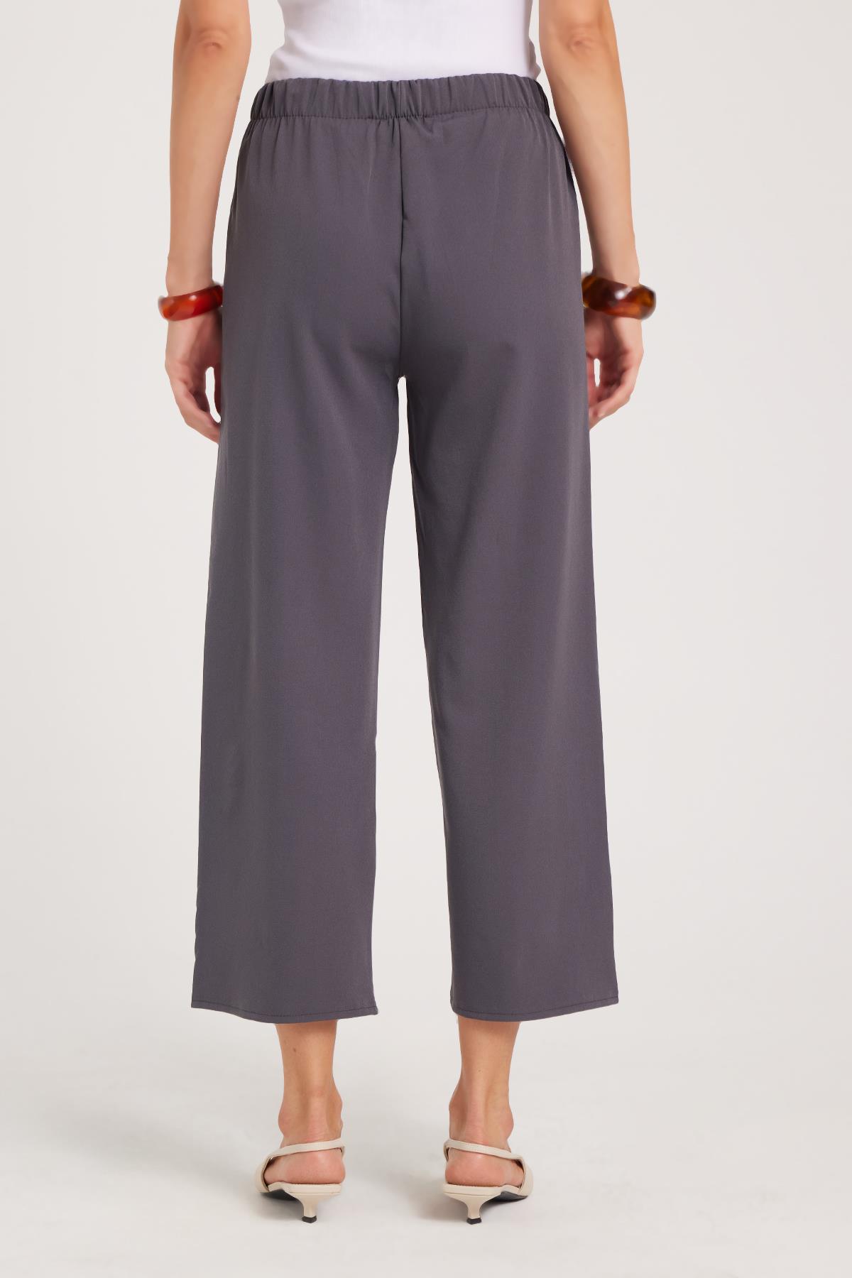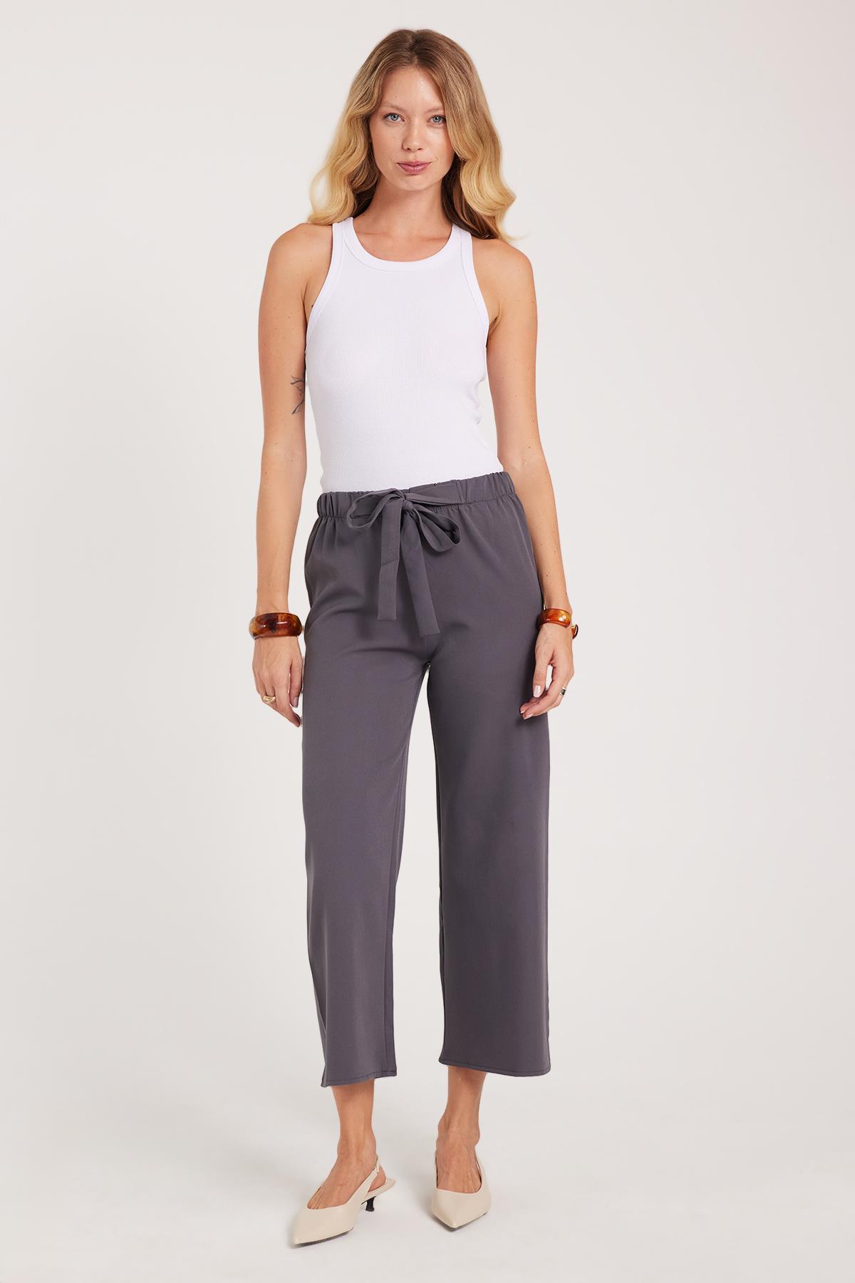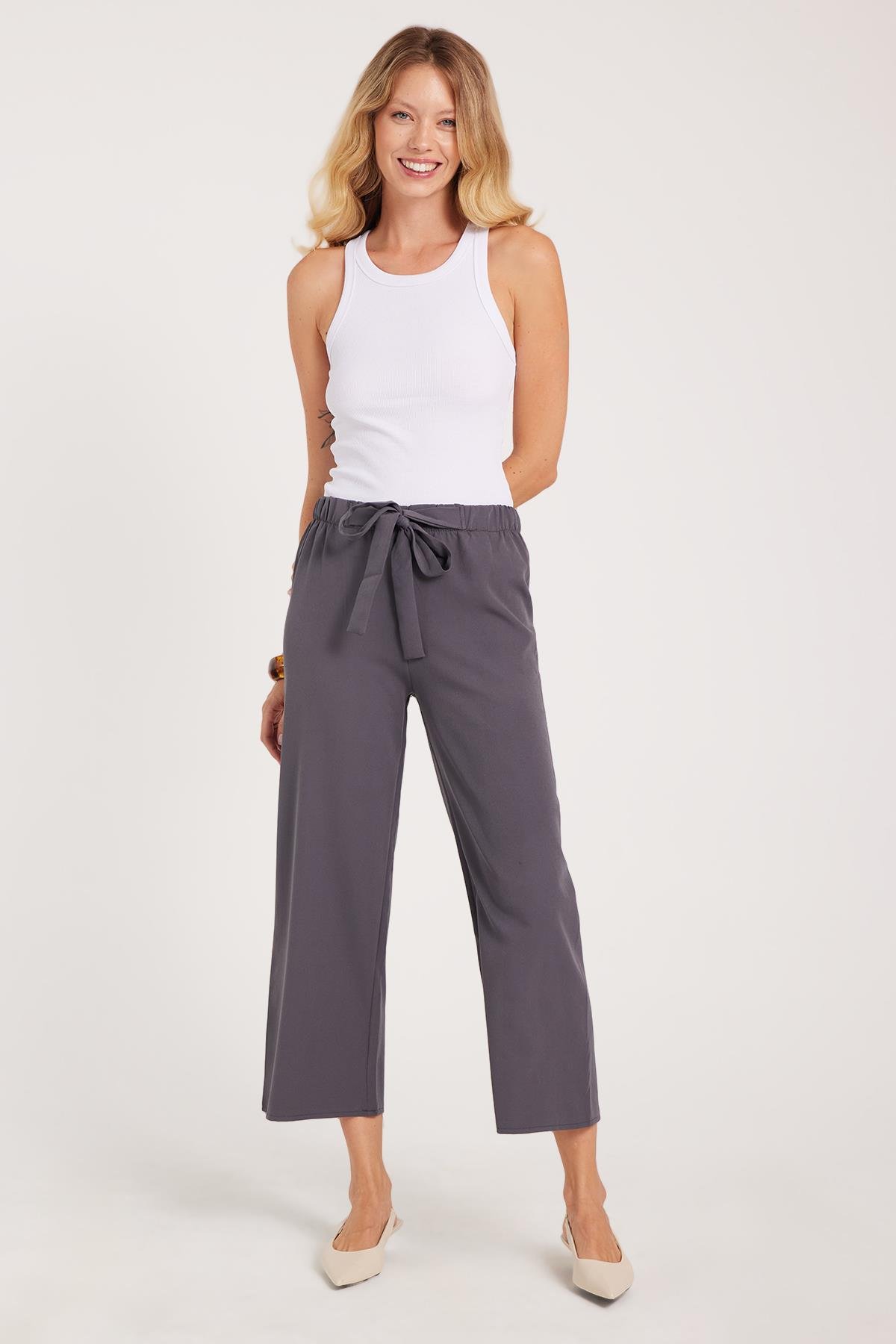 Kadın Relax Fit Rahat Kesim Lastikli Kuşak Bağlamalı Geniş Paça Antrasit Pantolon (PN250048-ANHCT)