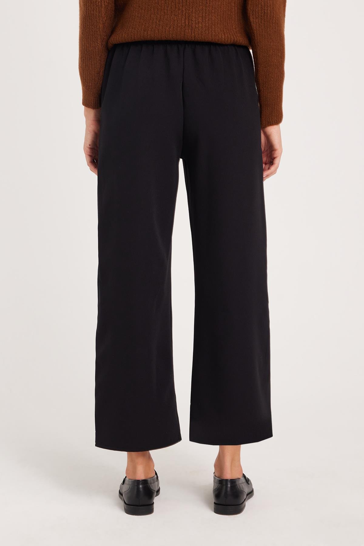 Kadın Relax Fit Rahat Kesim Lastikli Kuşak Bağlamalı Geniş Paça Siyah Pantolon (PN250048-02)