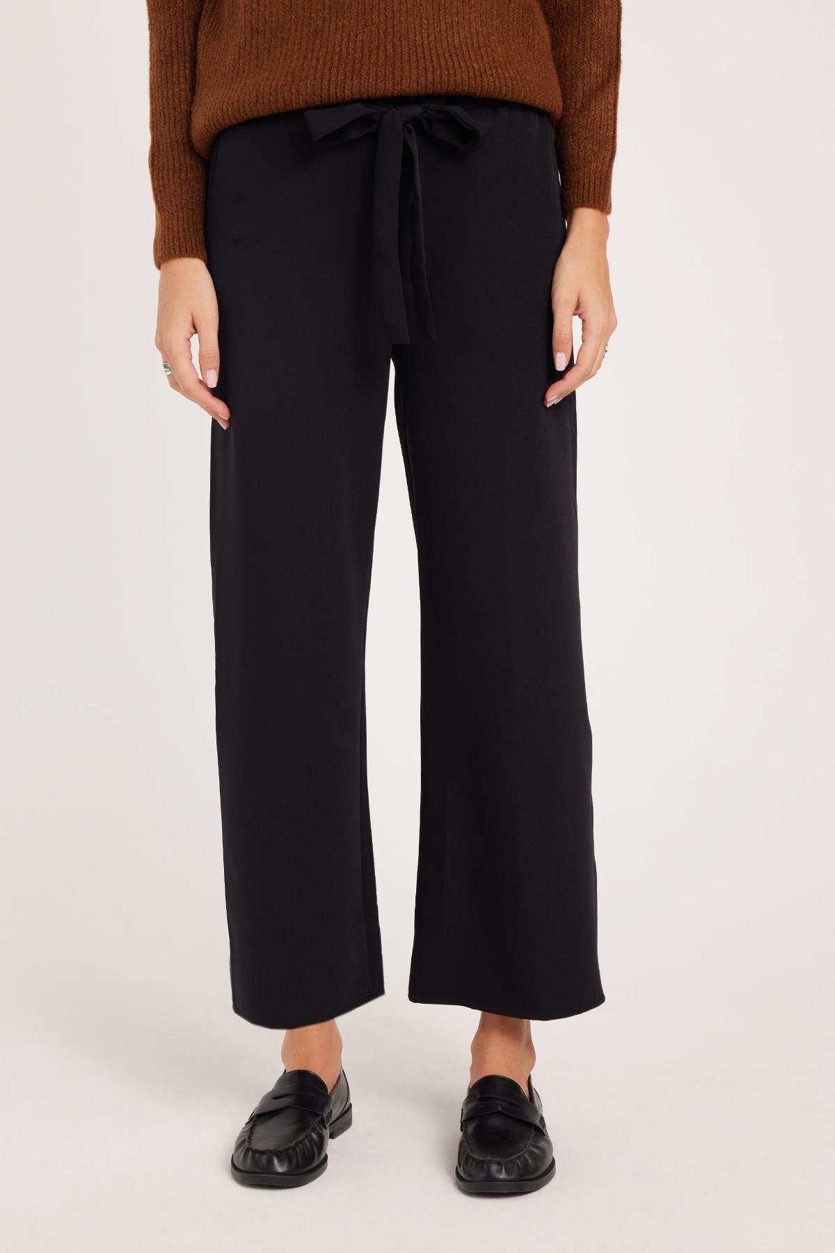 Kadın Relax Fit Rahat Kesim Lastikli Kuşak Bağlamalı Geniş Paça Siyah Pantolon