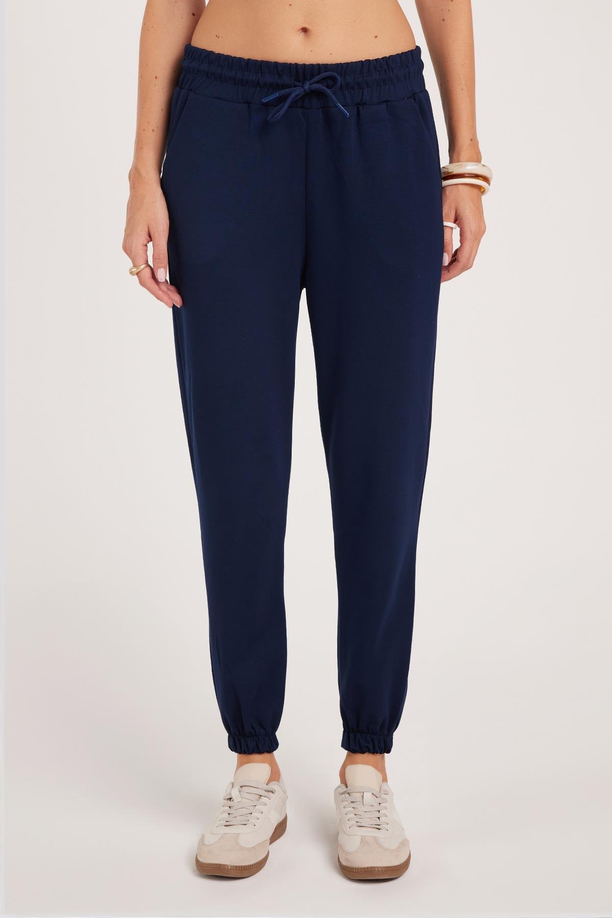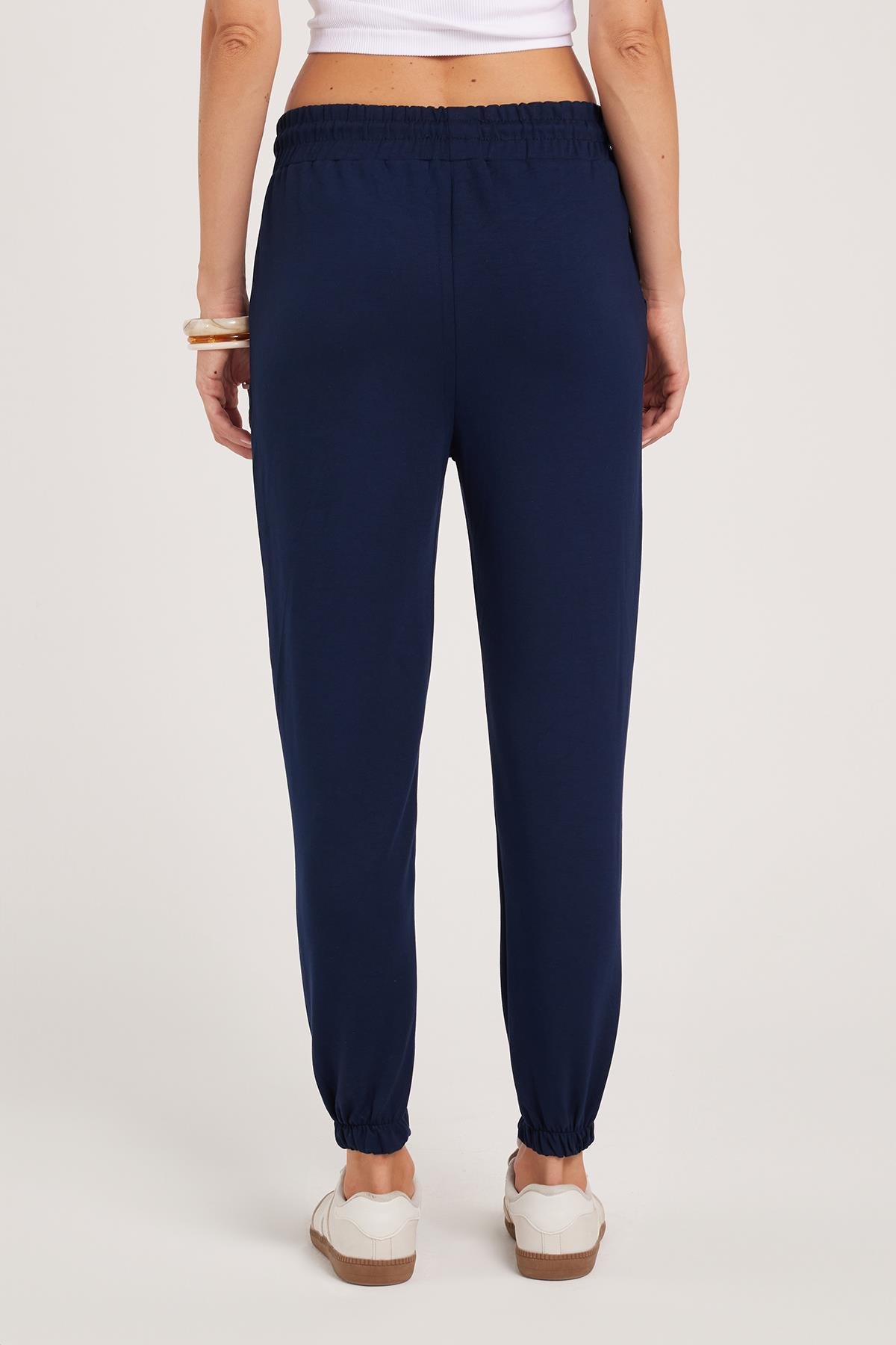 Kadın Relax Fit Rahat Kesim Modal Kumaş Beli Bağlamalı Lastikli Jogger Lacivert Pantolon