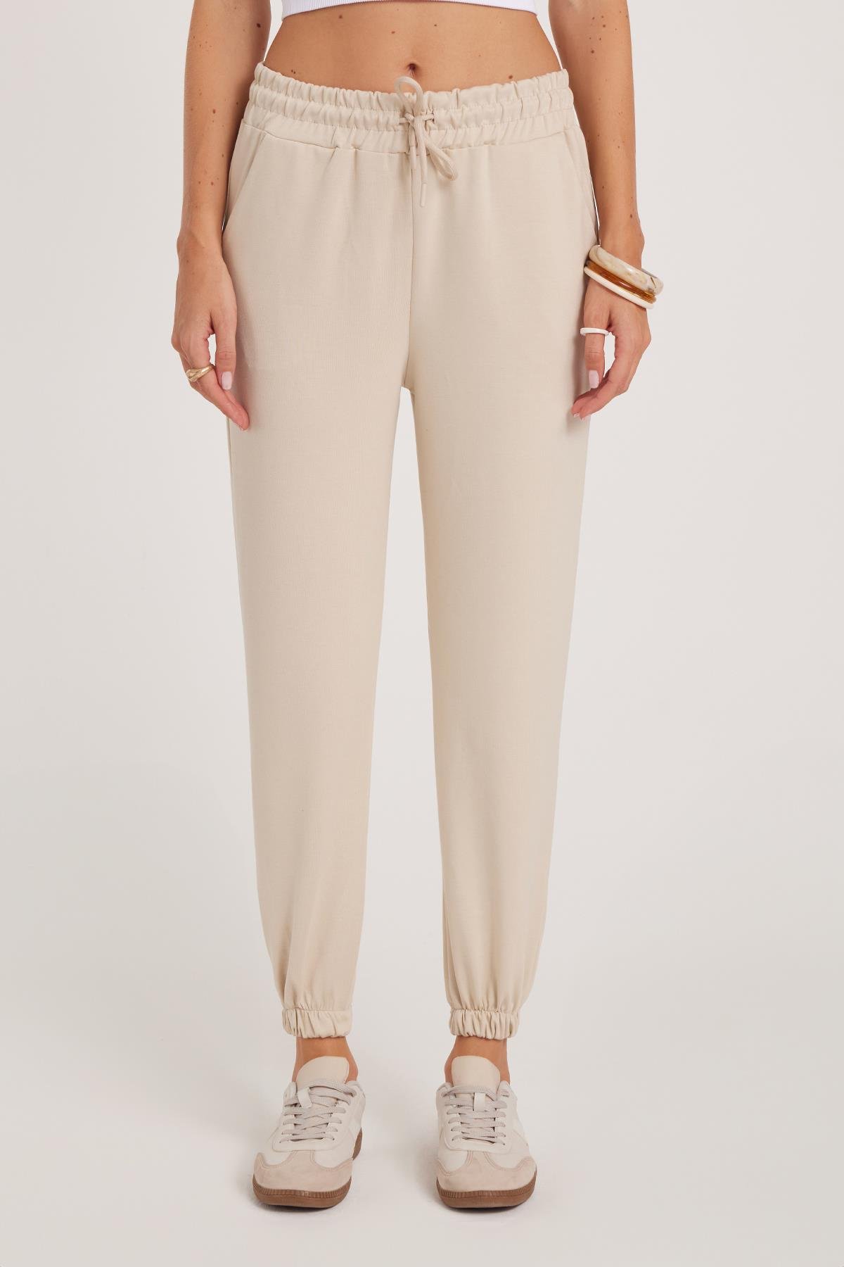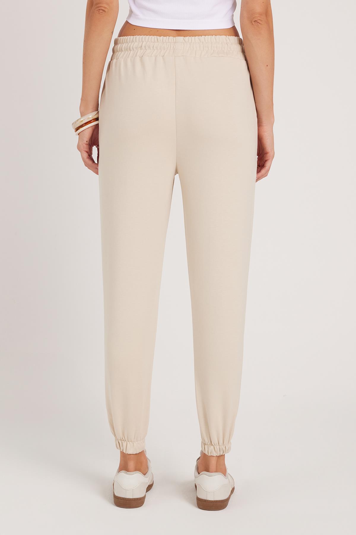 Kadın Relax Fit Rahat Kesim Modal Kumaş Beli Bağlamalı Lastikli Jogger Taş Pantolon (PN250051-STN)