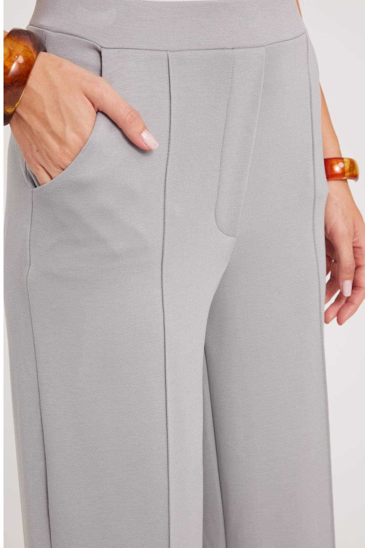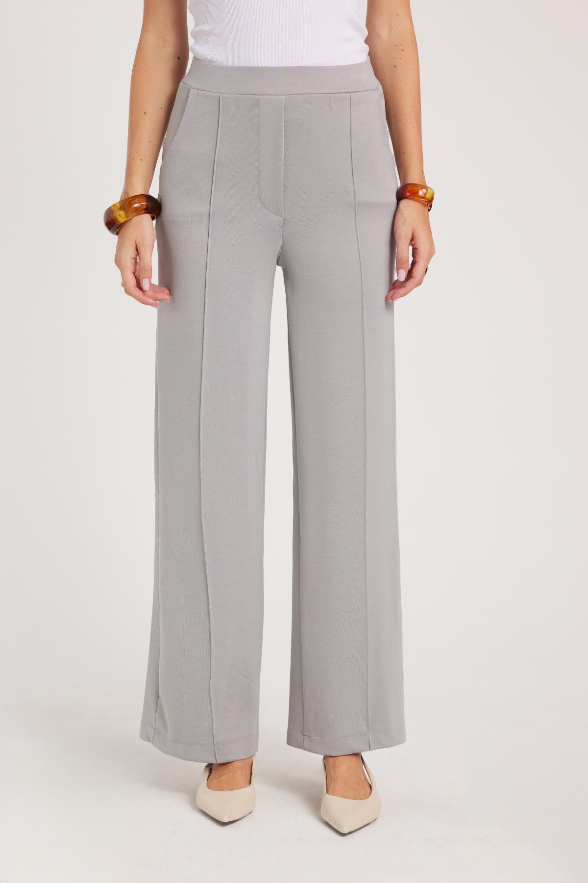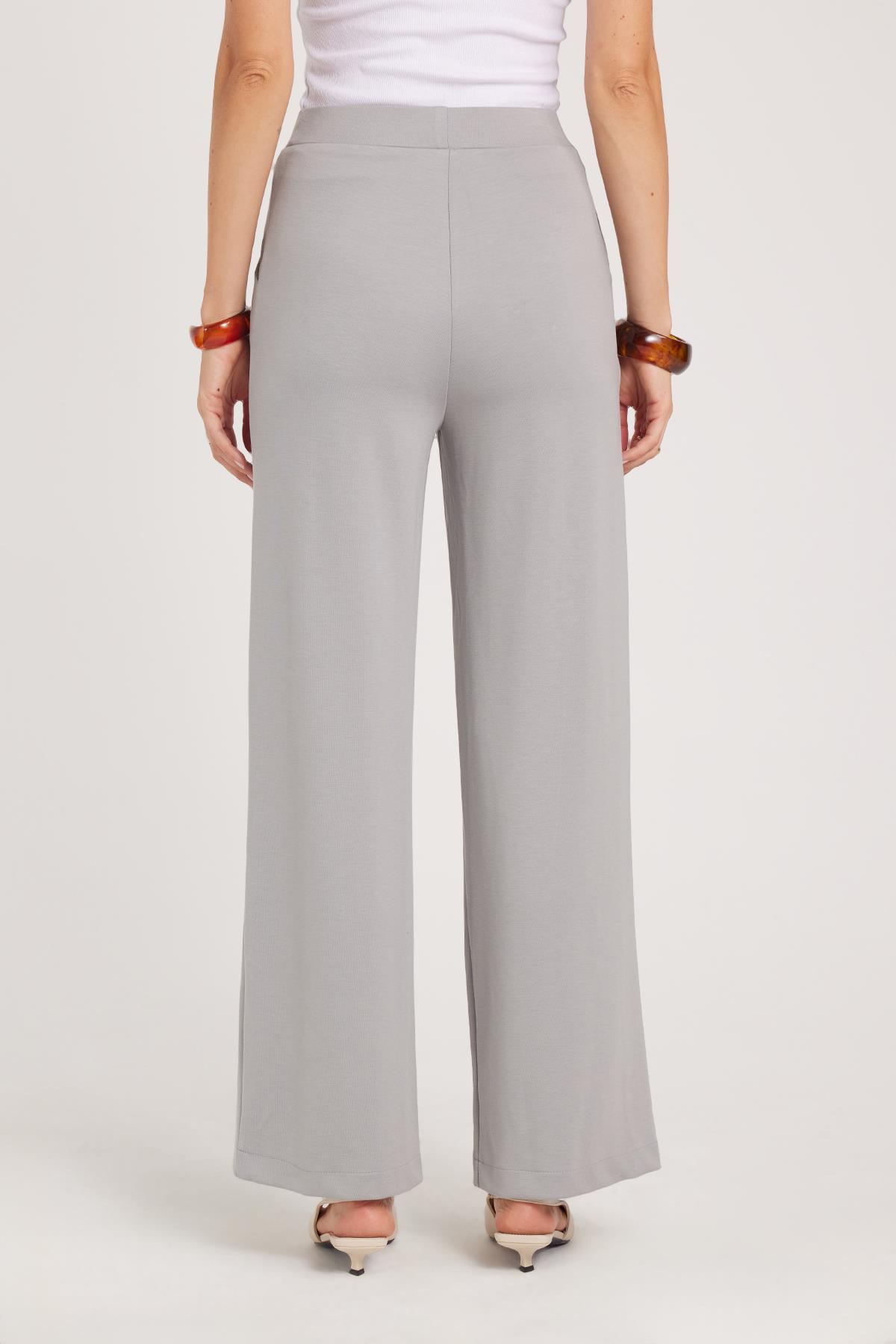 Kadın Relax Fit Rahat Kesim Modal Kumaş Yüksel Bel Geniş Paça Gri Pantolon (PN250052-11)