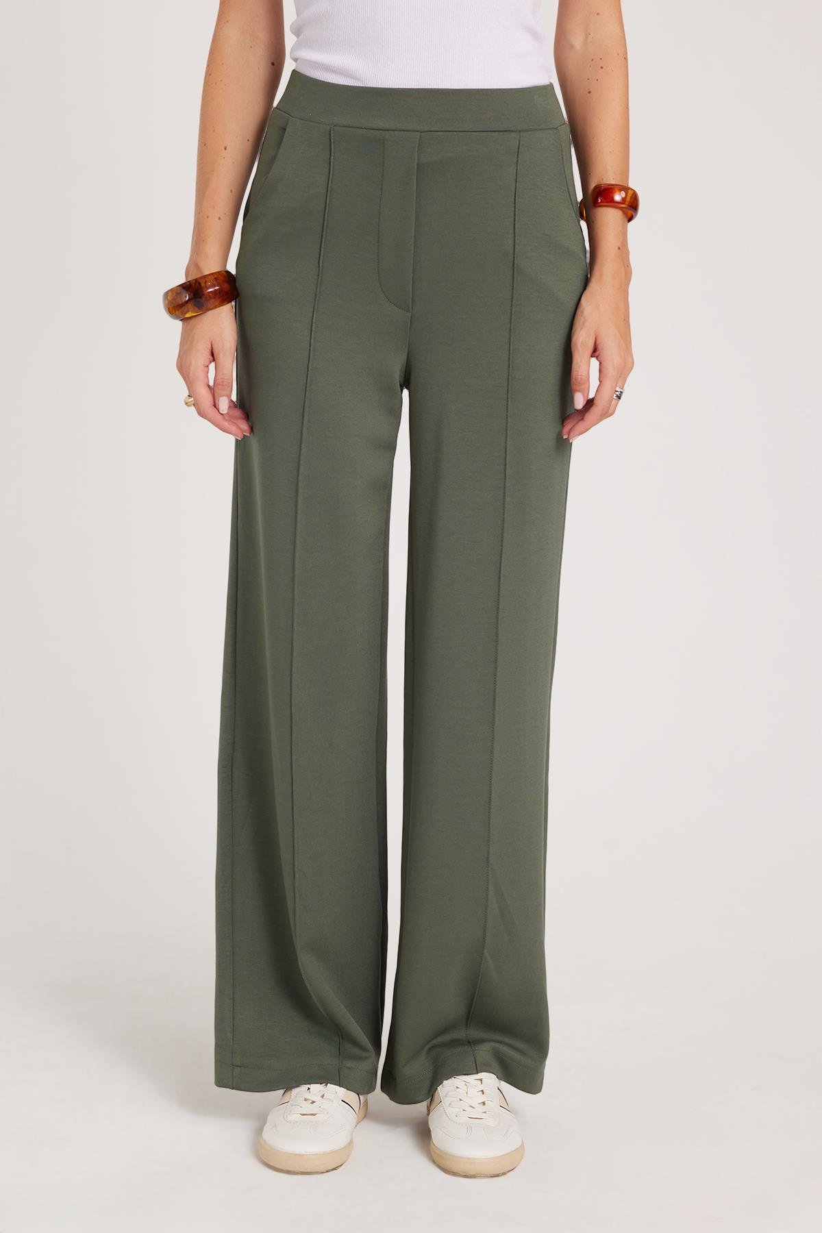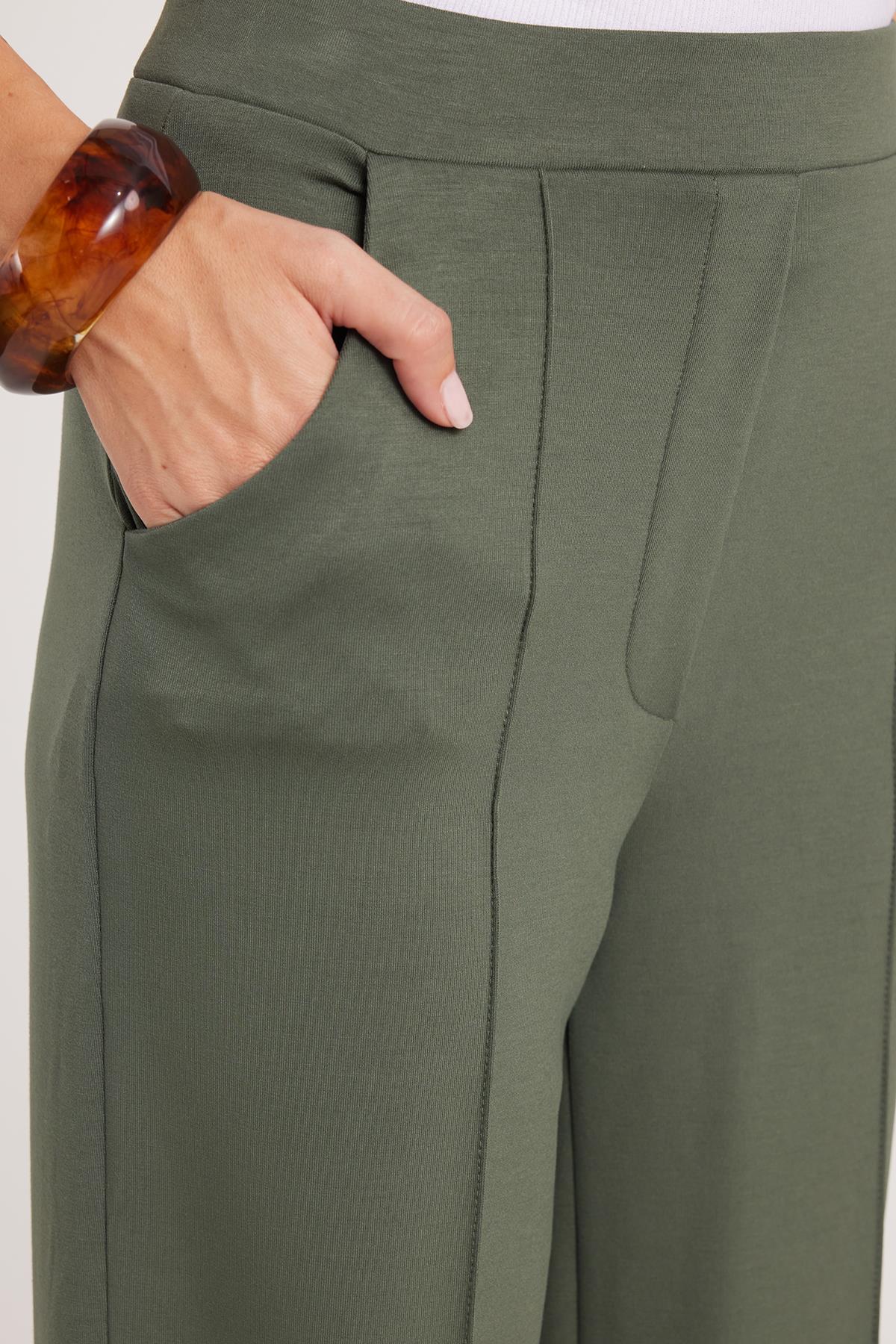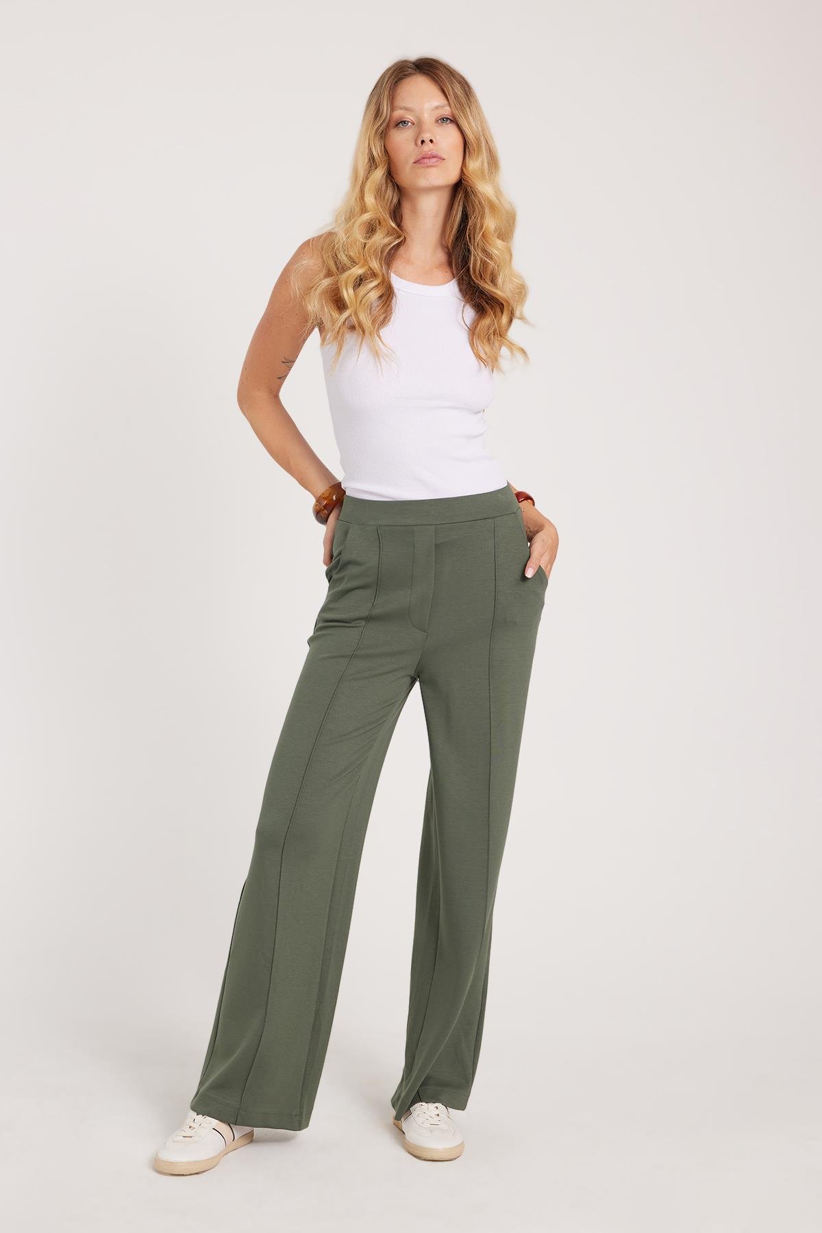 Kadın Relax Fit Rahat Kesim Modal Kumaş Yüksel Bel Geniş Paça Haki Pantolon