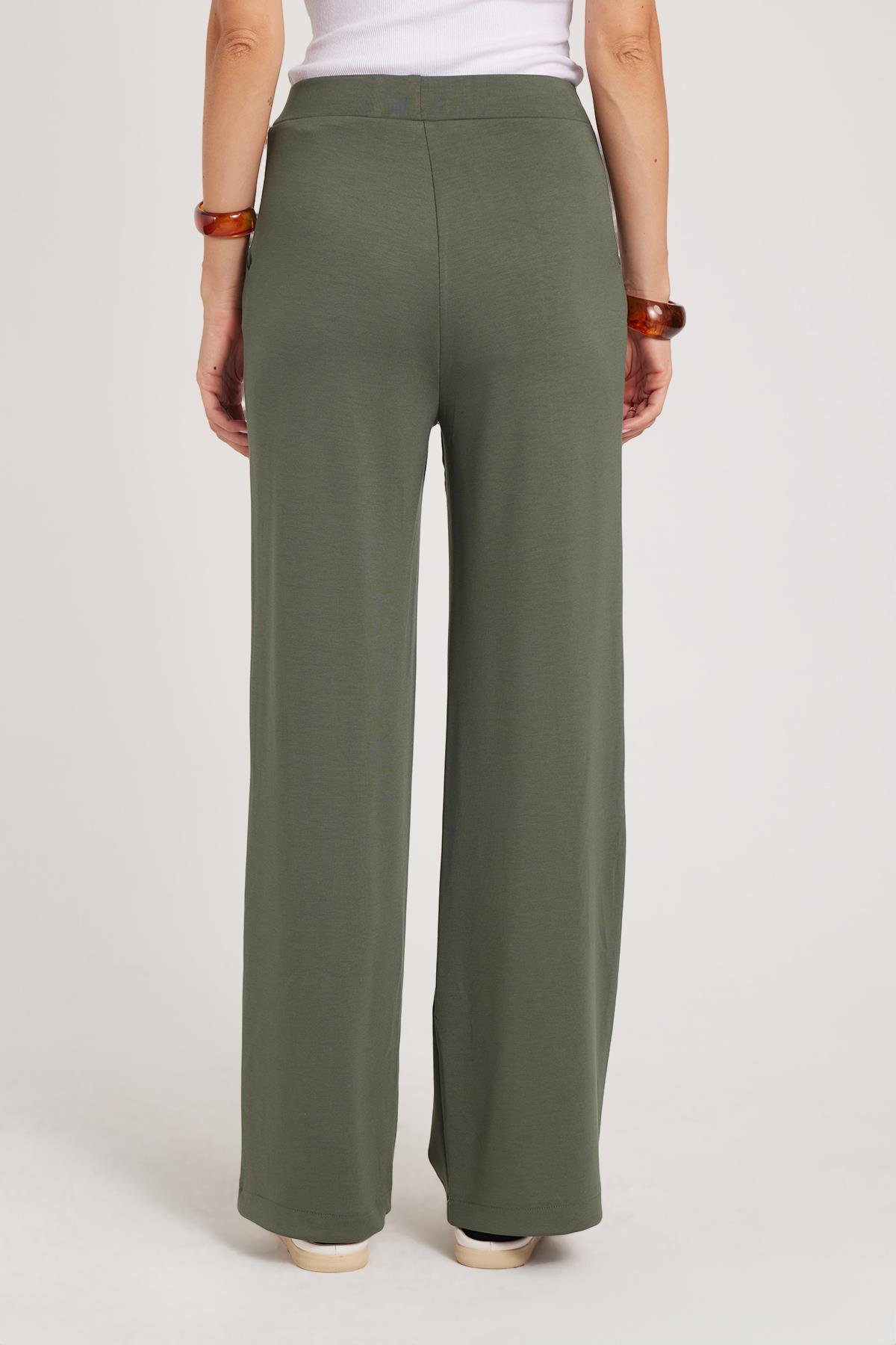 Kadın Relax Fit Rahat Kesim Modal Kumaş Yüksel Bel Geniş Paça Haki Pantolon (PN250052-48)