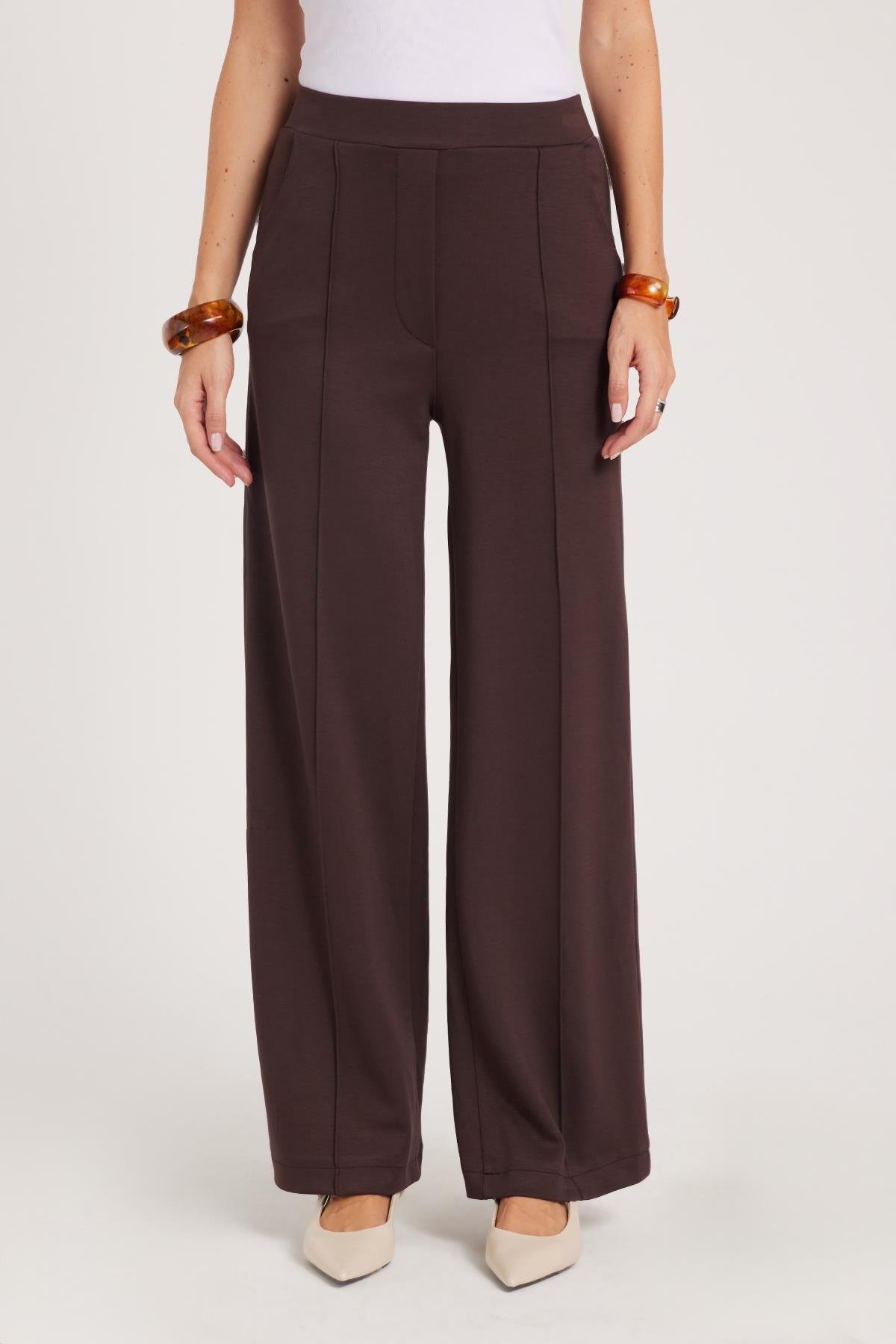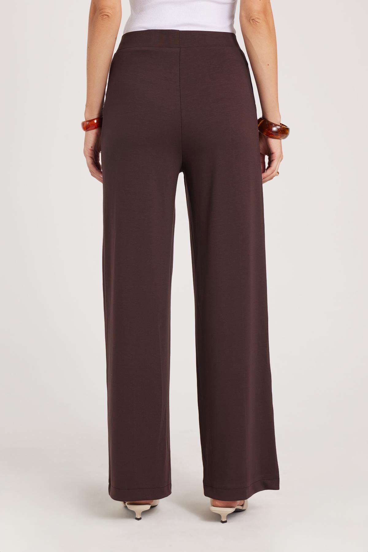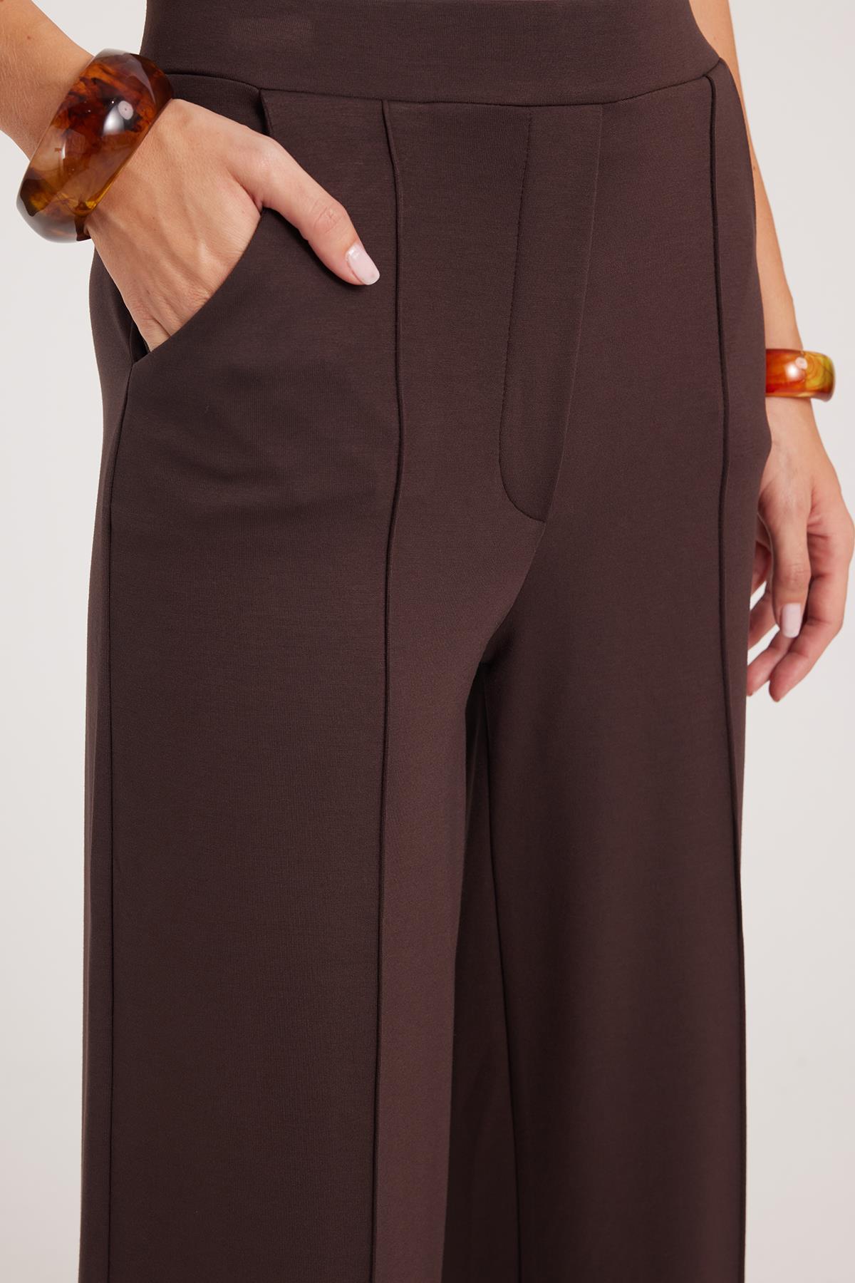Kadın Relax Fit Rahat Kesim Modal Kumaş Yüksel Bel Geniş Paça Kahverengi Pantolon (PN250052-07)