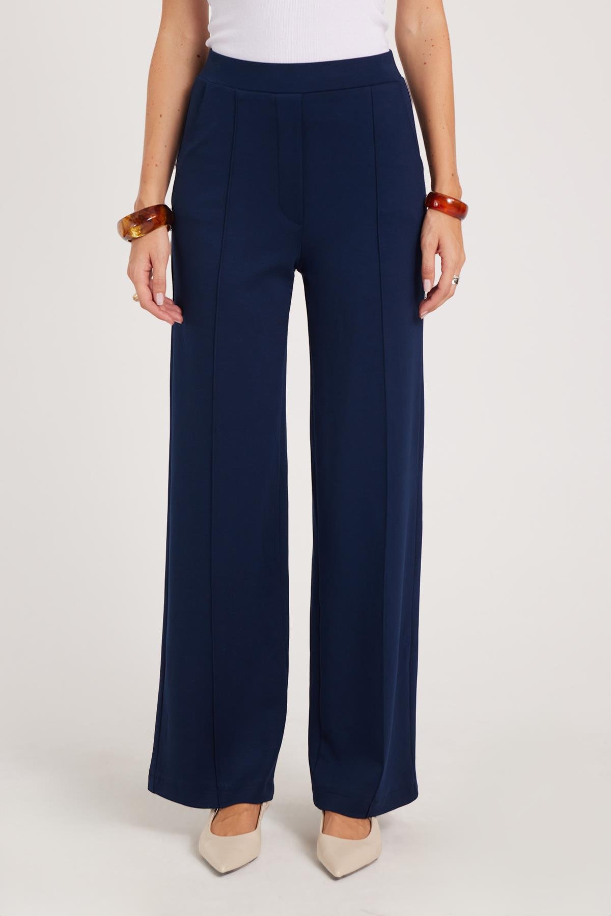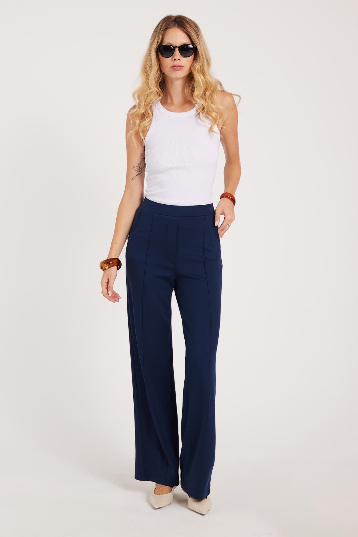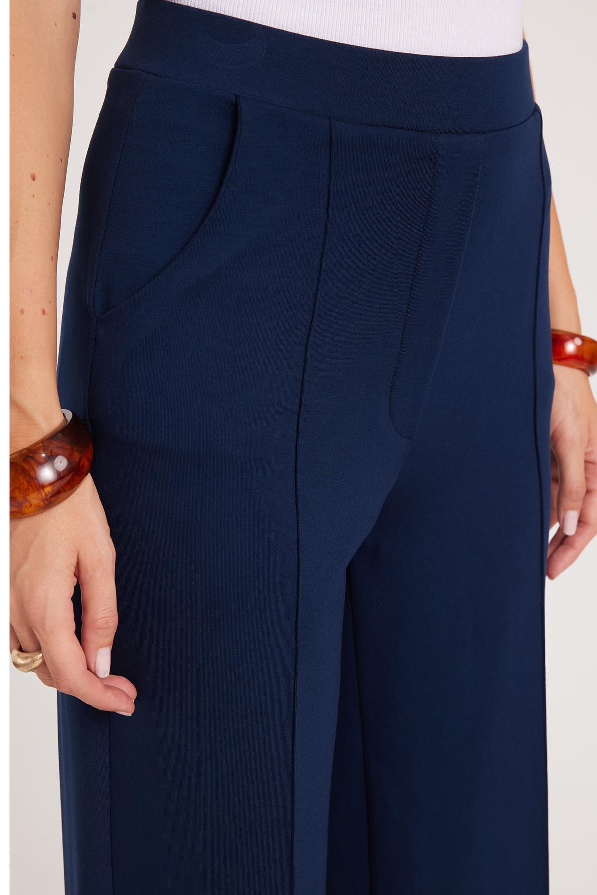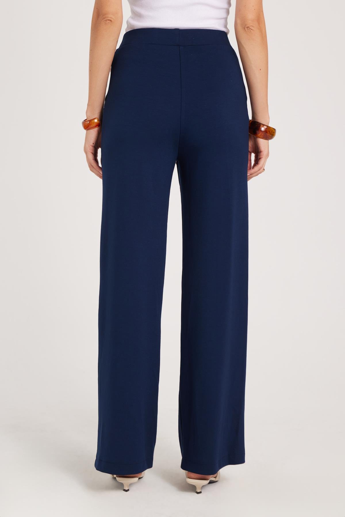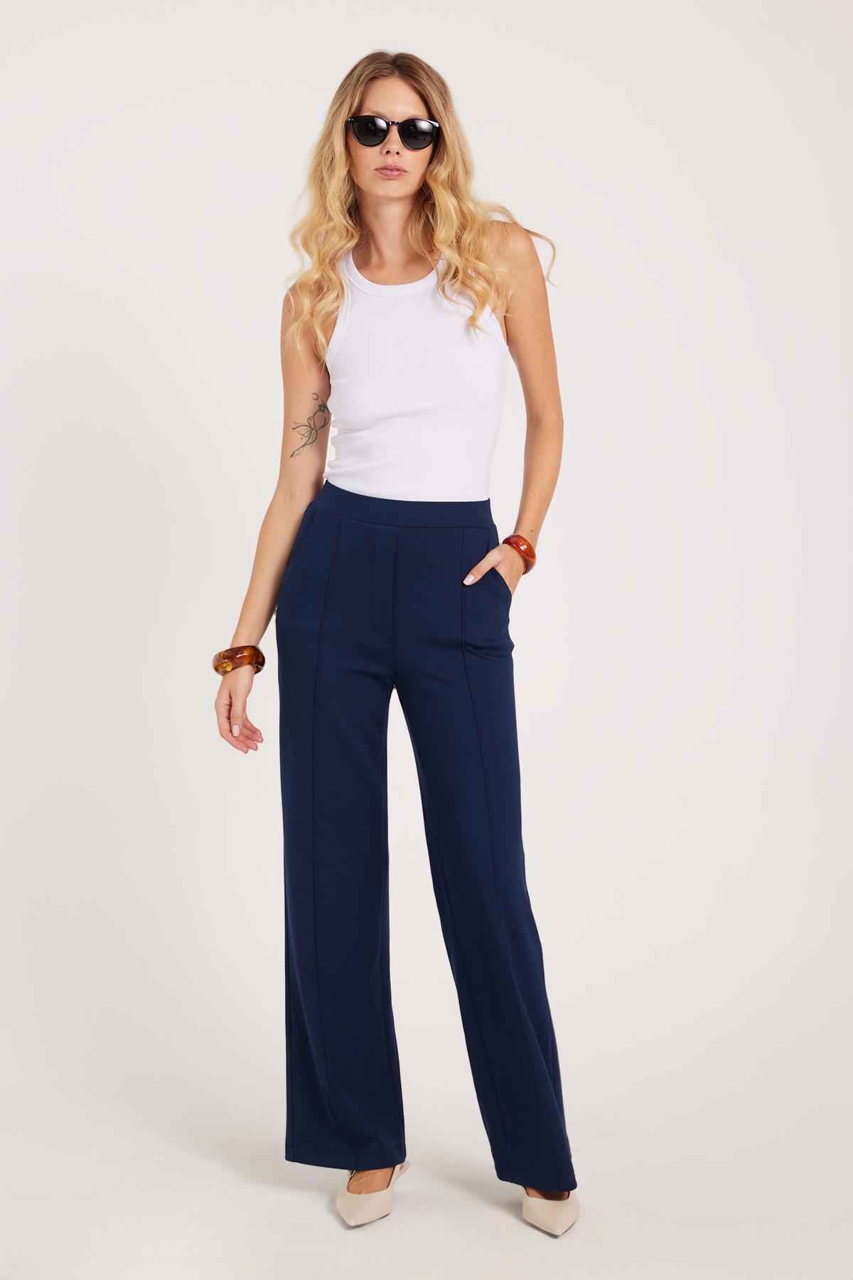 Kadın Relax Fit Rahat Kesim Modal Kumaş Yüksel Bel Geniş Paça Lacivert Pantolon