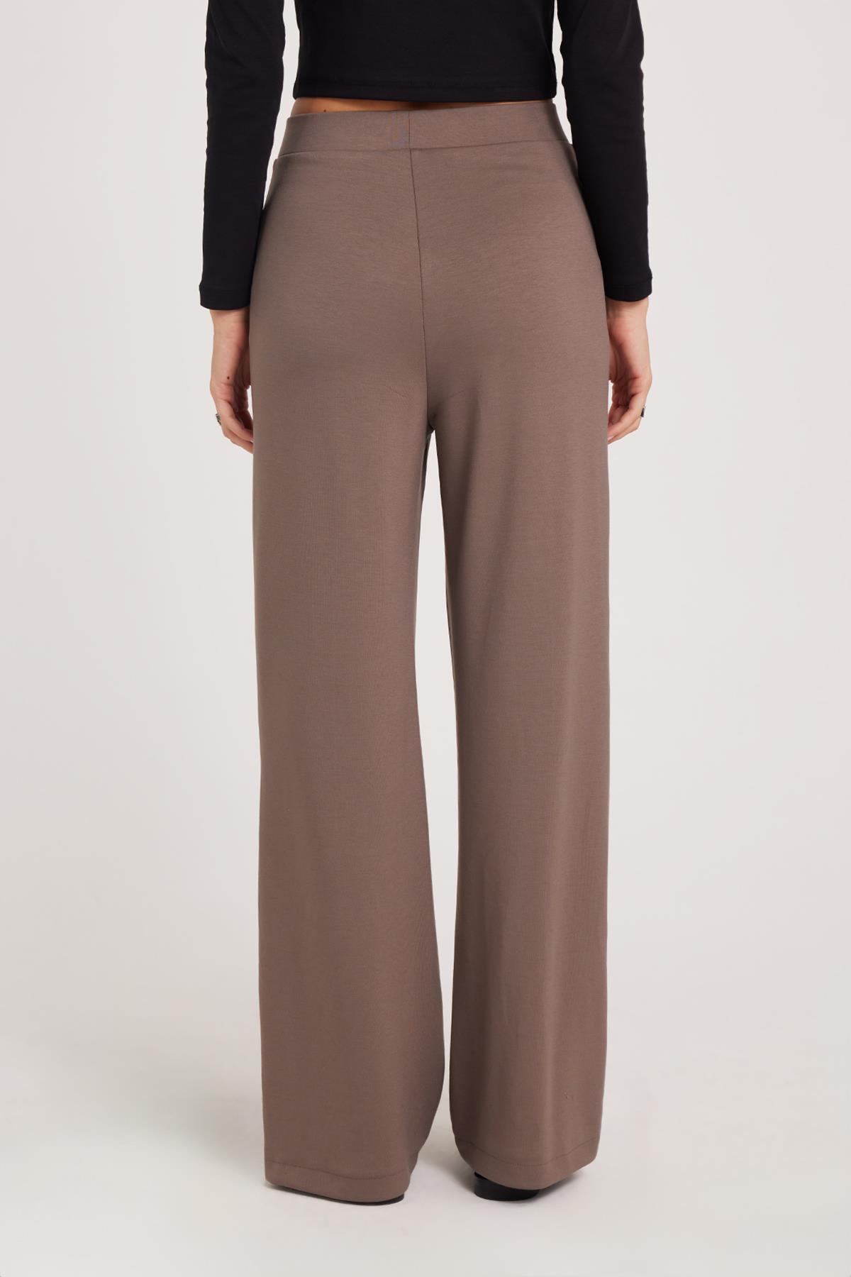 Kadın Relax Fit Rahat Kesim Modal Kumaş Yüksel Bel Geniş Paça Açık Kahve Pantolon (PN250052-L39)