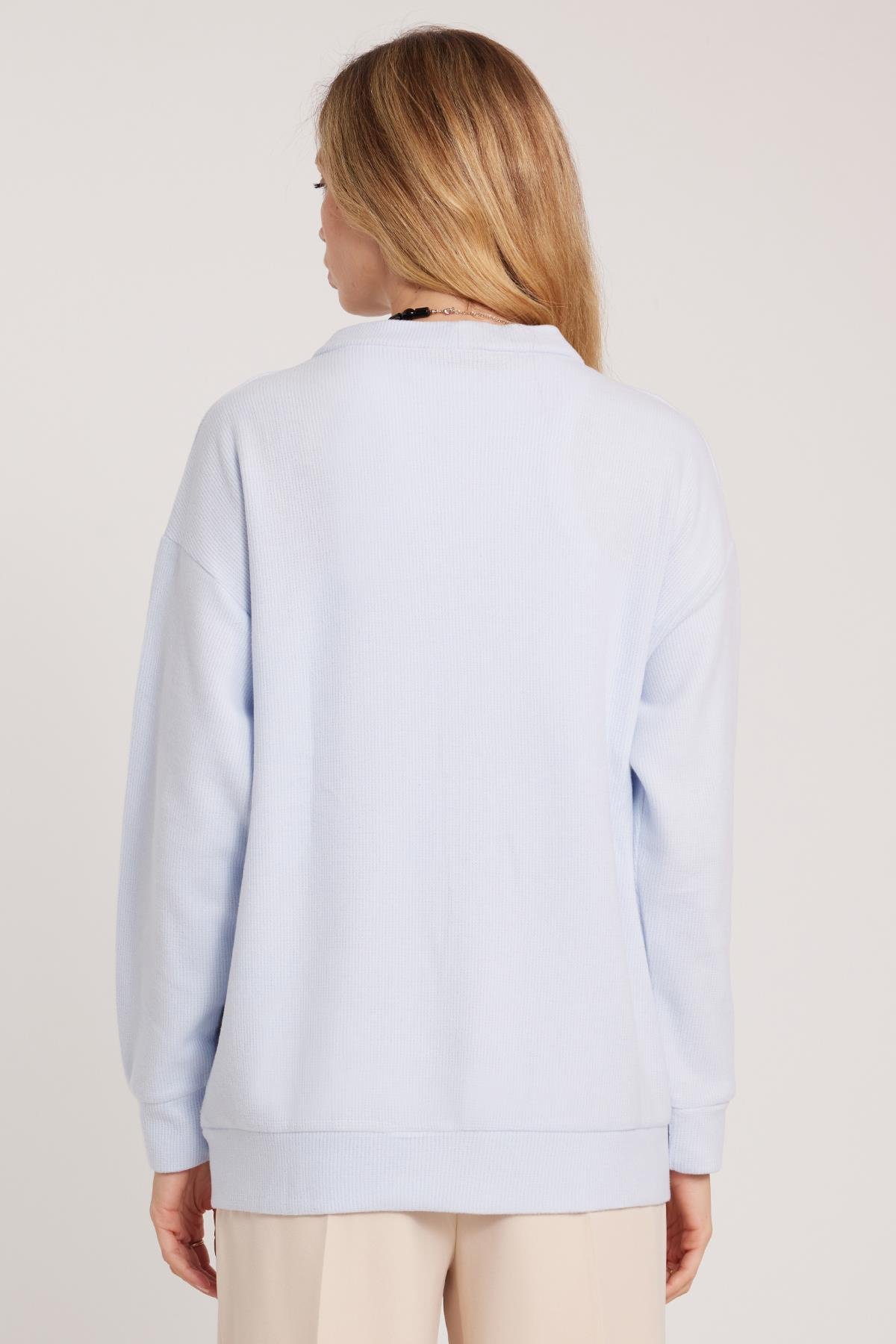Kadın Relax Fit Rahat Kesim Örme Kumaş Çift Cepli V Yaka Mavi Hırka