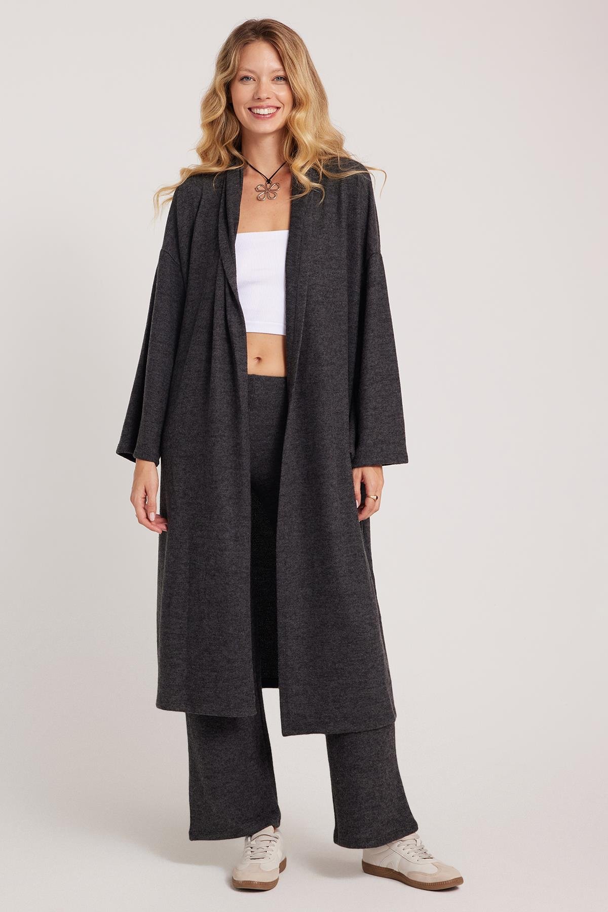 Kadın Relax Fit Rahat Kesim Uzun Triko Antrasit Hırka (BYKZ2528-ANHCT)
