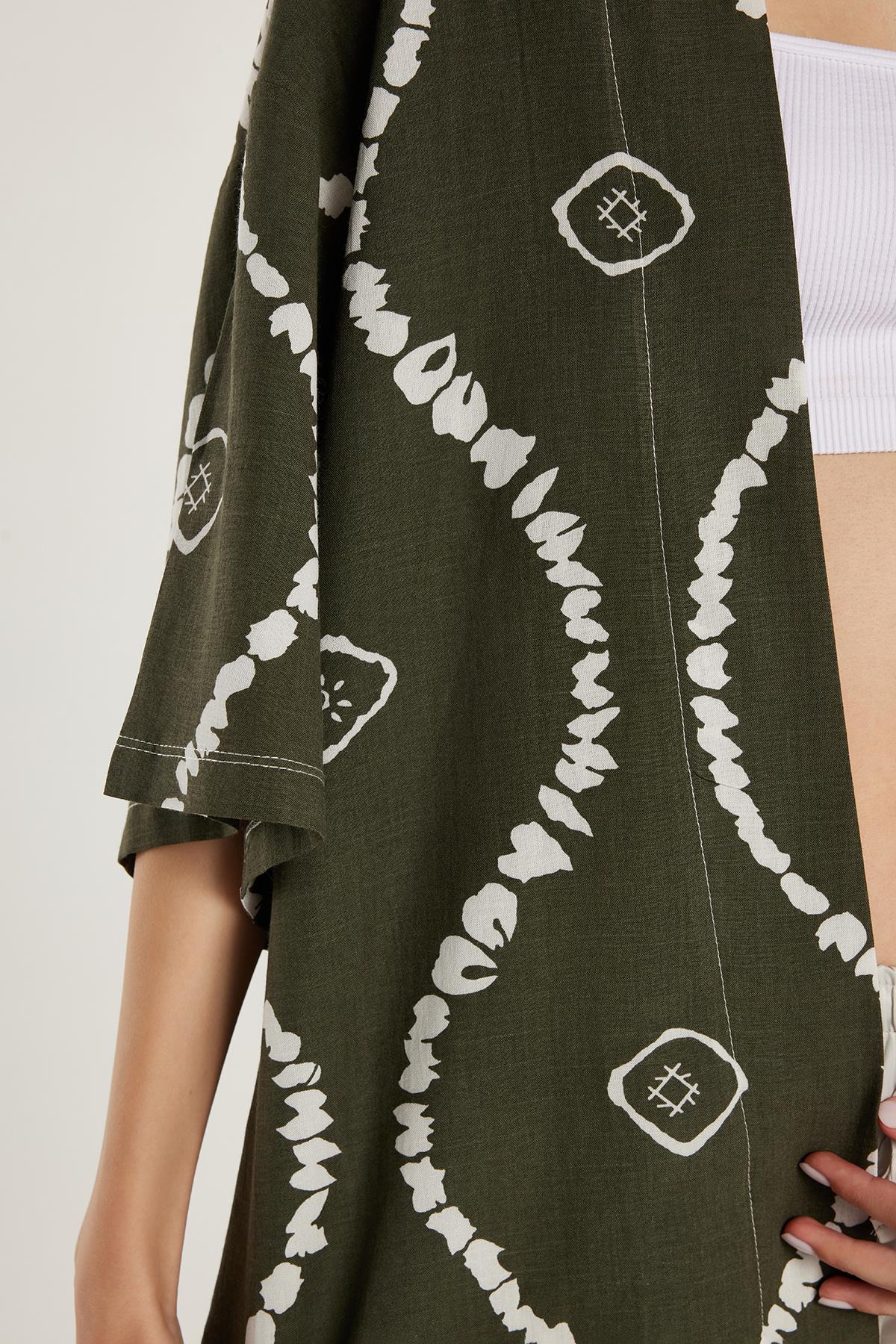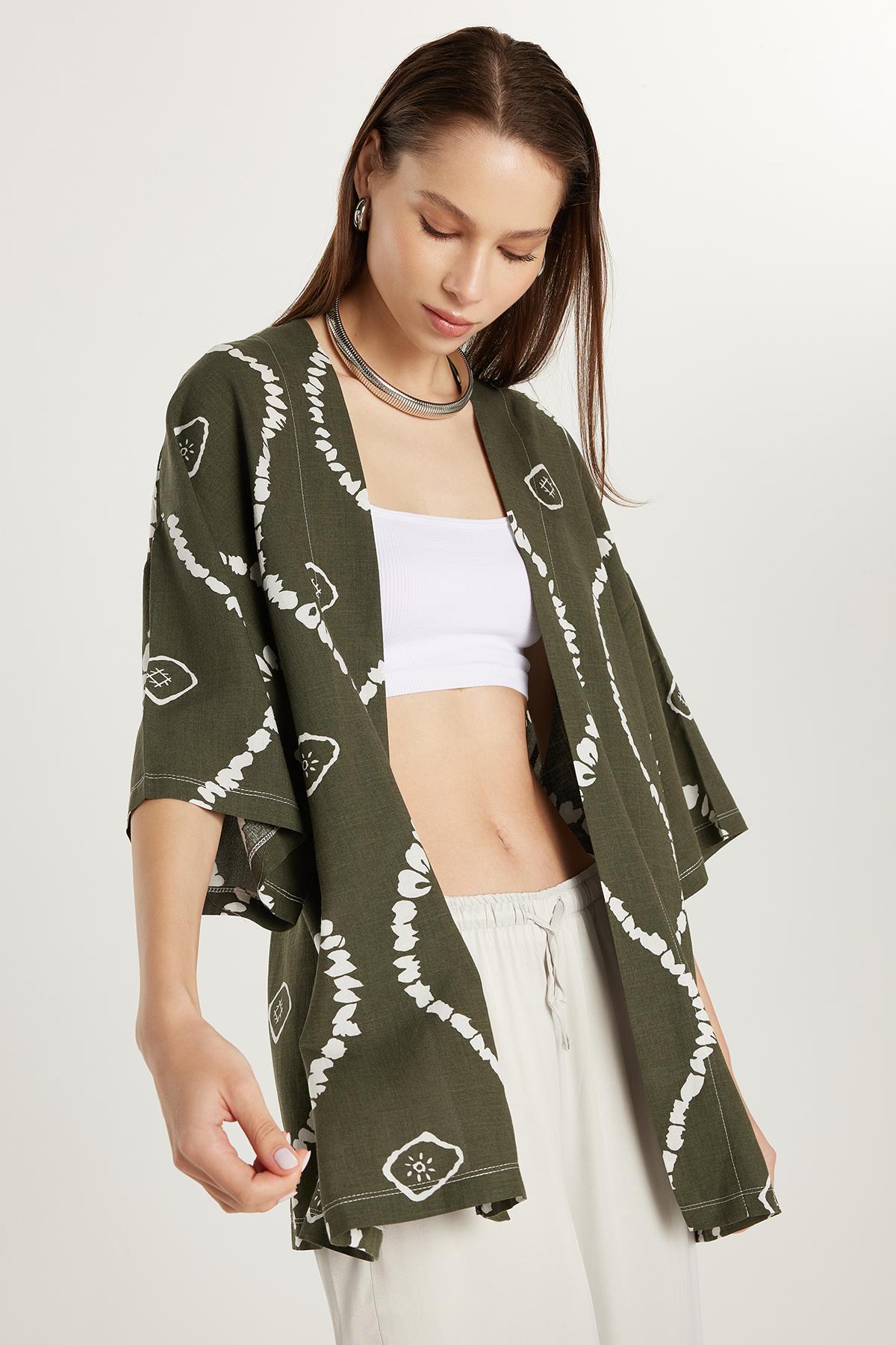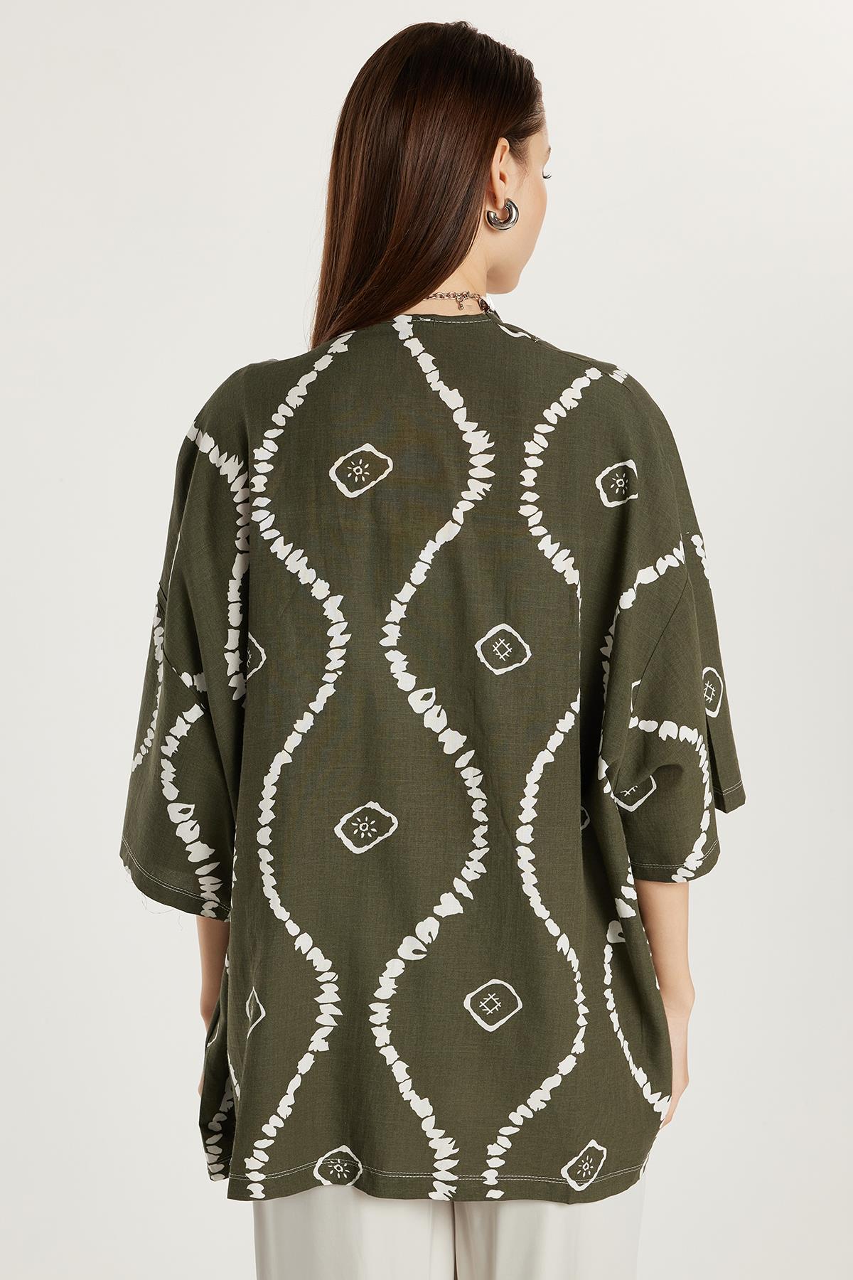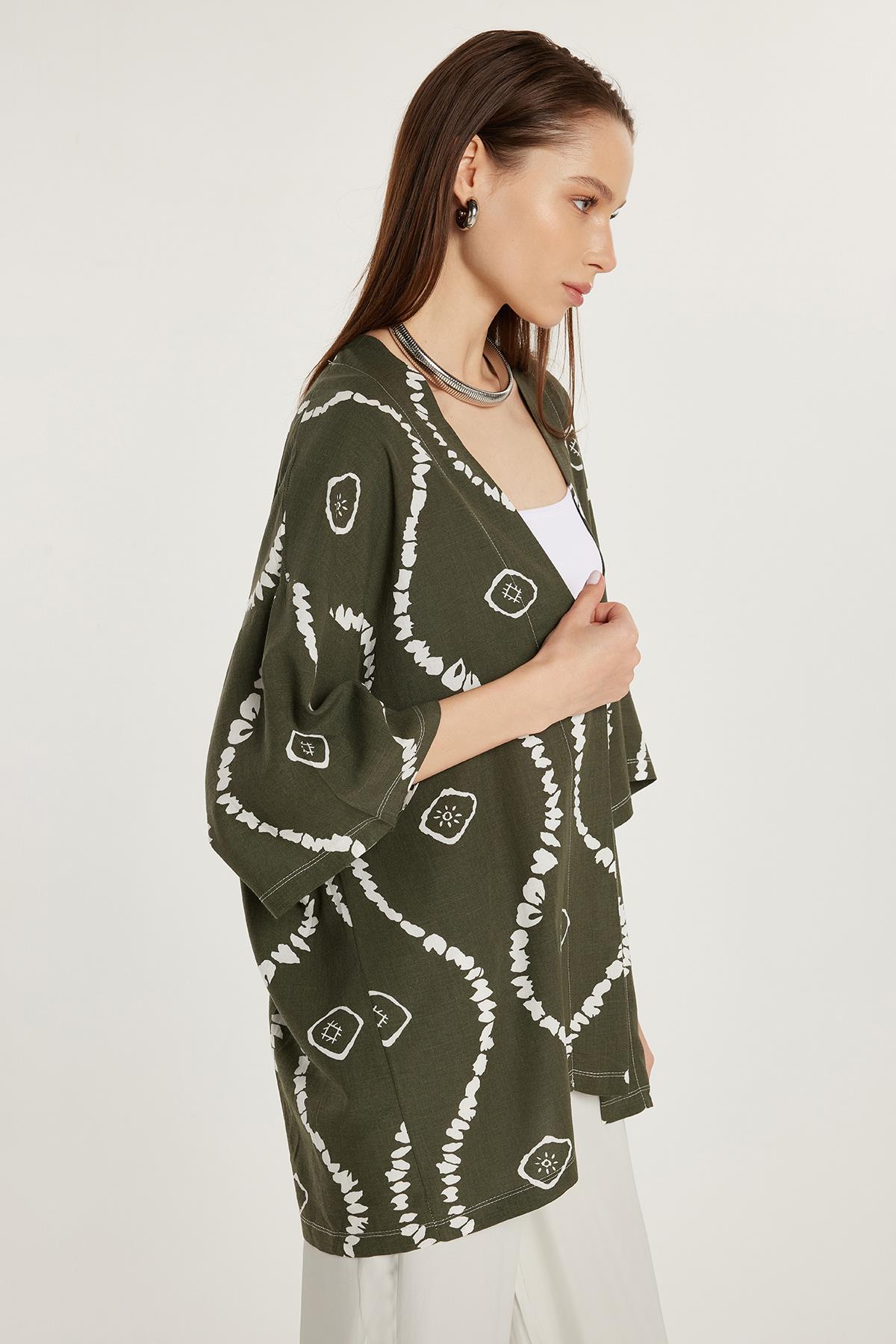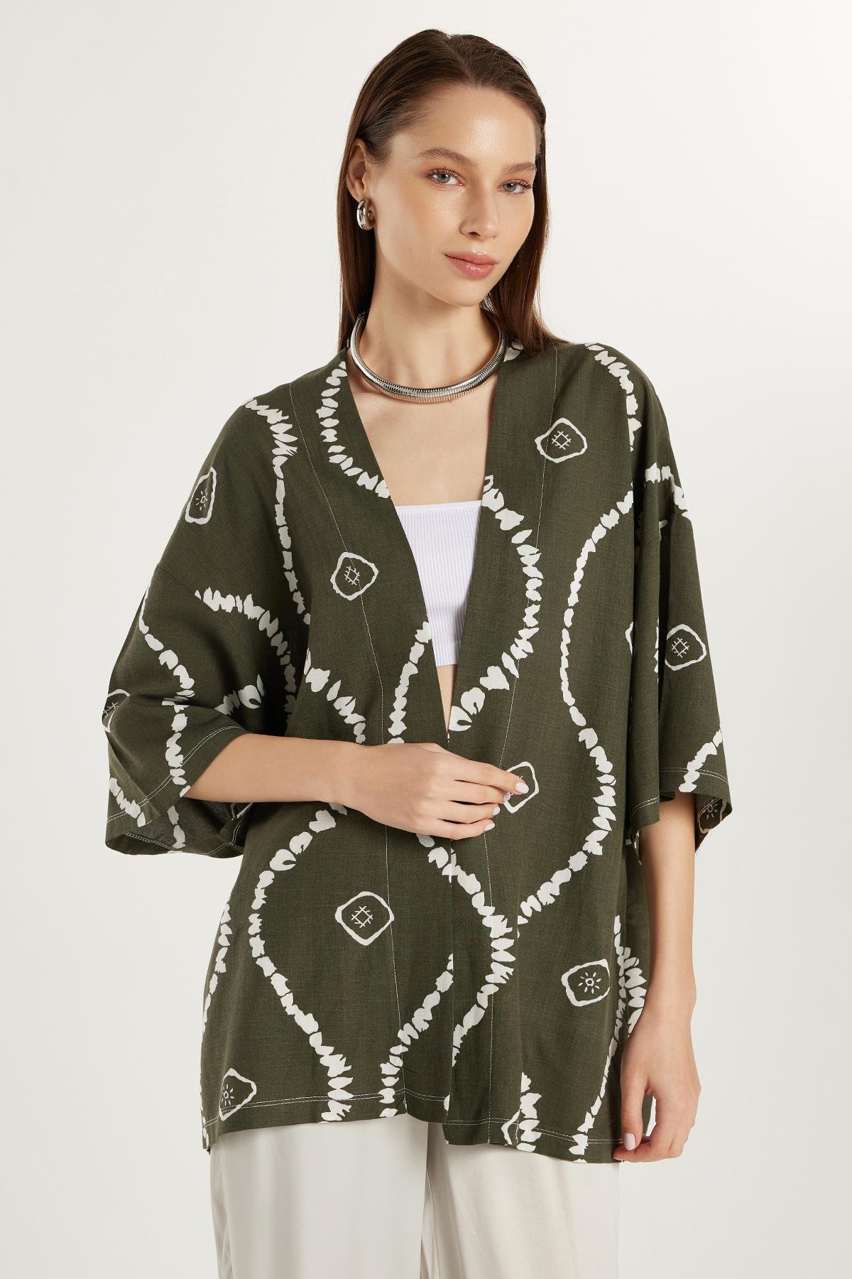 Kadın Relax Fit Rahat Kesim V Yaka Geniş Kollu Baskılı Kimono (KDN25280-557)
