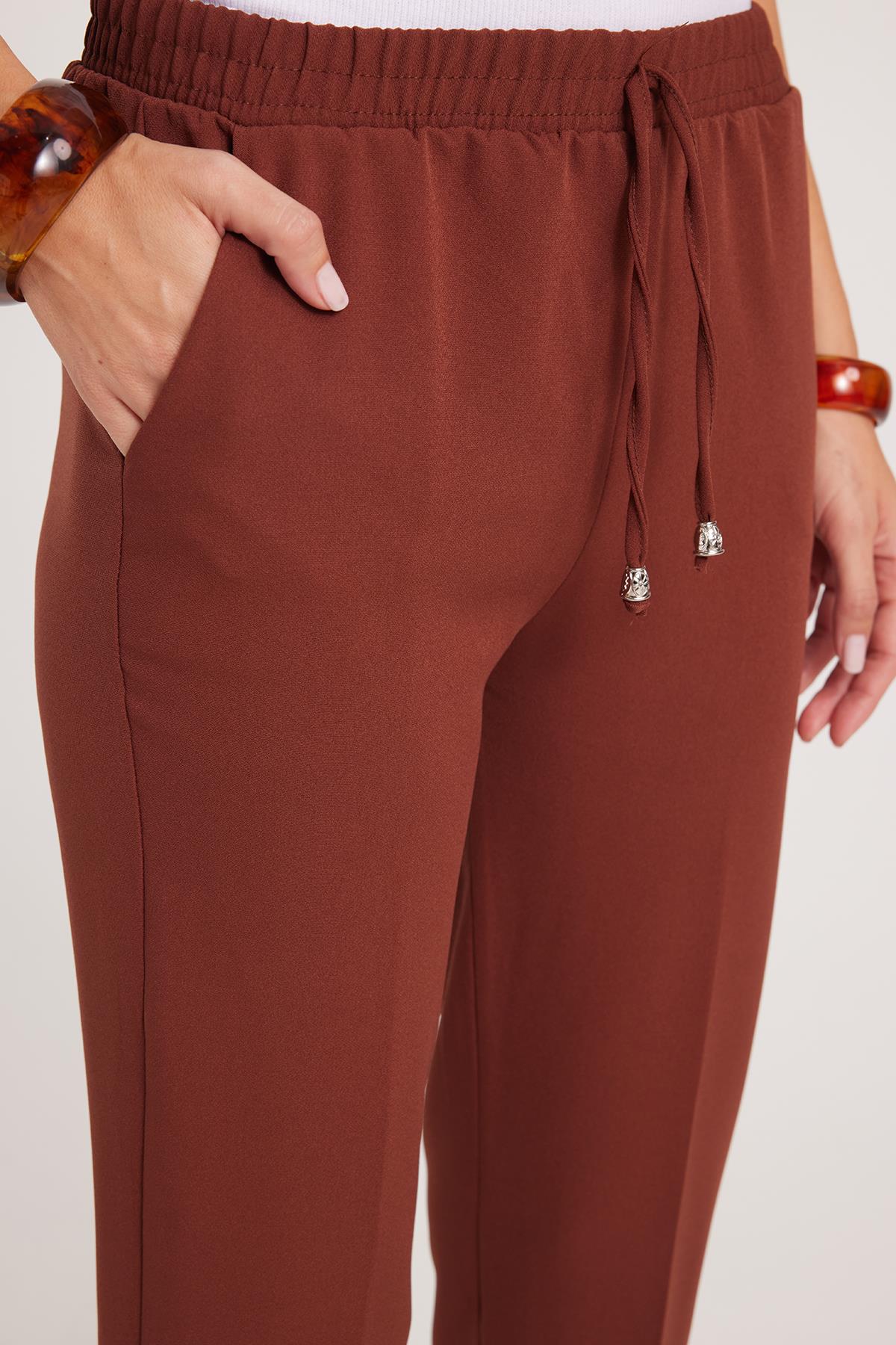 Kadın Relax Fit Rahat Kesim Yüksel Bel Dar Paça Beli Lastikli Bağcıklı Kahverengi Pantolon (PN250046-07)