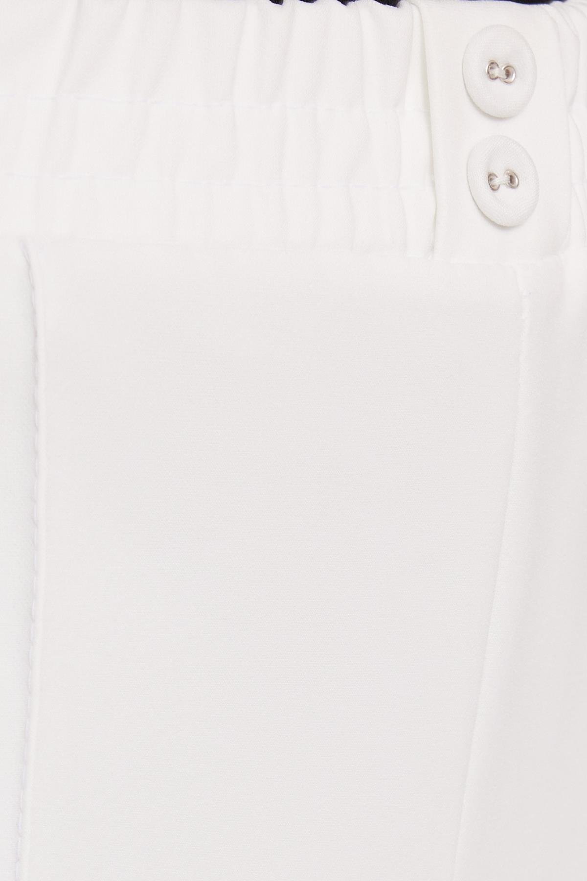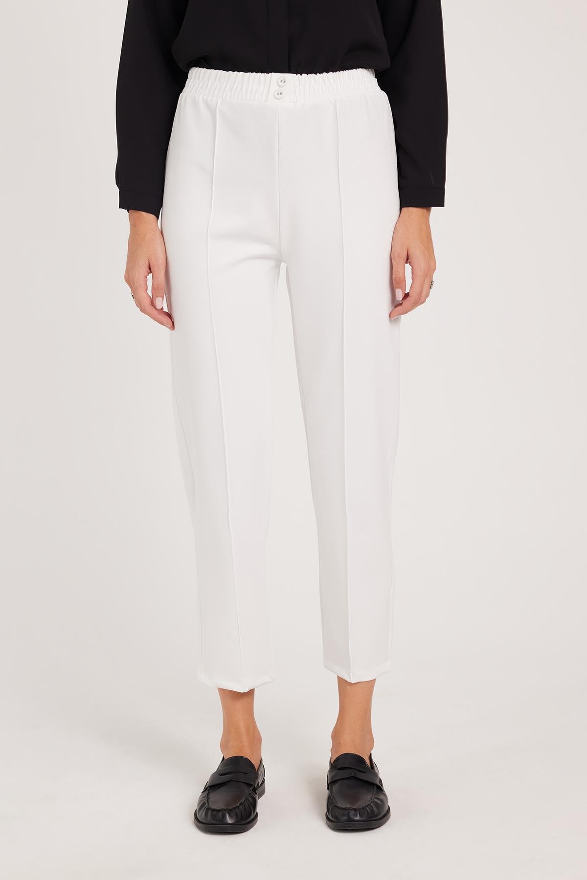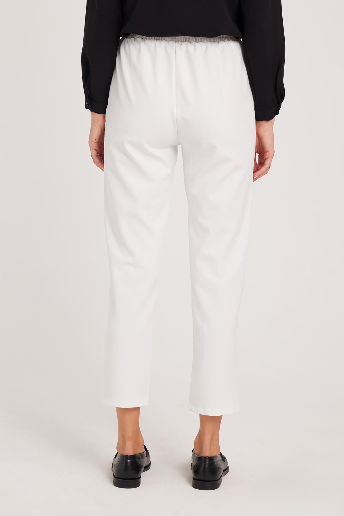 Kadın Relax Fit Rahat Kesim Yüksel Bel Düz Paça Beli Lastikli Bağcıklı Beyaz Pantolon (PN250047-01)