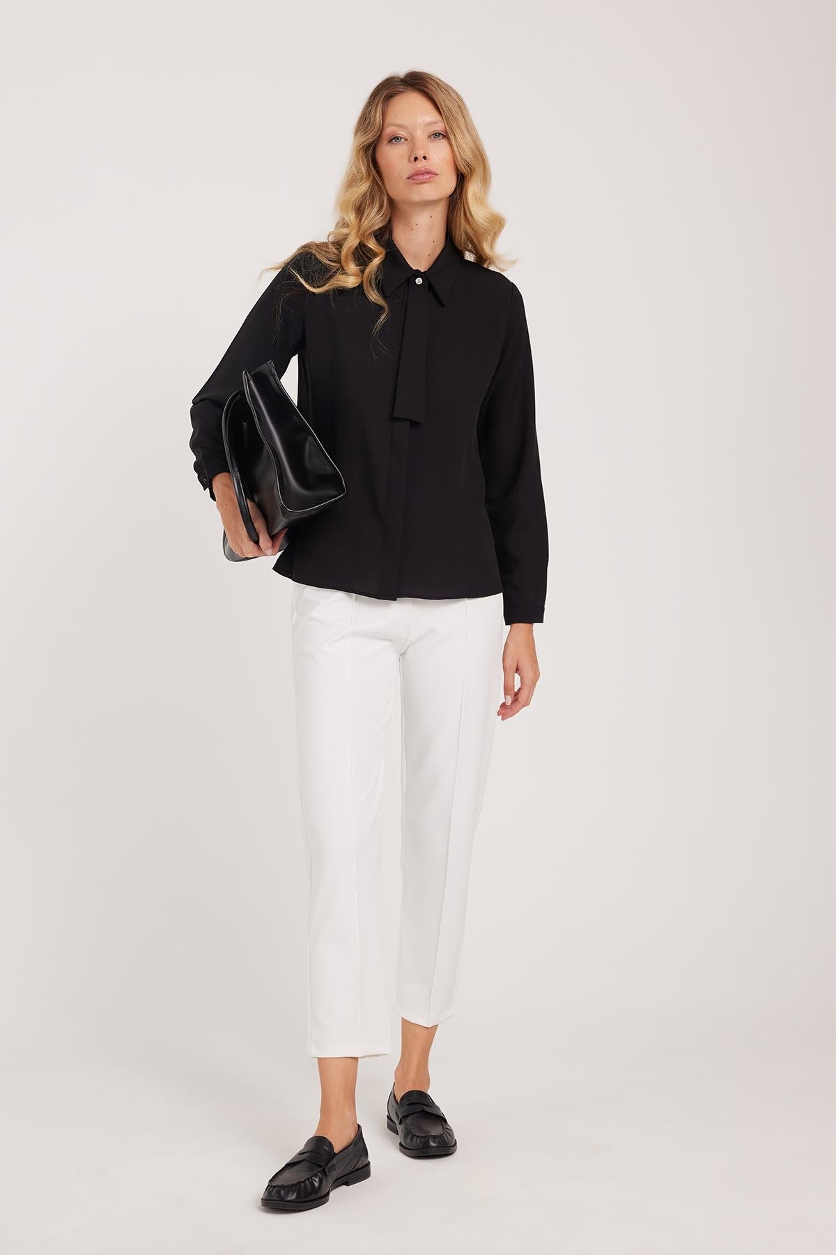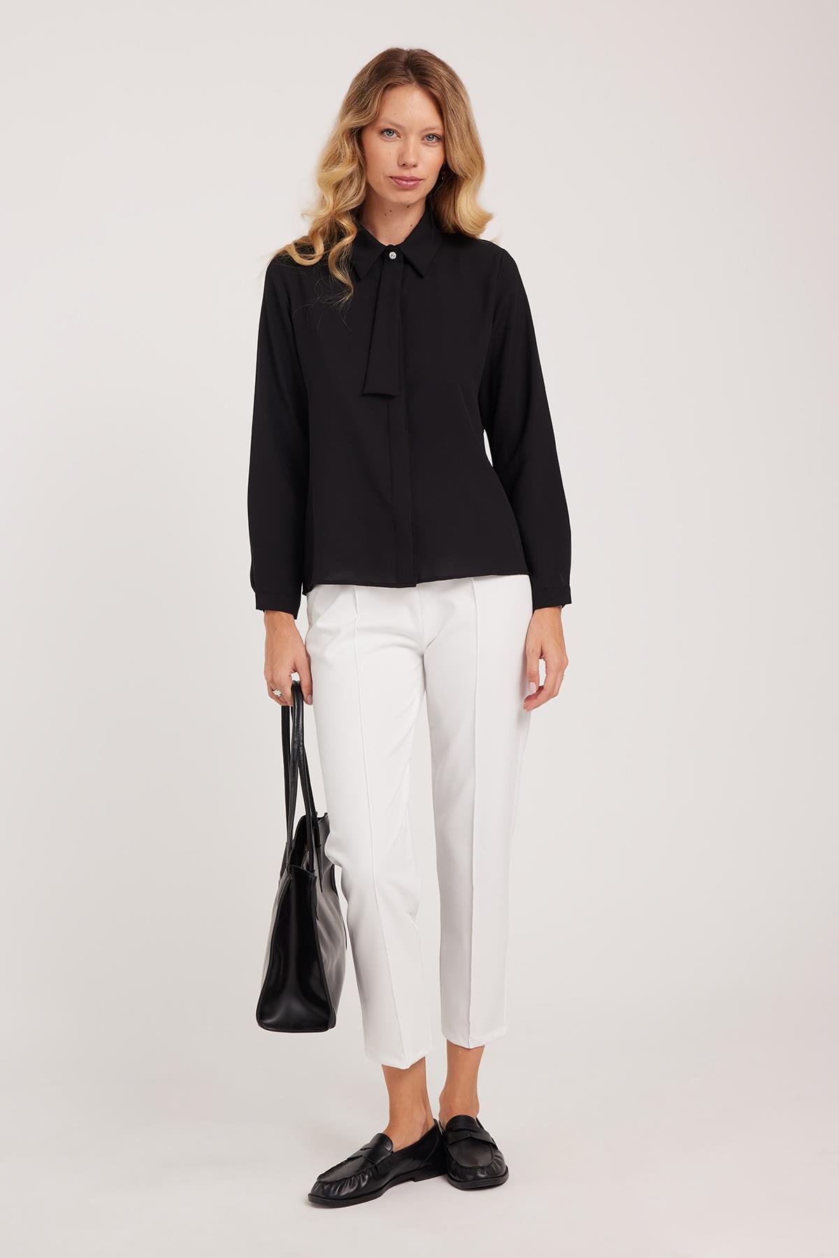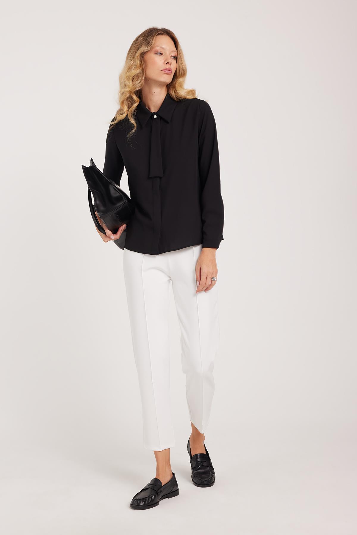 Kadın Relax Fit Rahat Kesim Yüksel Bel Düz Paça Beli Lastikli Bağcıklı Beyaz Pantolon (PN250047-01)