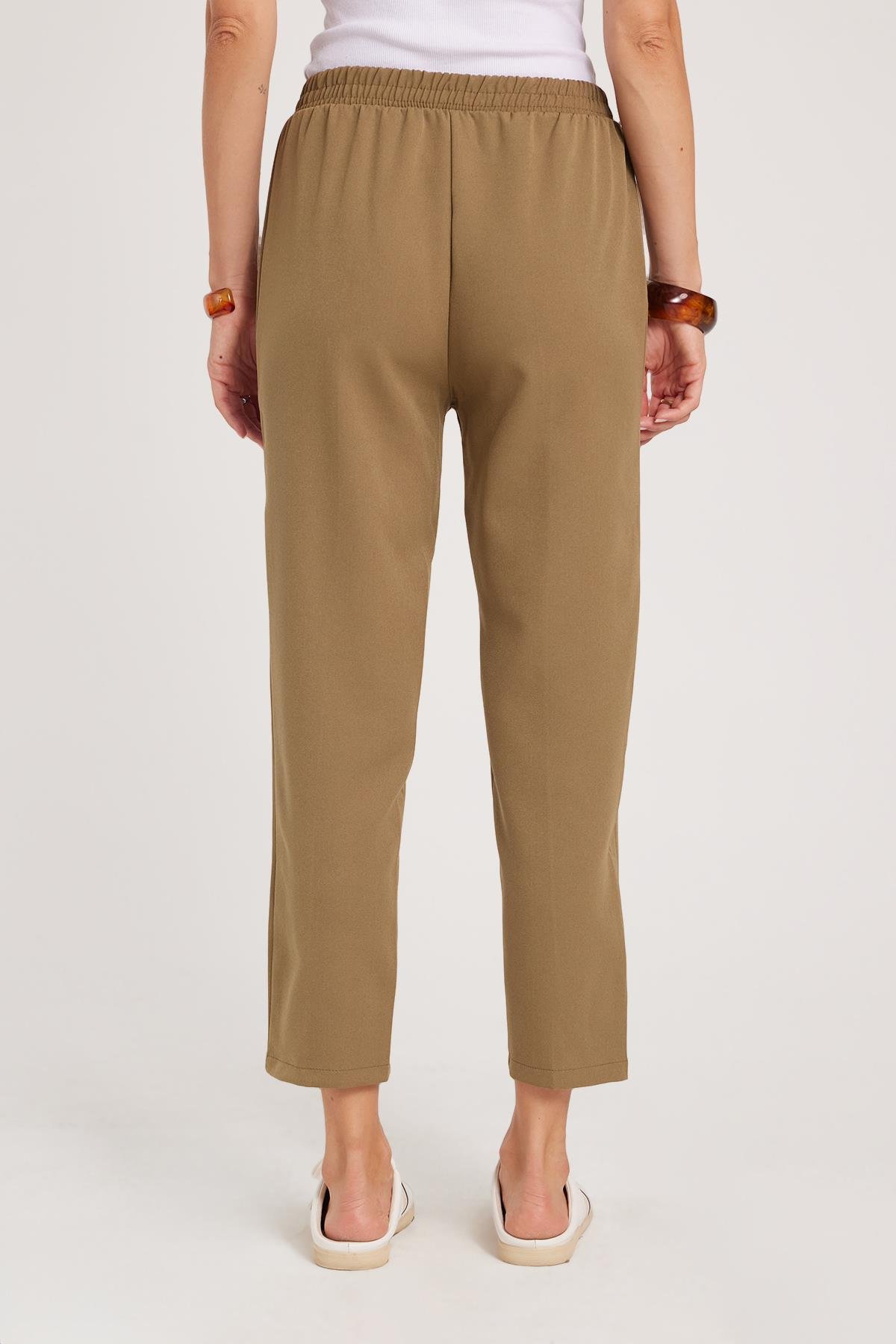 Kadın Relax Fit Rahat Kesim Yüksel Bel Düz Paça Beli Lastikli Bağcıklı Haki Pantolon (PN250047-48)