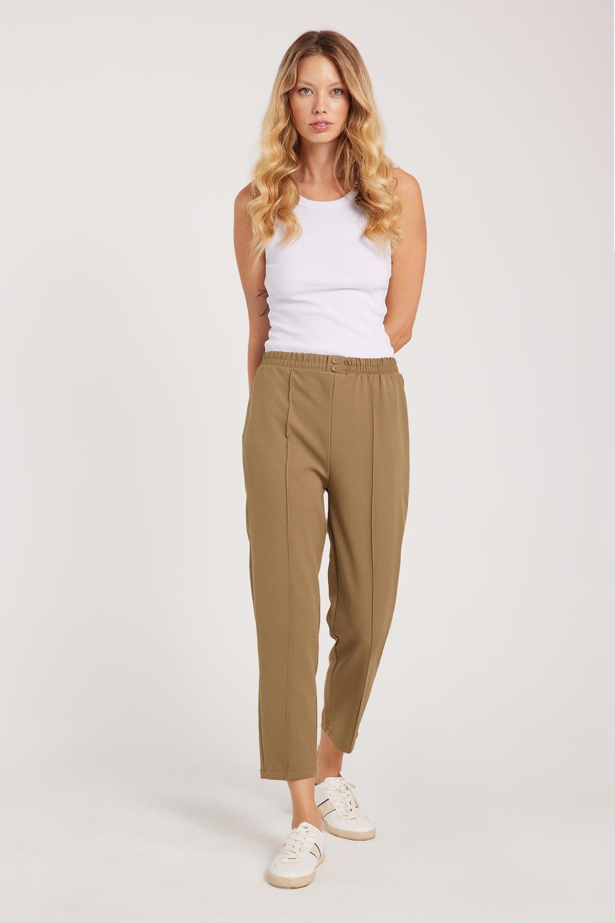 KADIN LASTİKLİ HAVUÇ KESİM DÜĞMELİ FİME PANTOLON