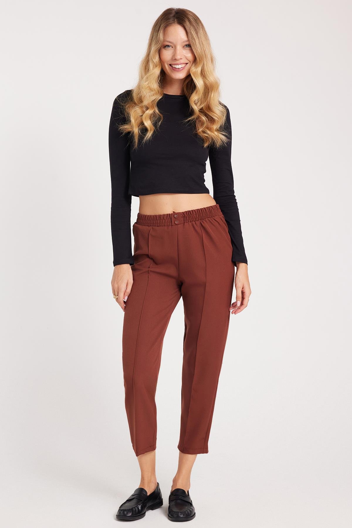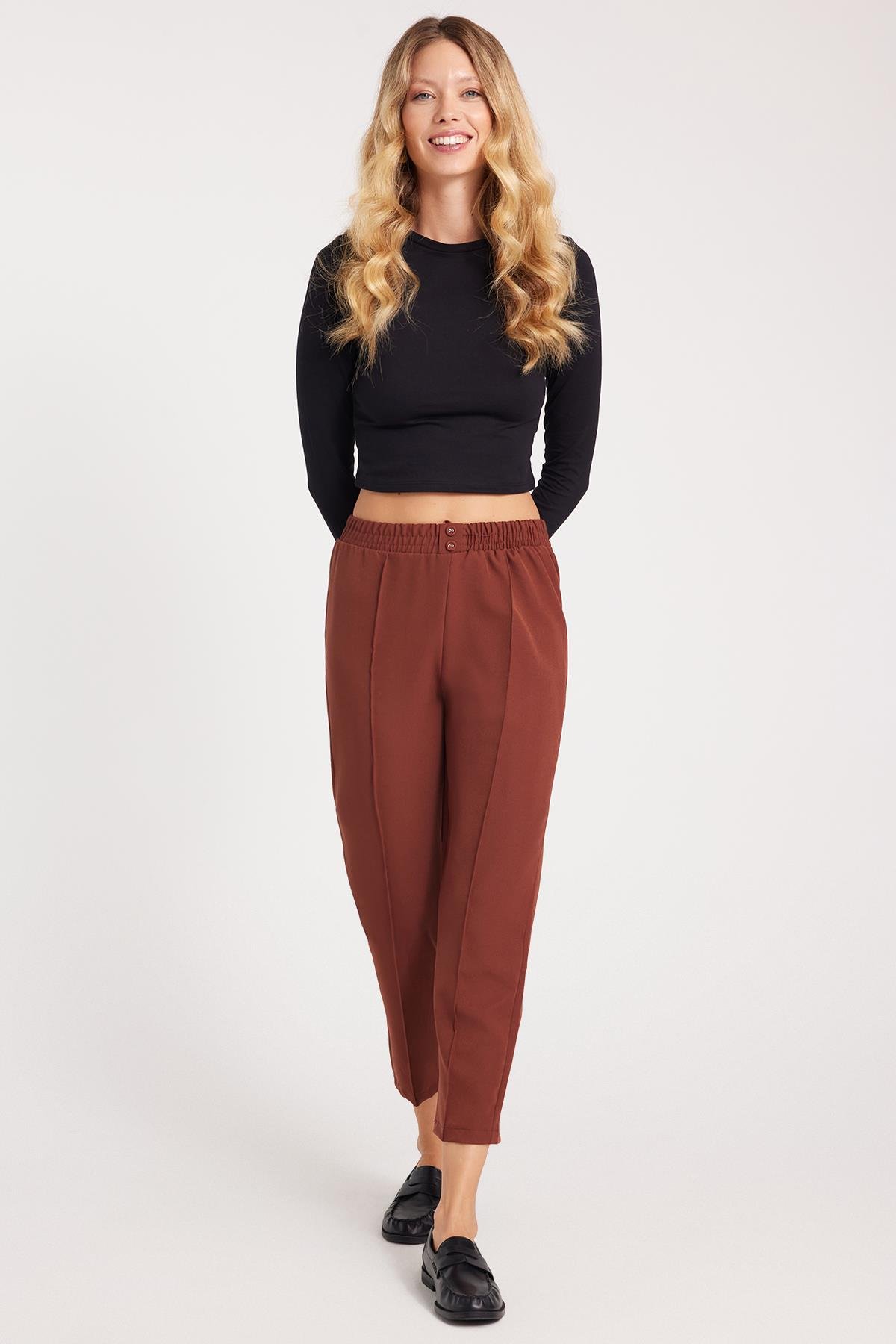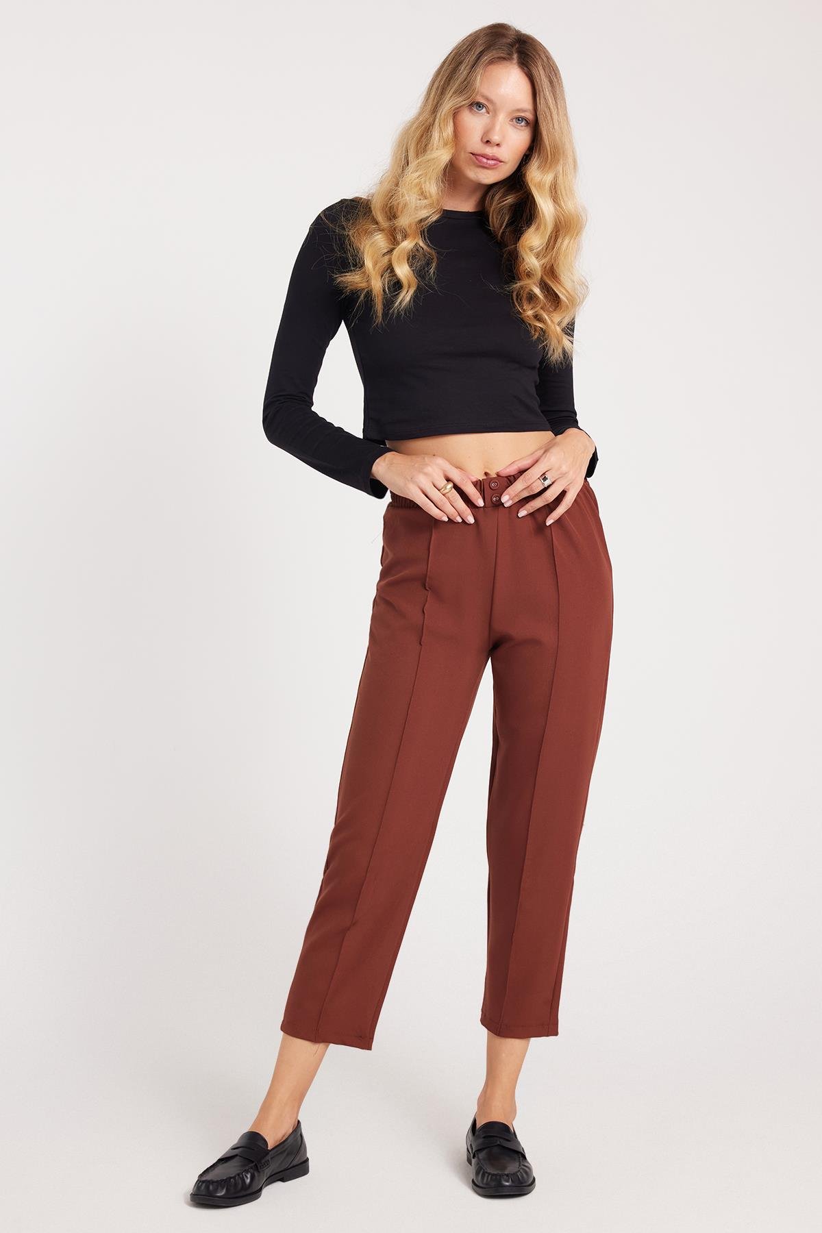 KADIN LASTİKLİ HAVUÇ KESİM DÜĞMELİ FİME PANTOLON